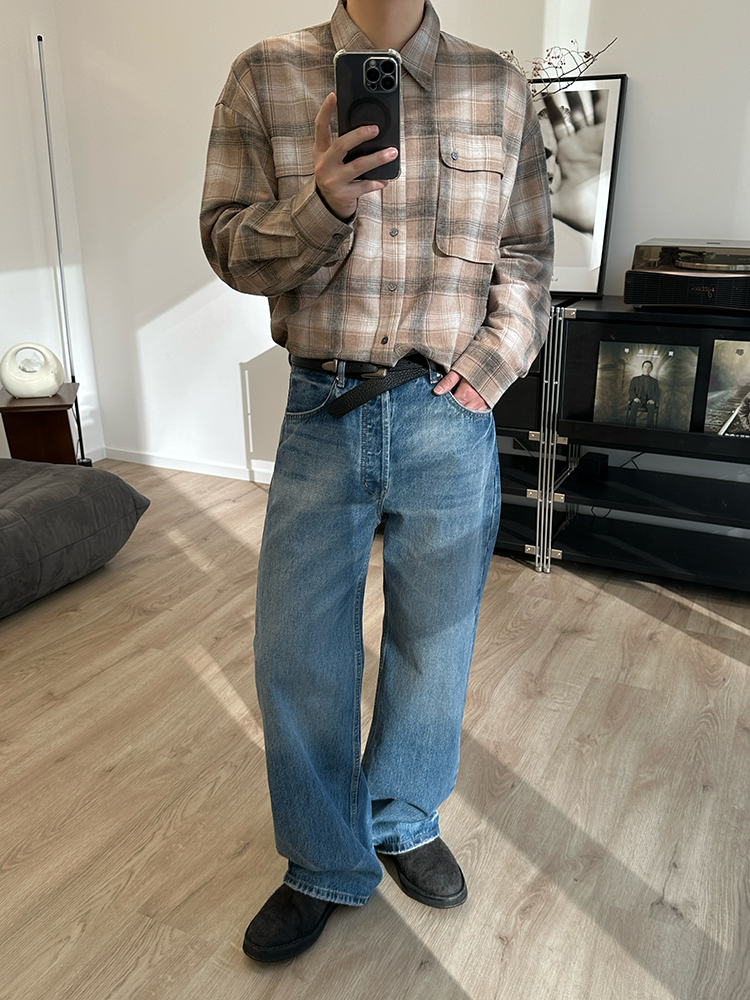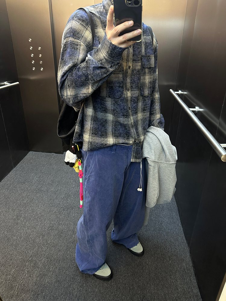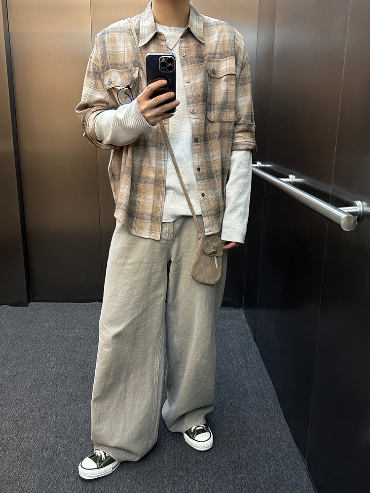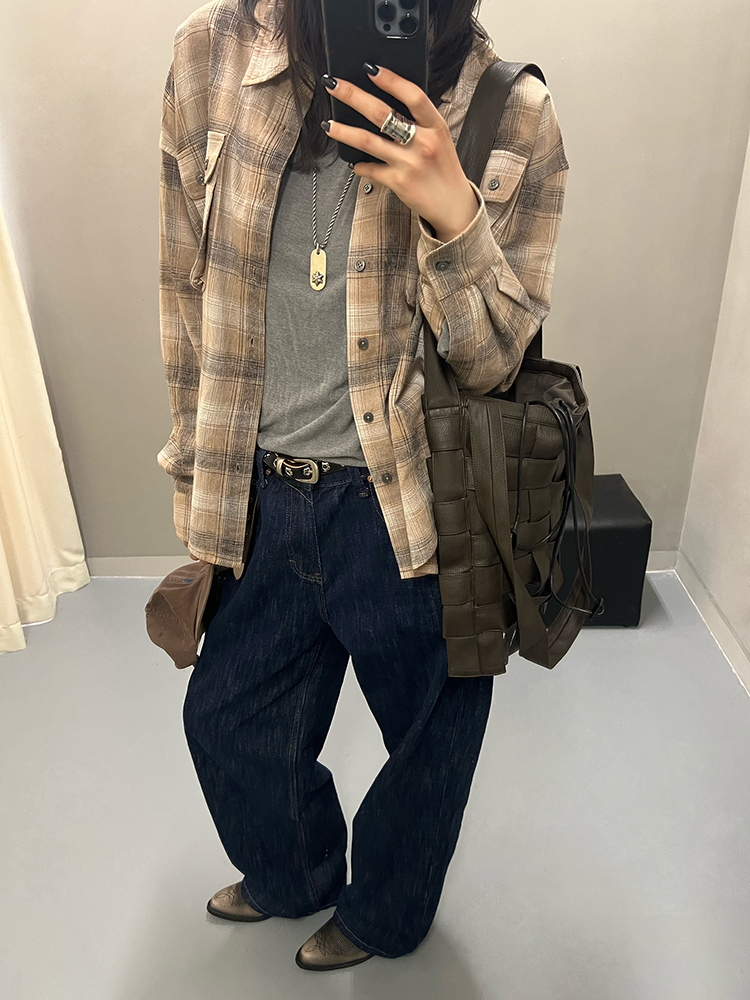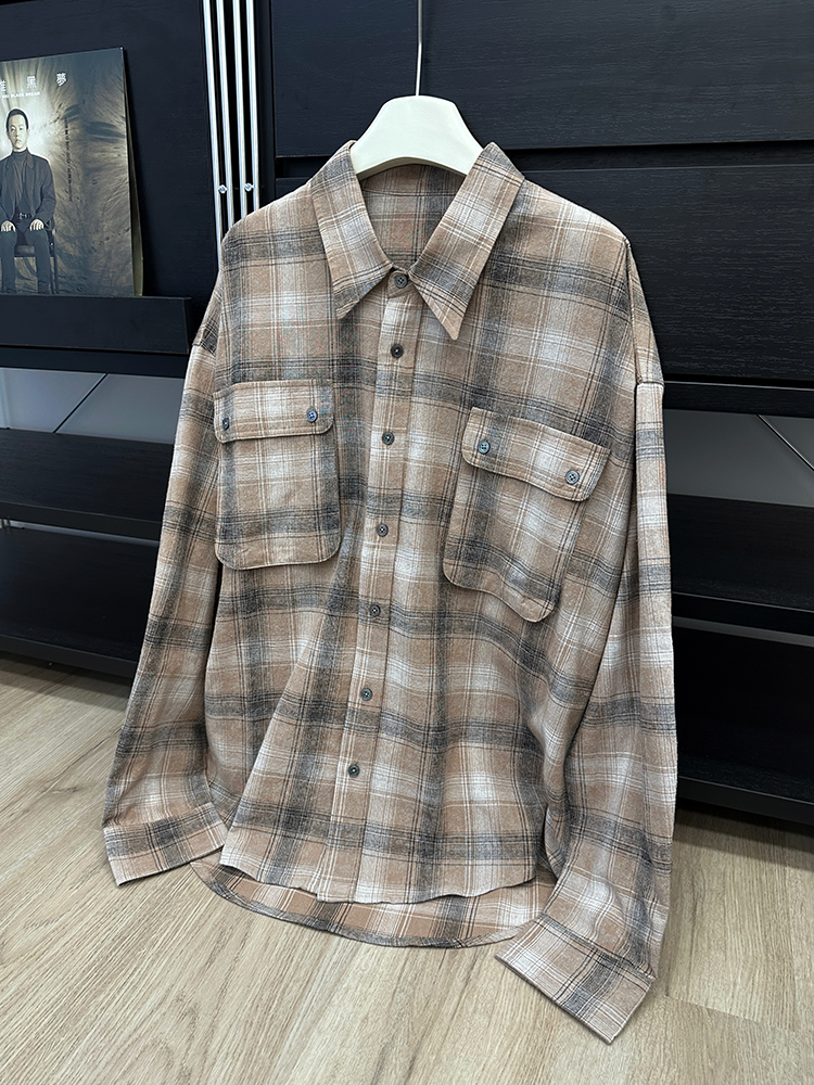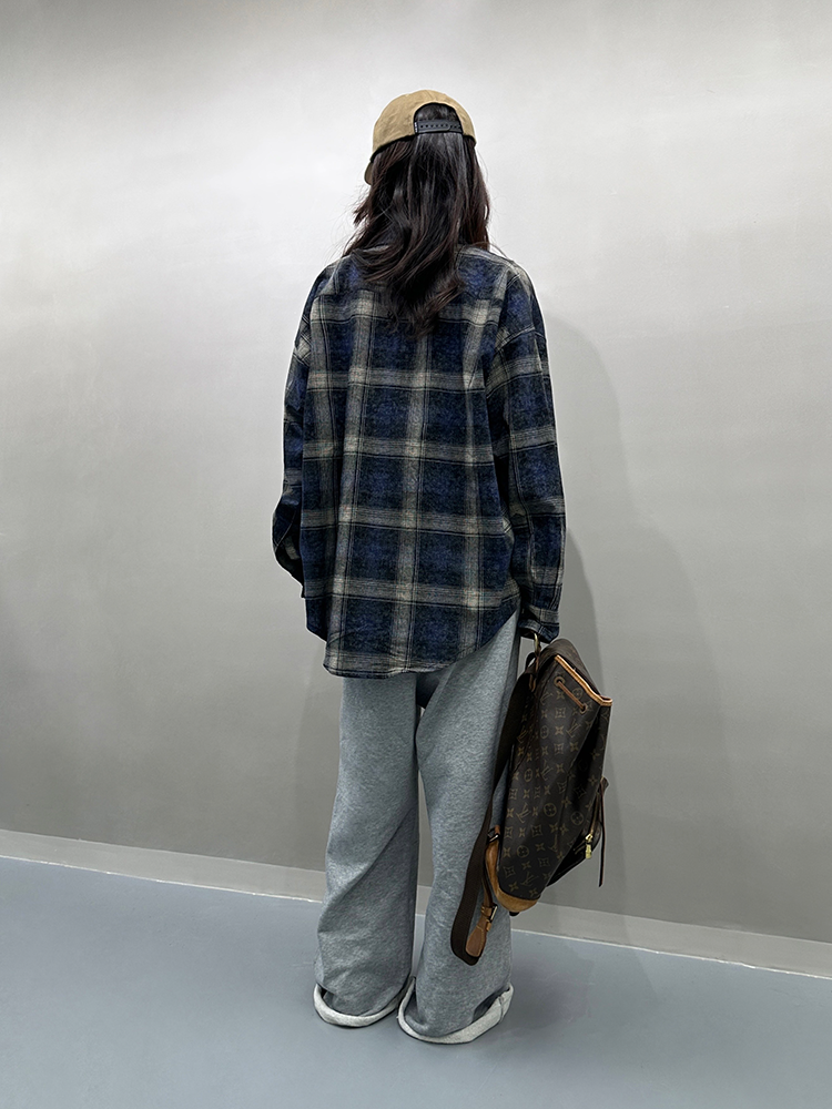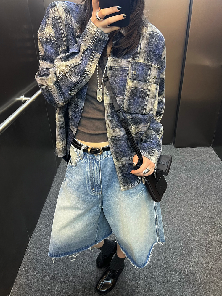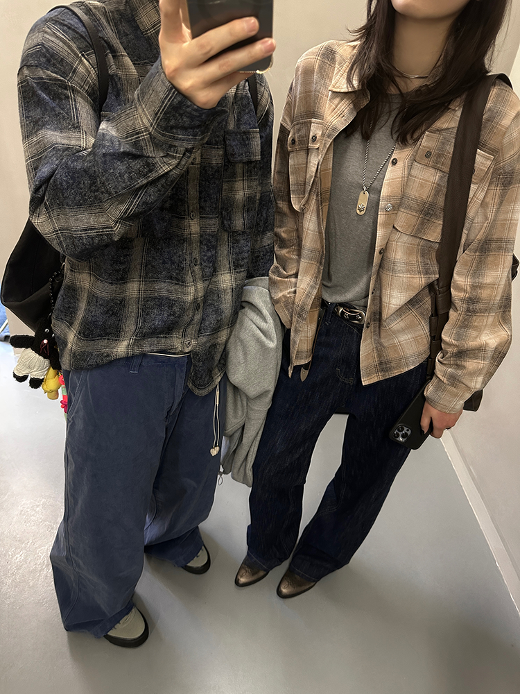 *o-ha-you*【FLCT2511】暈雪花的立體口袋的隨意格紋襯衫-2色-如有需要請先諮詢