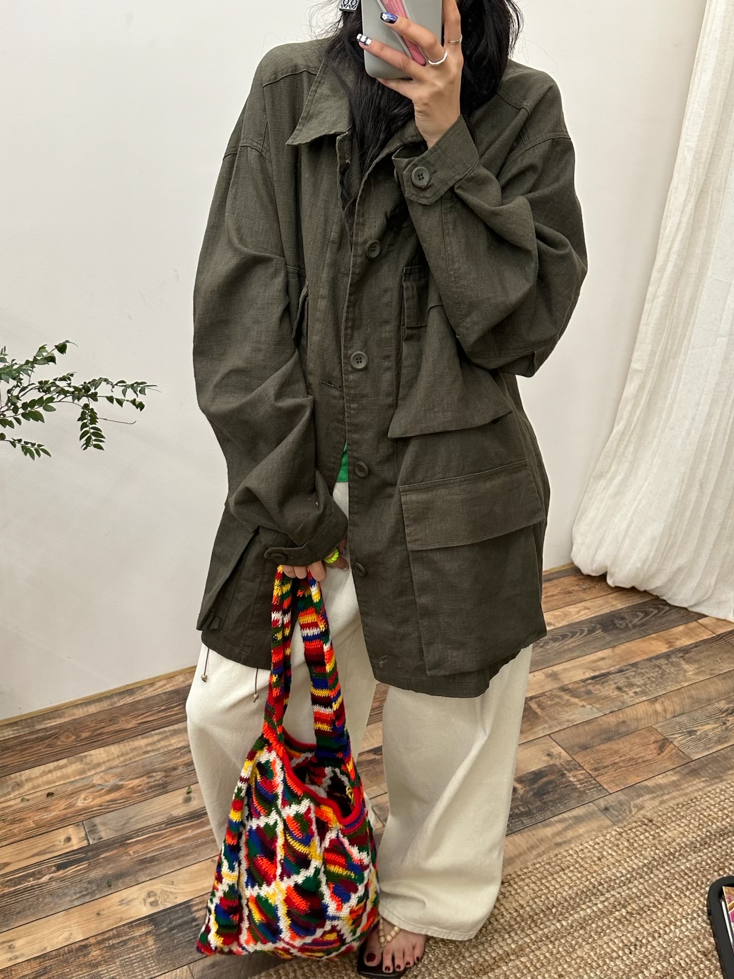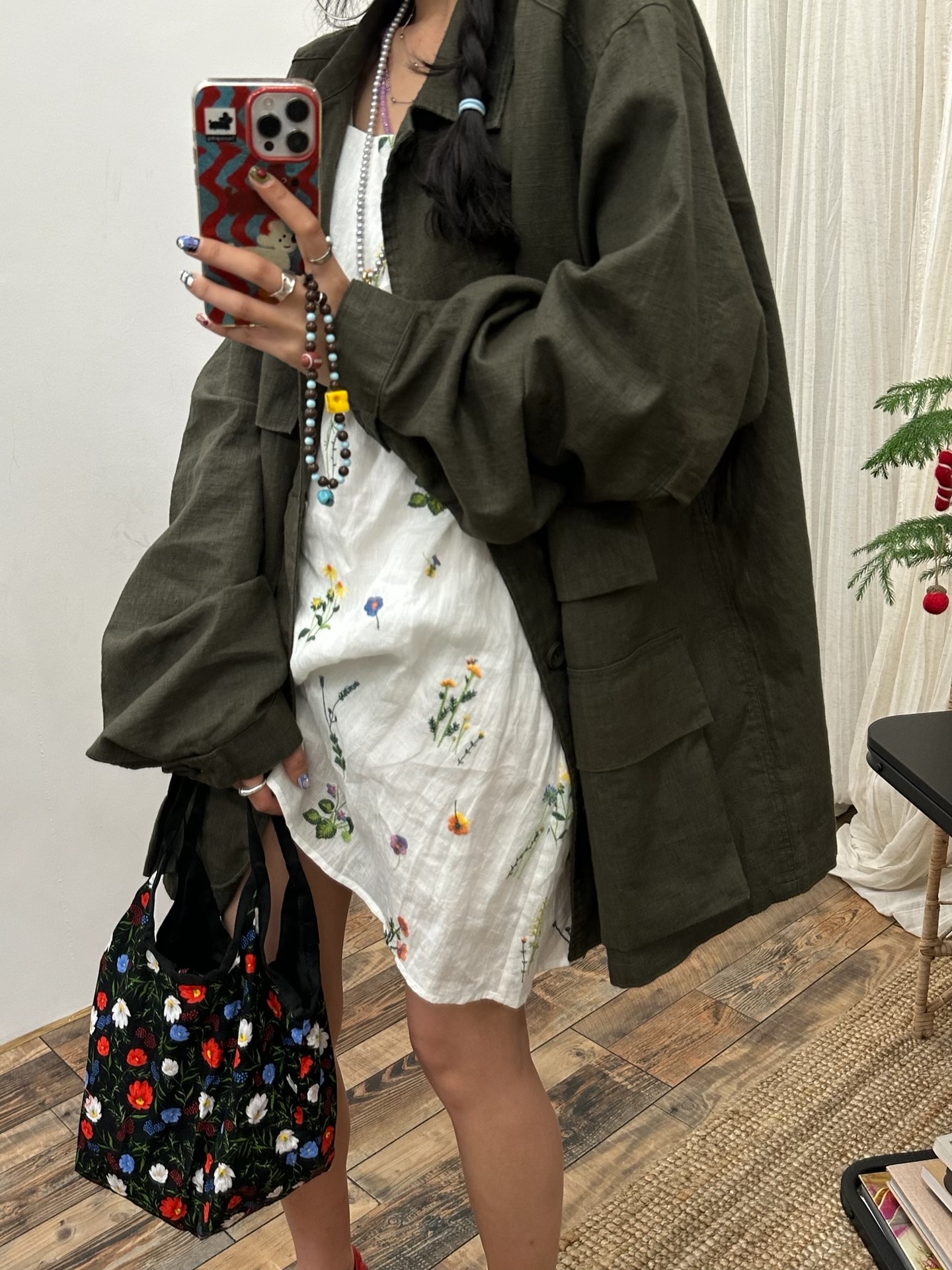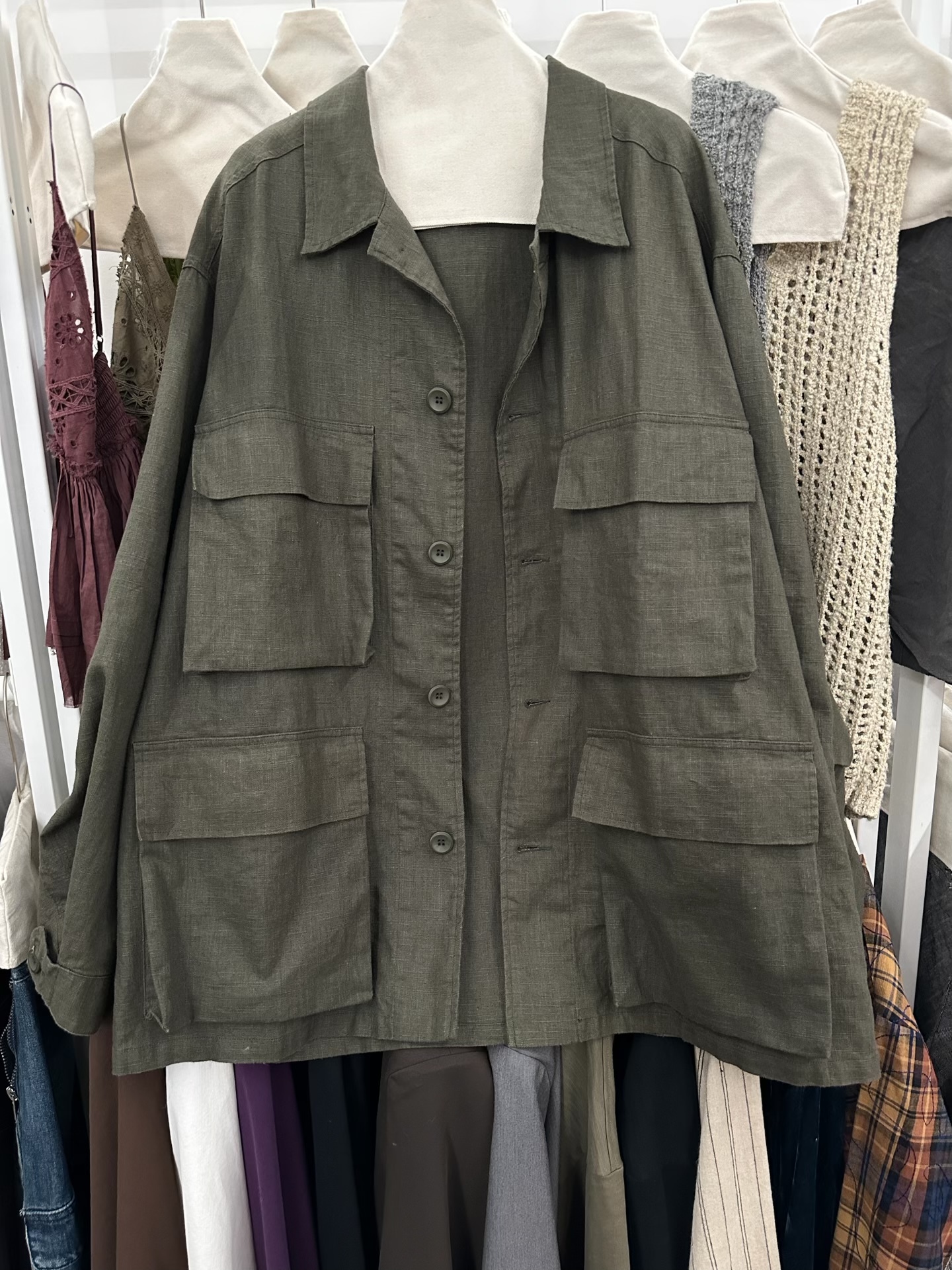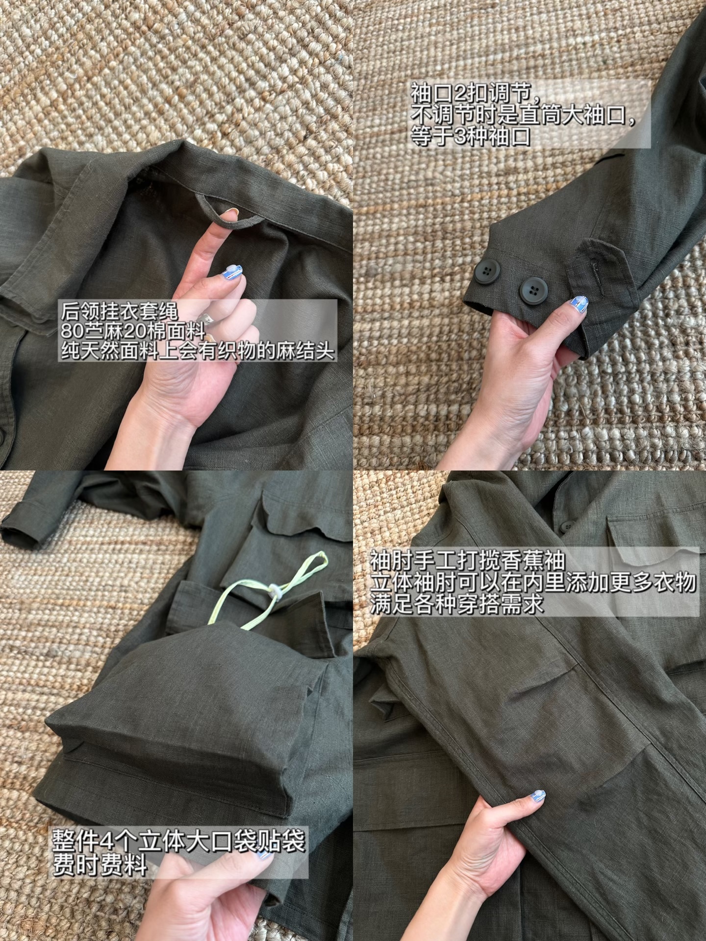 80苧麻,20棉。能看出料子和重工程度,所以價格不便宜了,實在是和工廠降不下來價格了,主要還是麻比較貴,細節圖有給大家拍,口袋工費貴點,因為是立體的貼袋