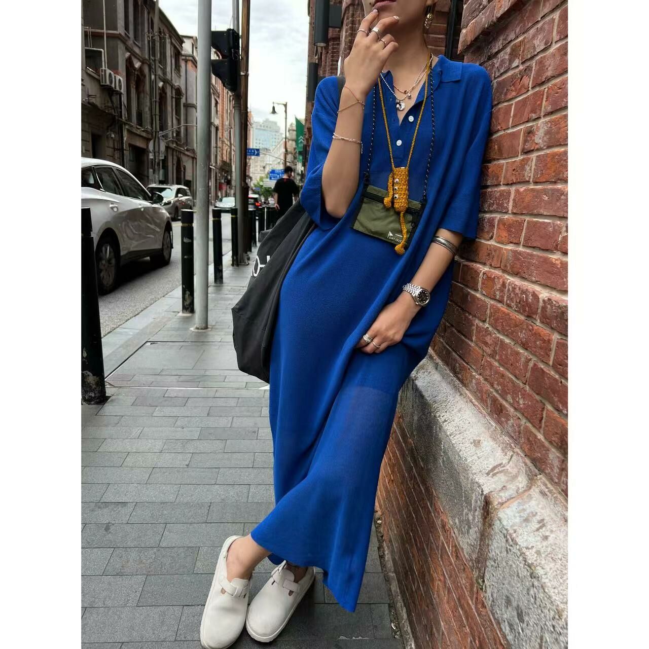 *o-ha-you*【FLCT2524】隱藏限量款~怕熱的選這條懶人裙! polo領段織冰麻絲短袖連衣裙洋裝-2色-隱藏限量款~下單後盡力搶~搶不到別怪我-如有需要請先諮詢