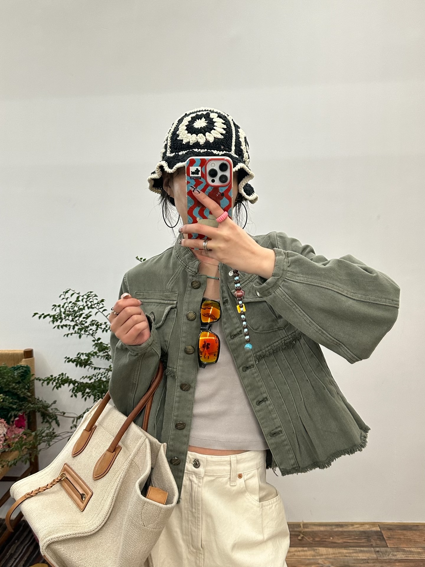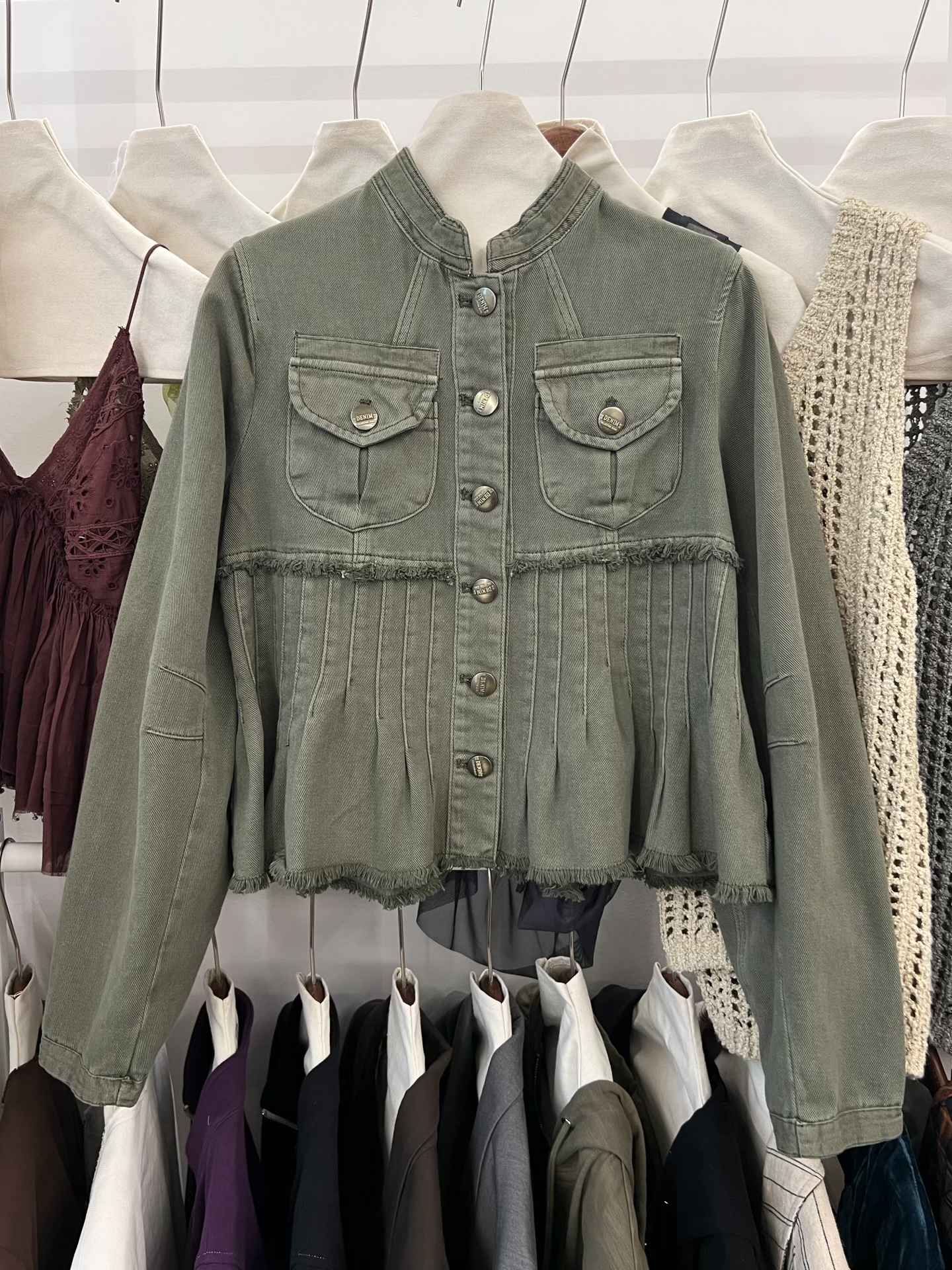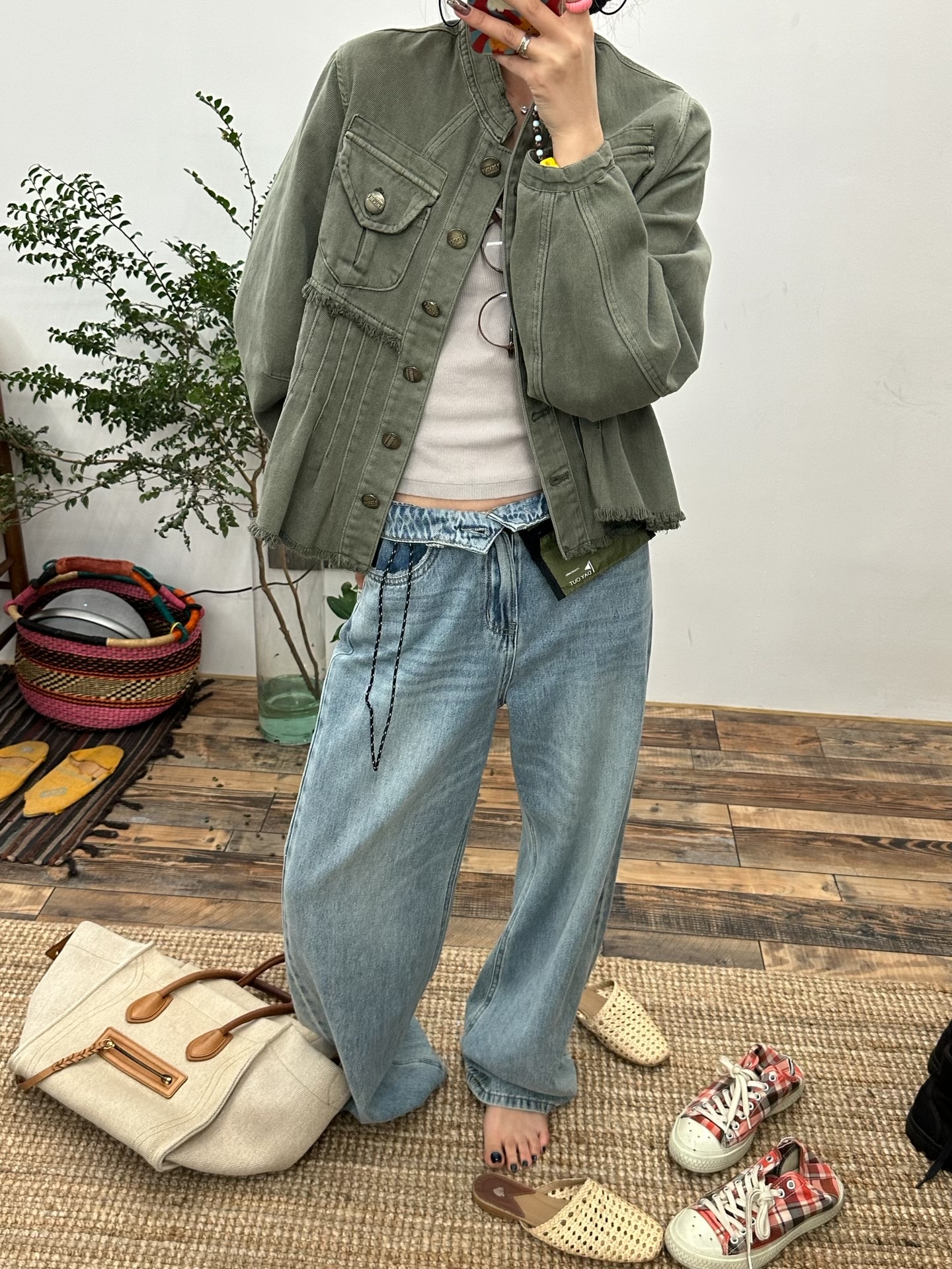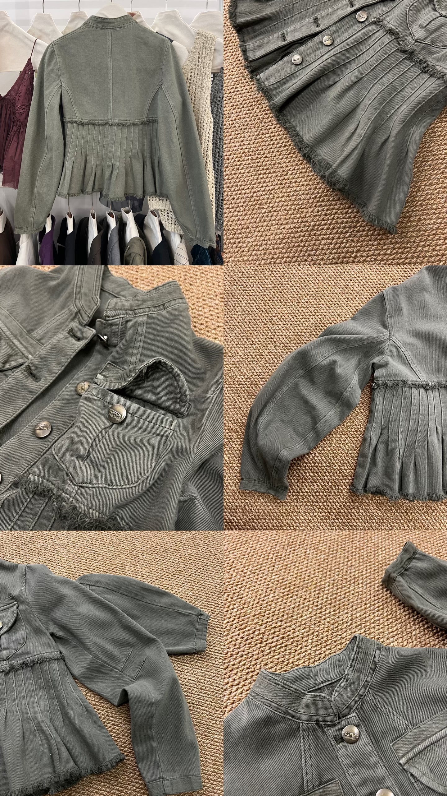 *o-ha-you*【FLCT2533】絕版-隱藏限量款~無翻單重磅百褶小立領香蕉袖牛仔外套!肉肉女孩放心衝試過了 · 如圖色-壓褶牛仔外套現貨-如有需要請先諮詢