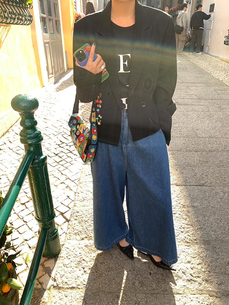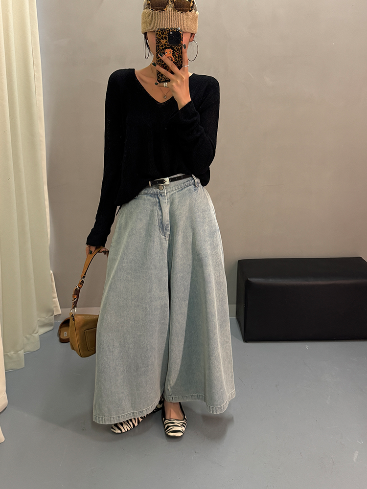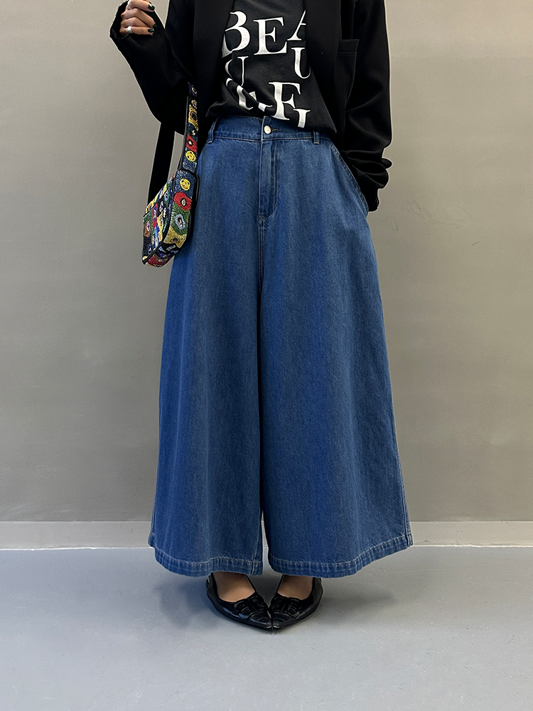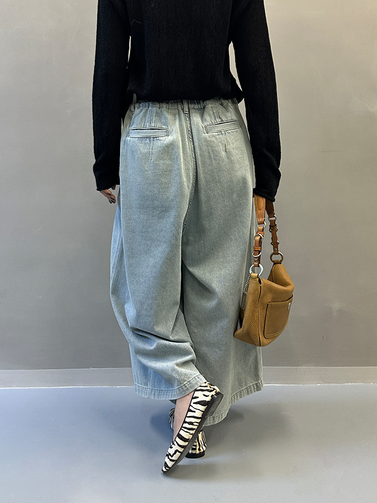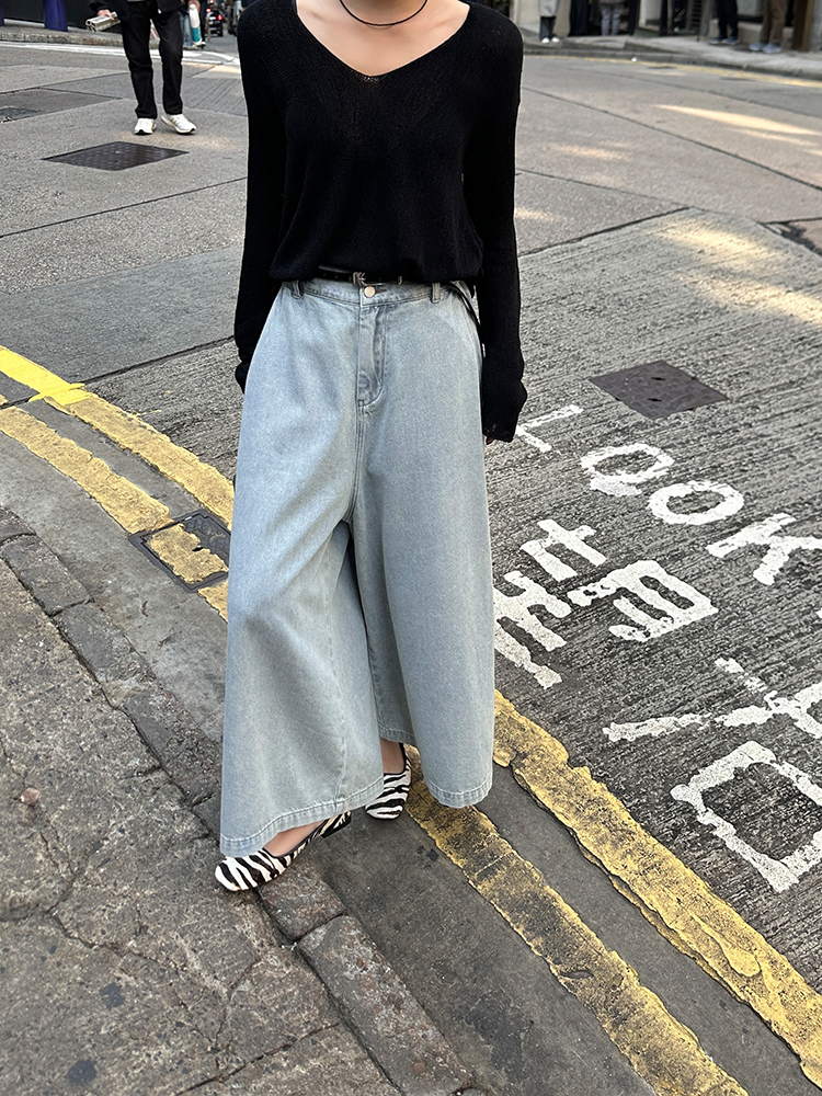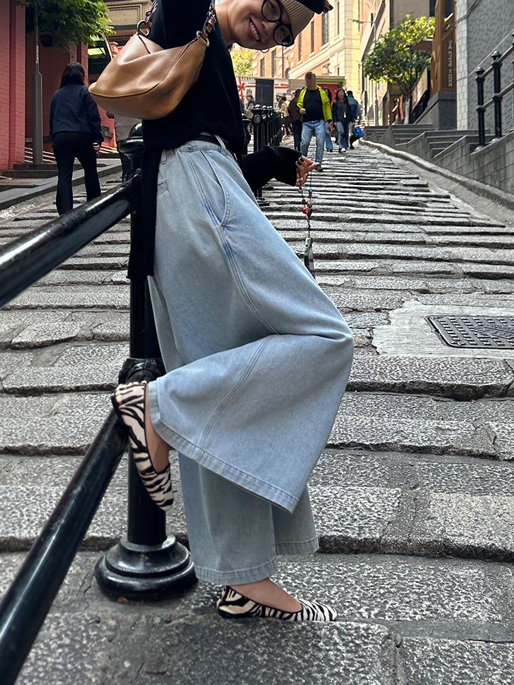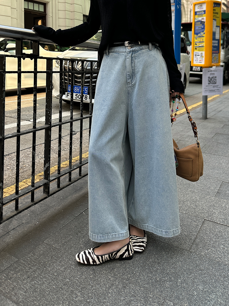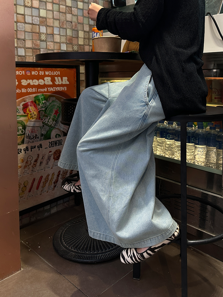 *o-ha-you*【FLCT2561】復古藍色闊腿牛仔褲2025春季新款直筒寬鬆高腰小個子九分褲子-2色-淺藍色L有現貨