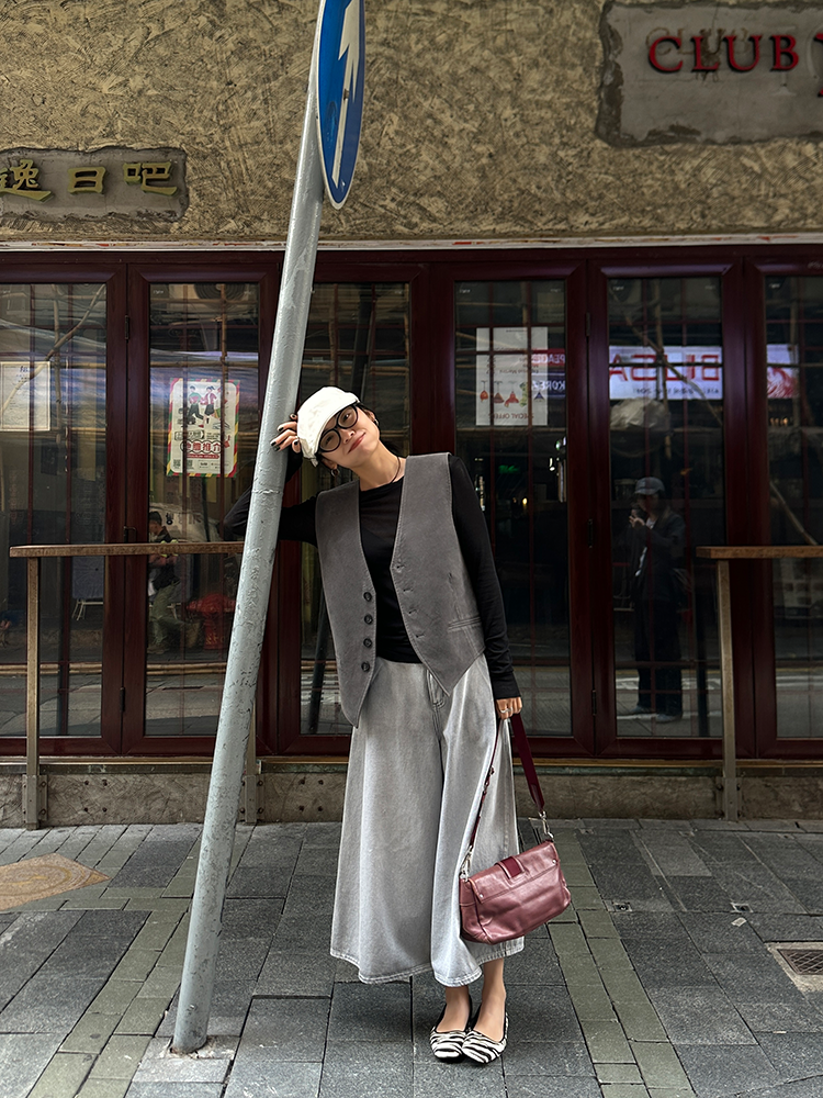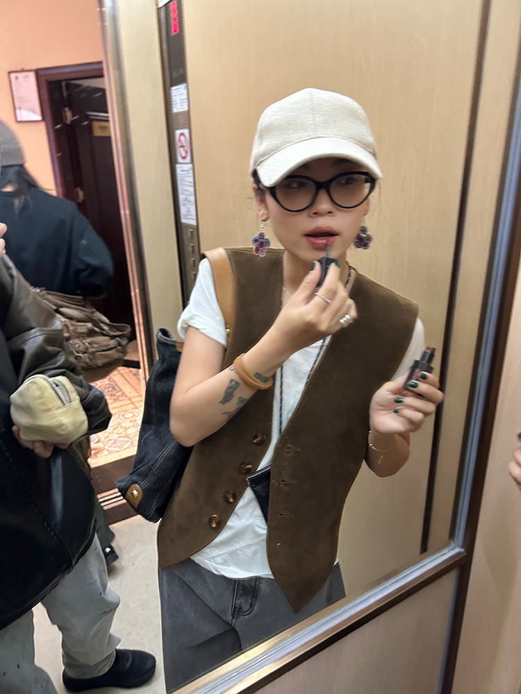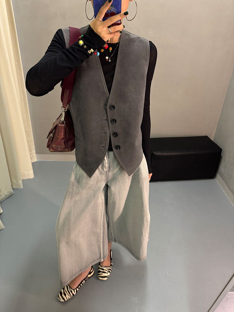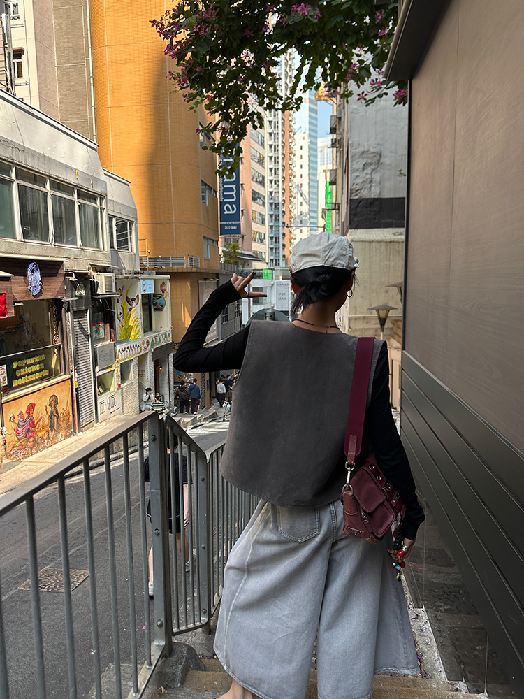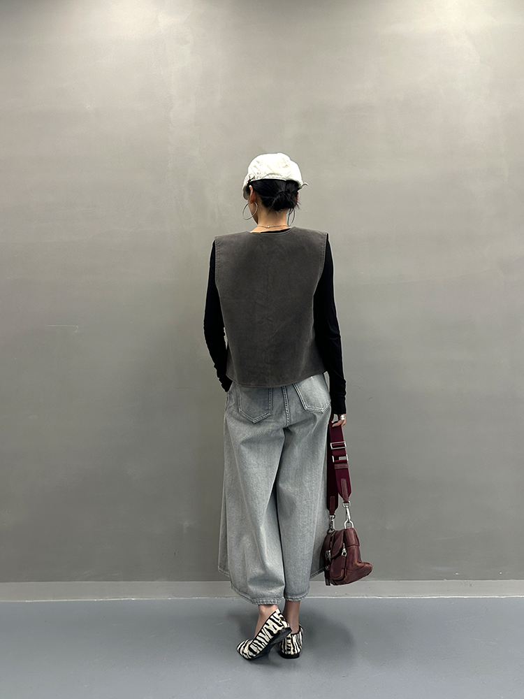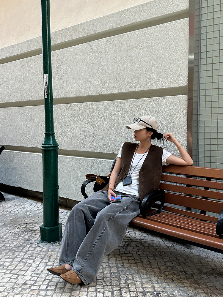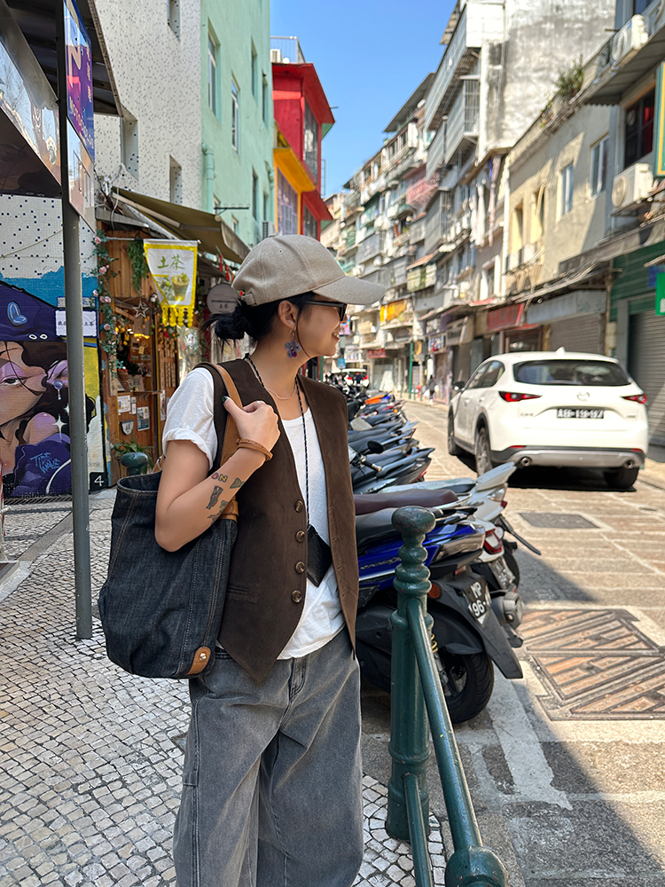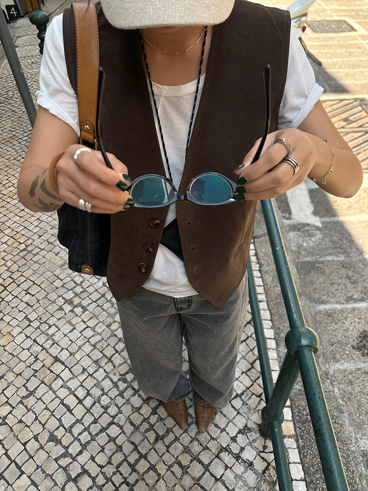 *o-ha-you*【FLCT2573】麂皮絨復古疊穿馬甲背心2025春季新款V領短版無袖坎肩馬夾外套-2色-如有需要請先諮詢