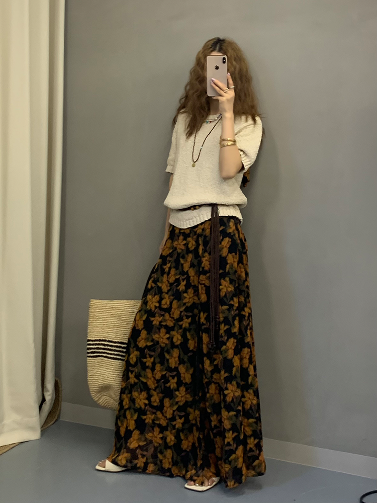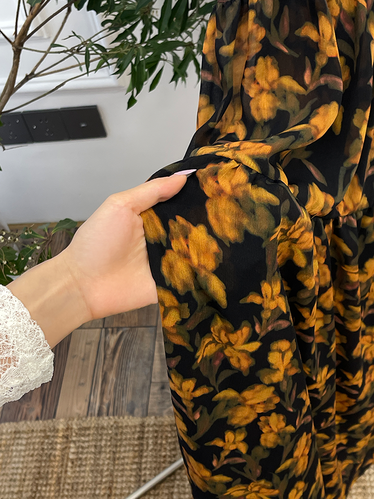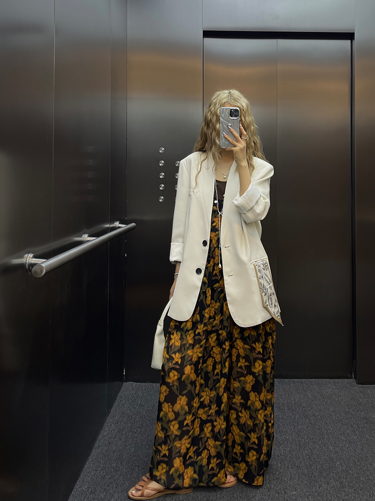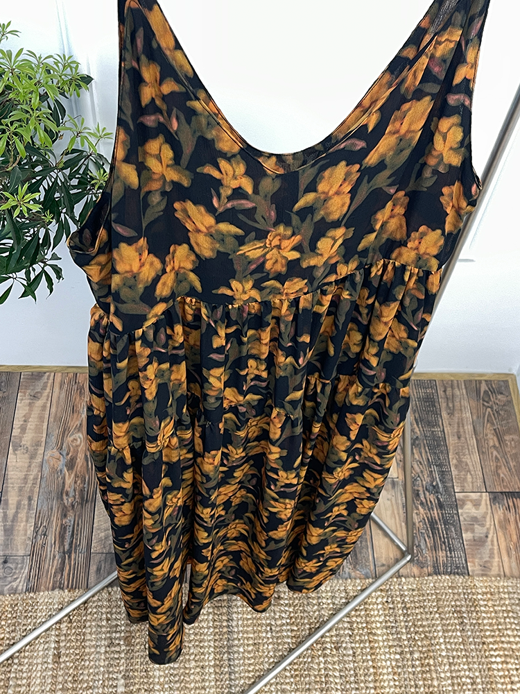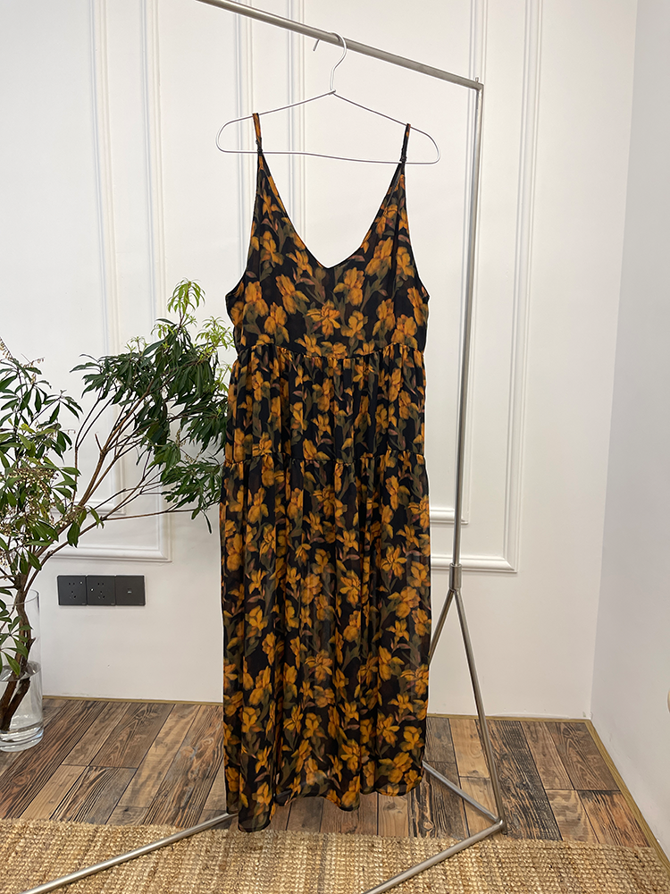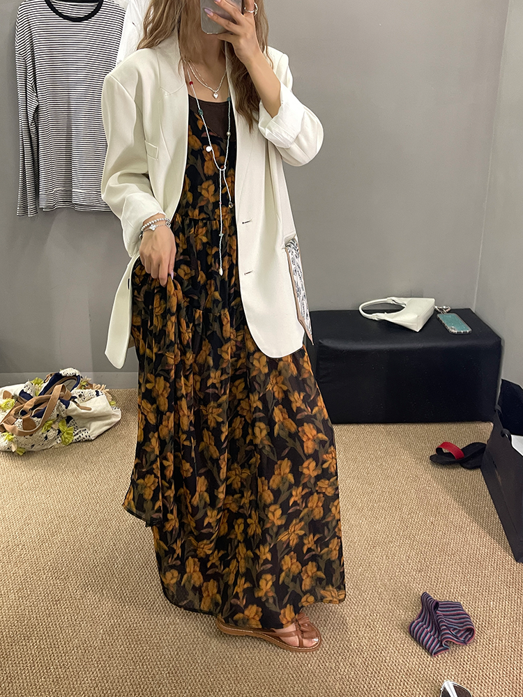 *o-ha-you*【FLCT2608】慵懶感拉滿的黃花雪紡吊帶連衣裙洋裝-如有需要請先諮詢