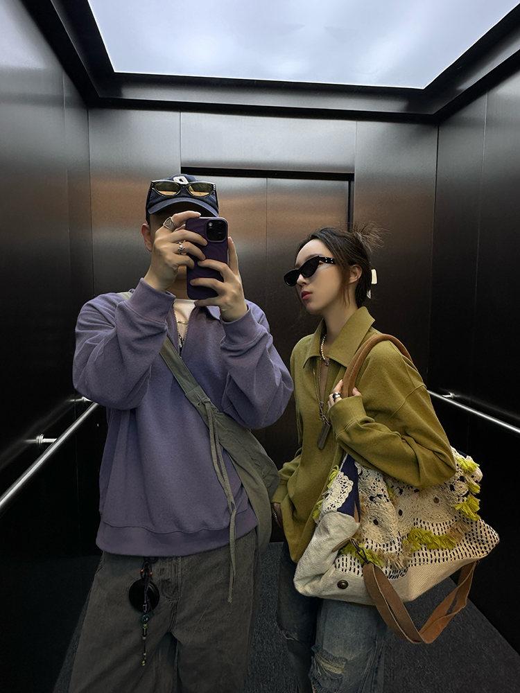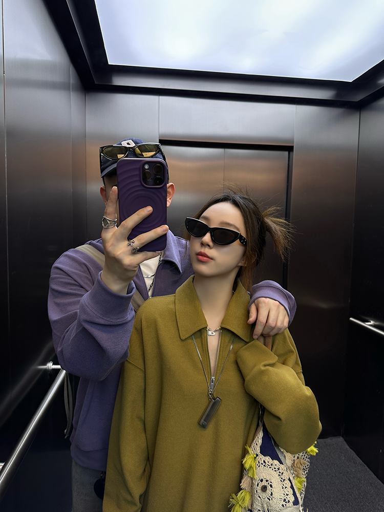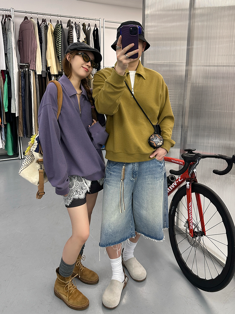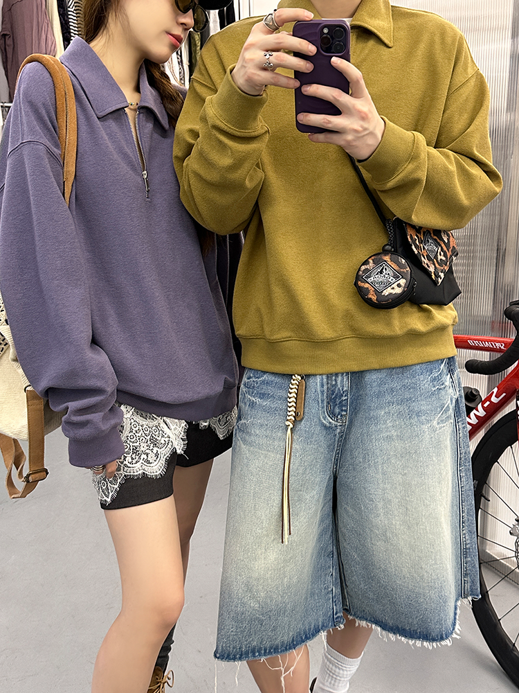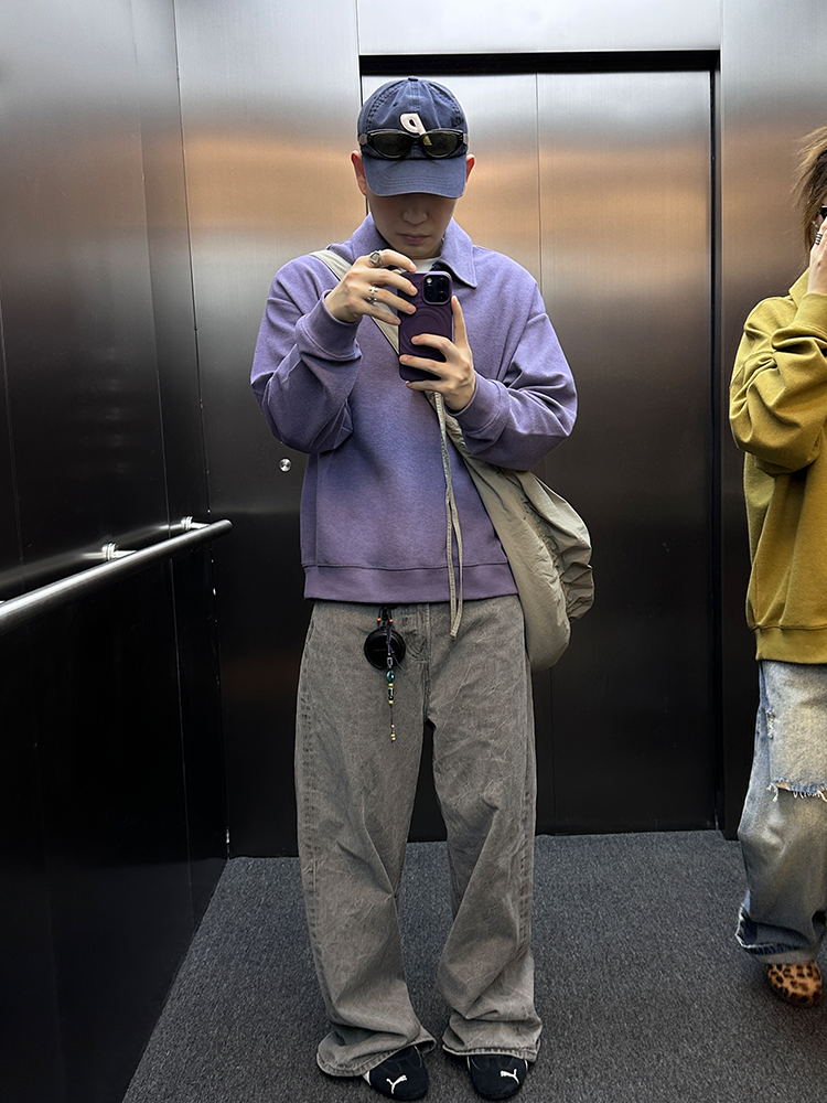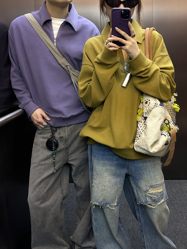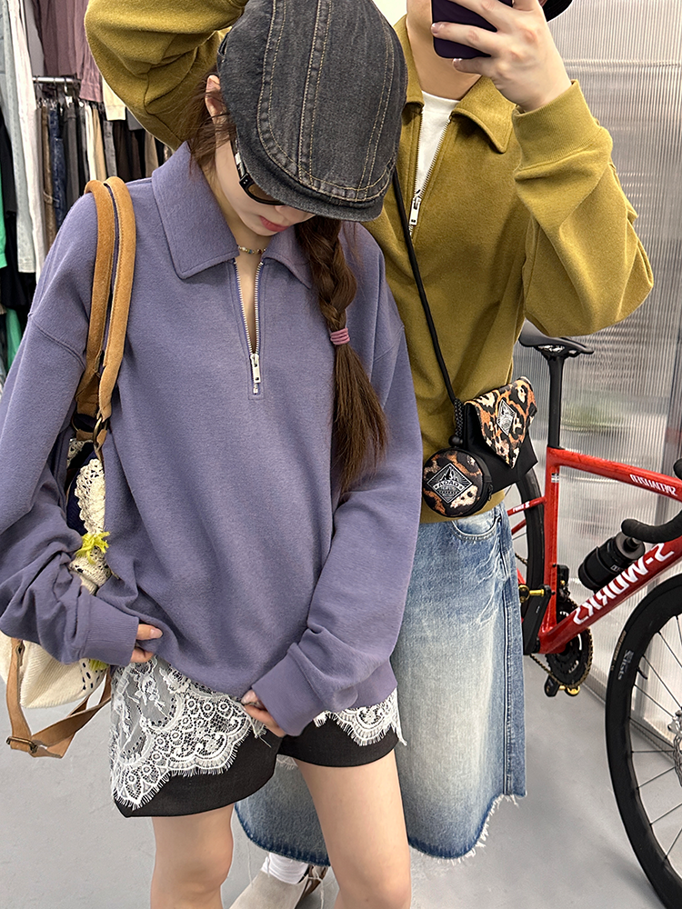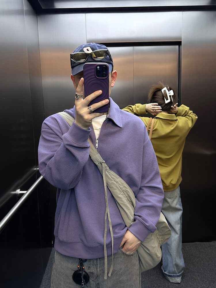 *o-ha-you*【FLCT2612】紫色帶旺 拉鍊款翻領寬鬆衛衣-2色-如有需要請先諮詢