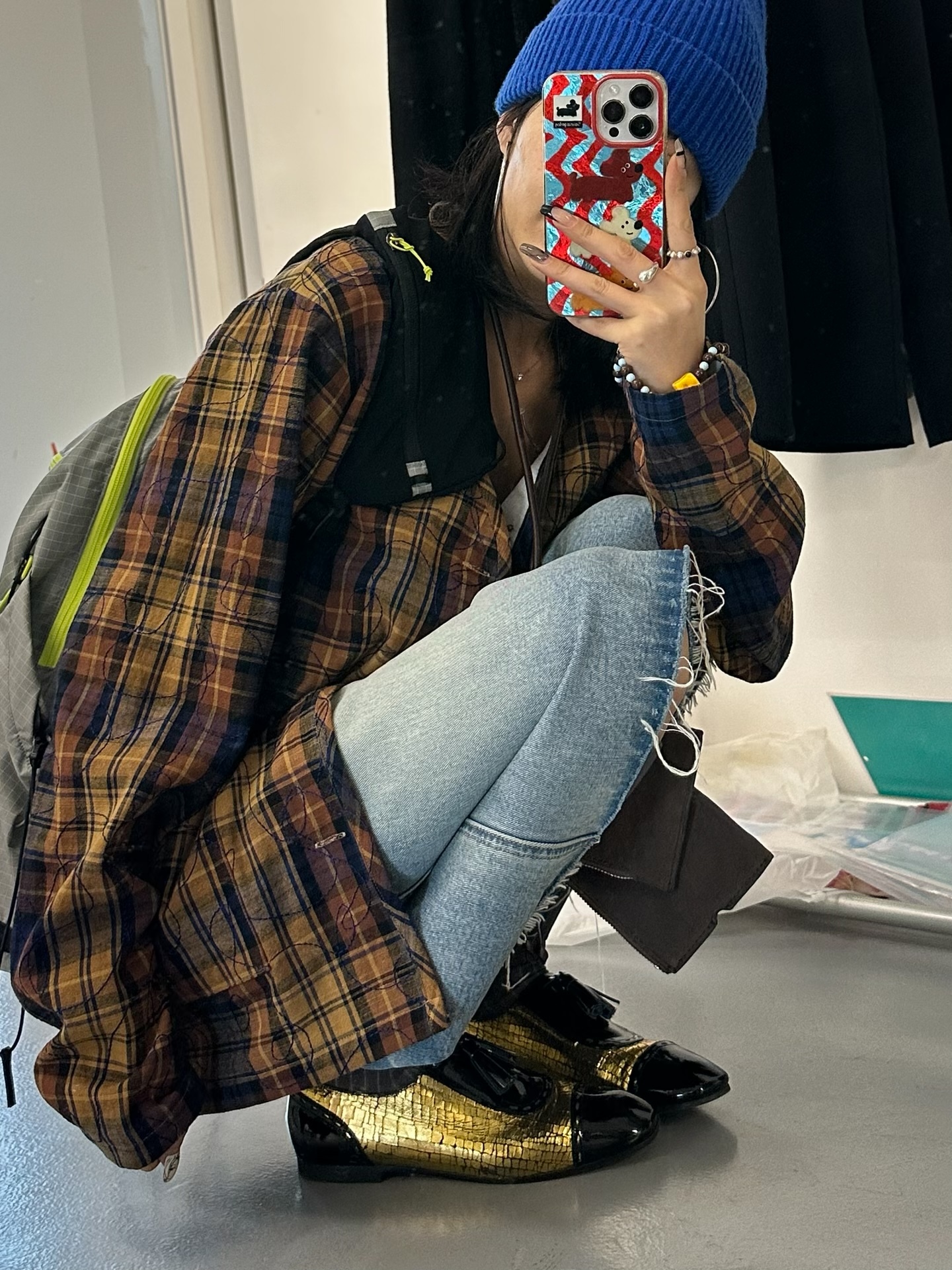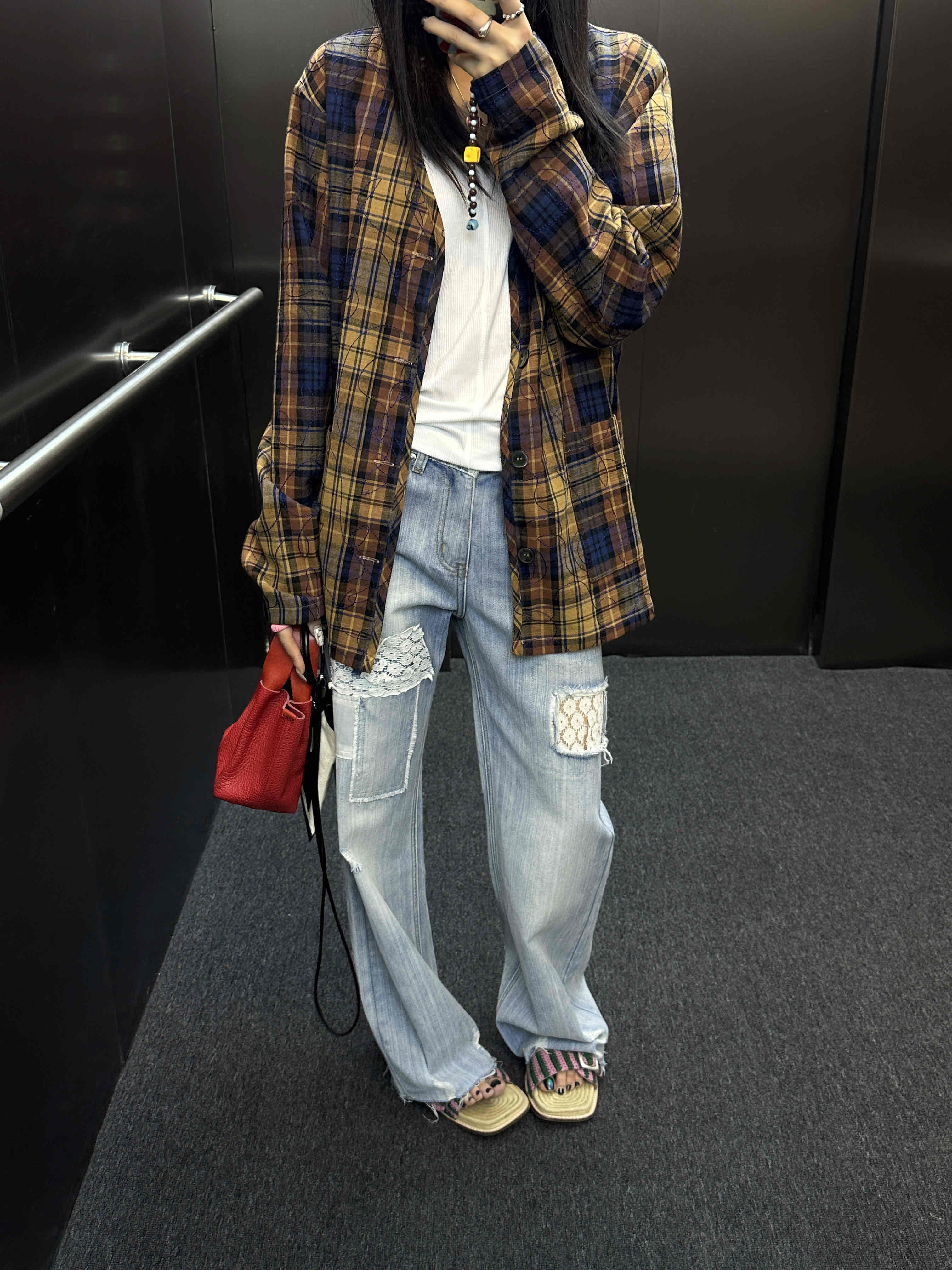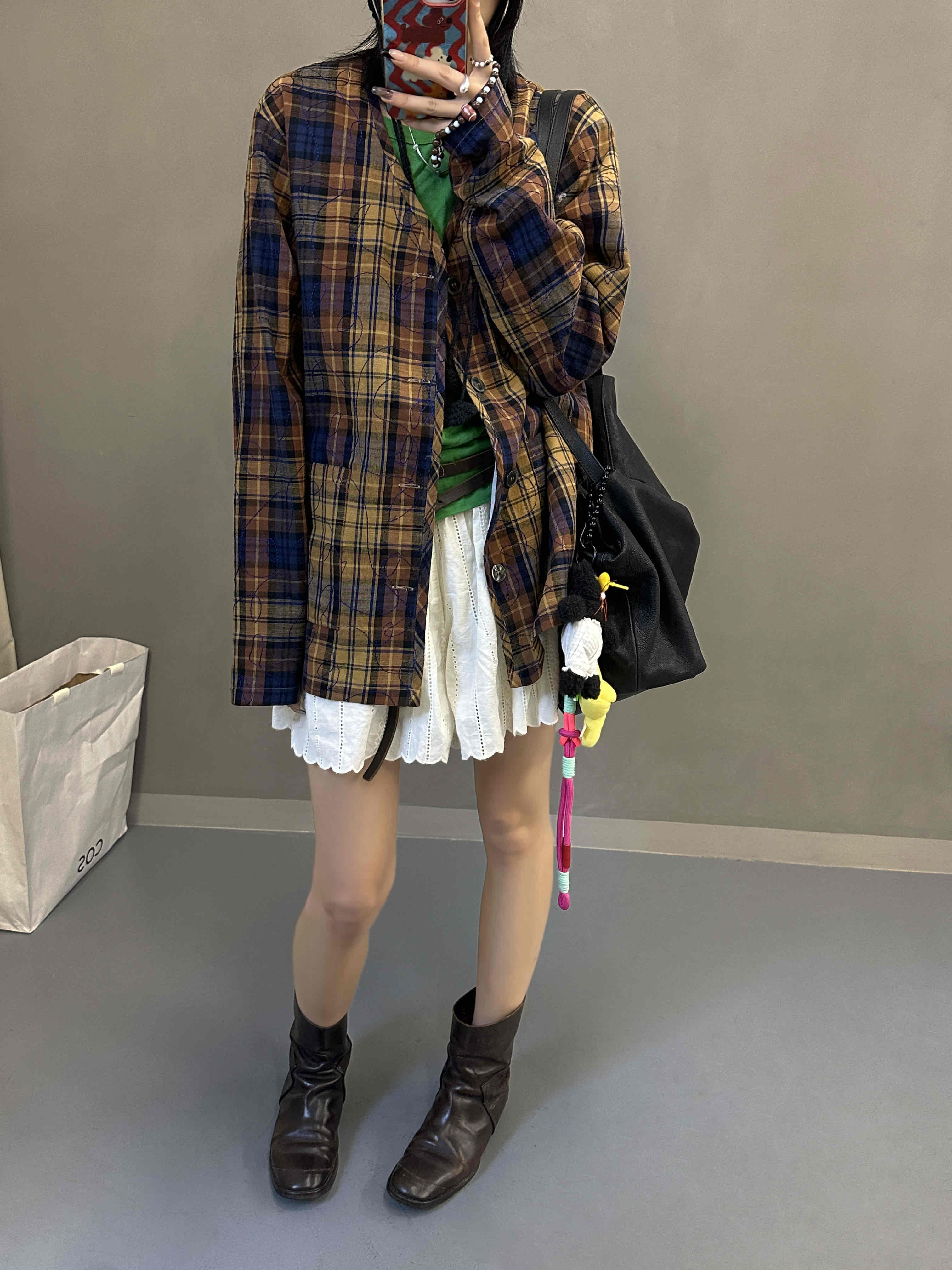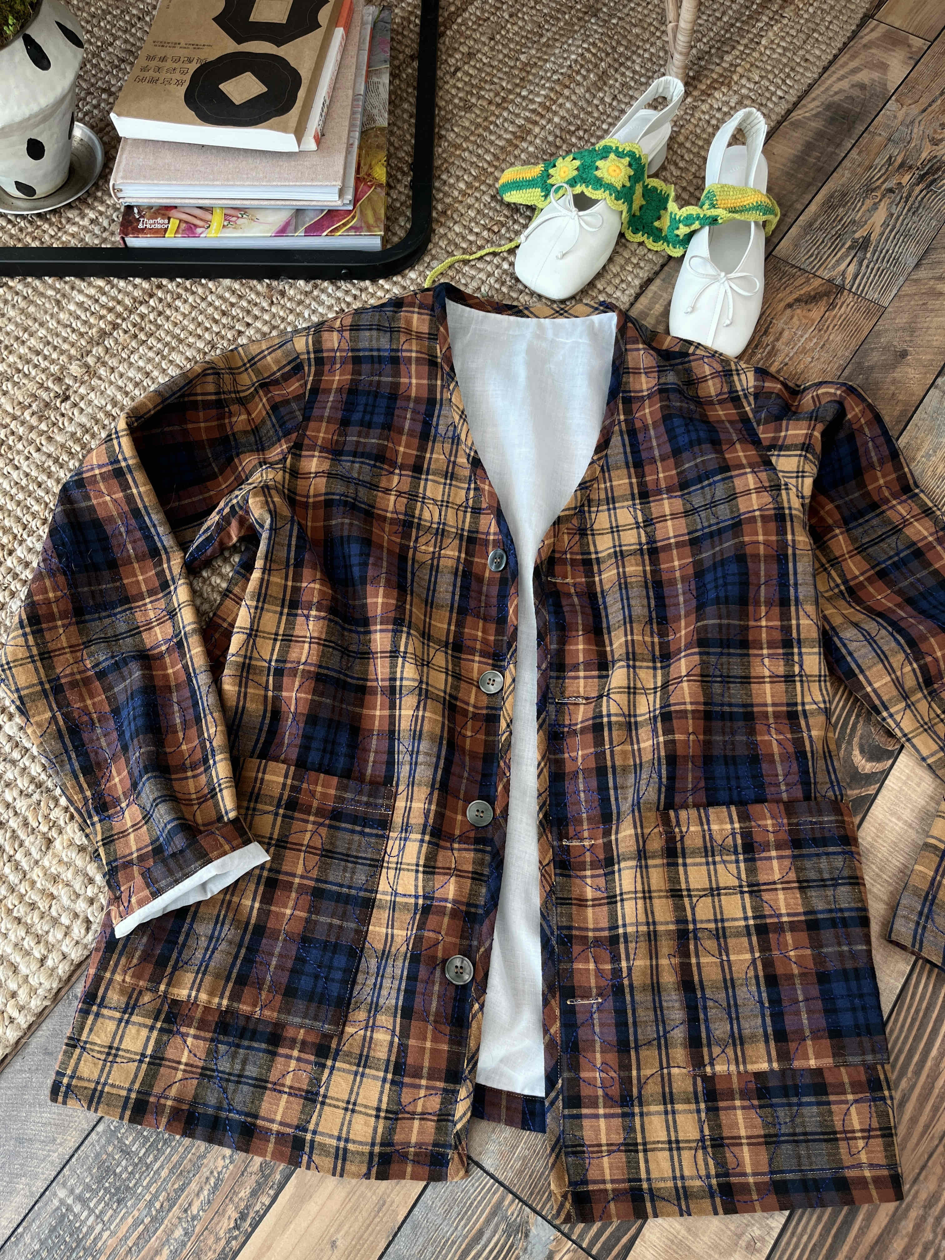 *o-ha-you*【FLCT2614-1】隱藏限量款~整件刺繡日系小眾時髦無領格紋西裝 全棉加全內襯外套一起做小眾女孩~M有現貨
