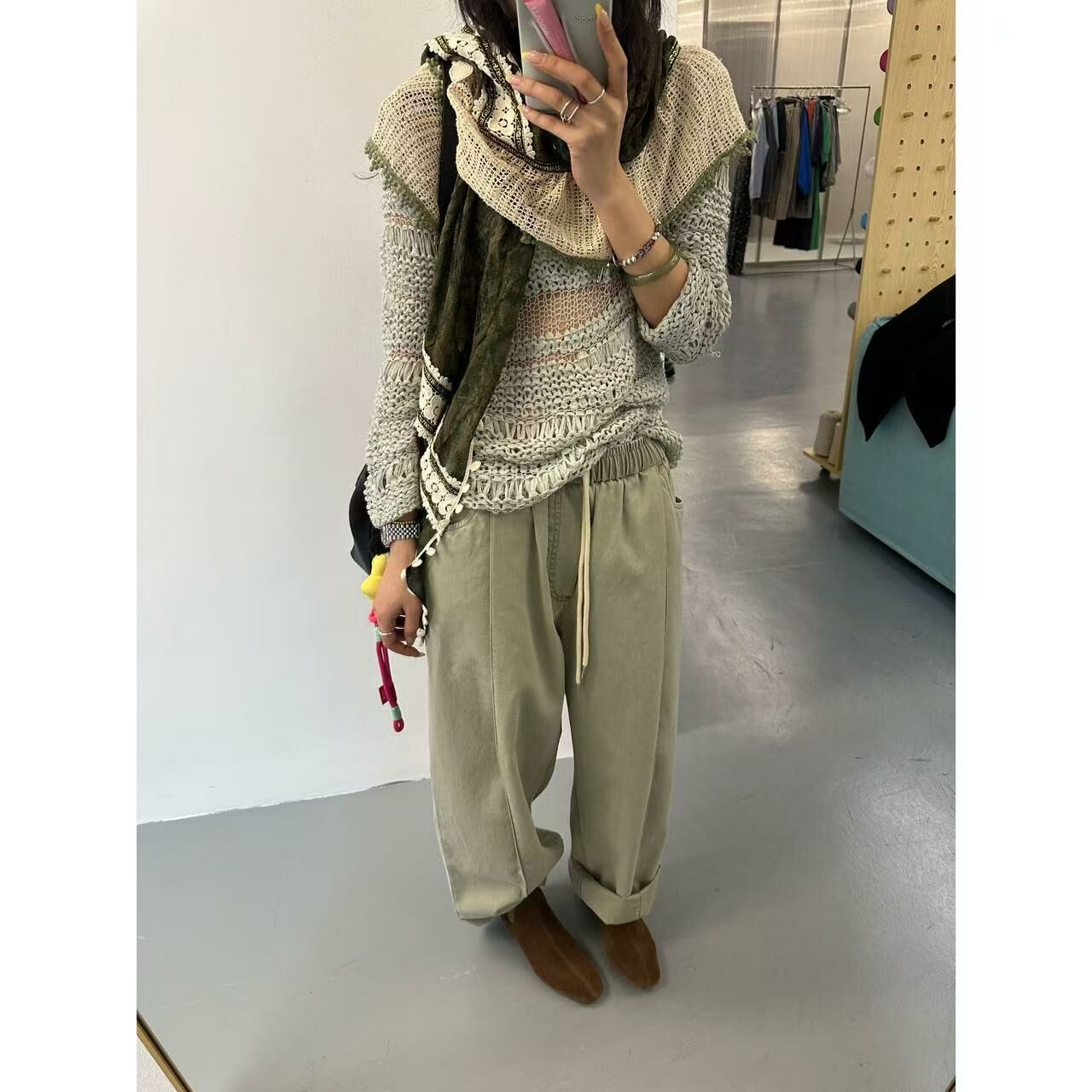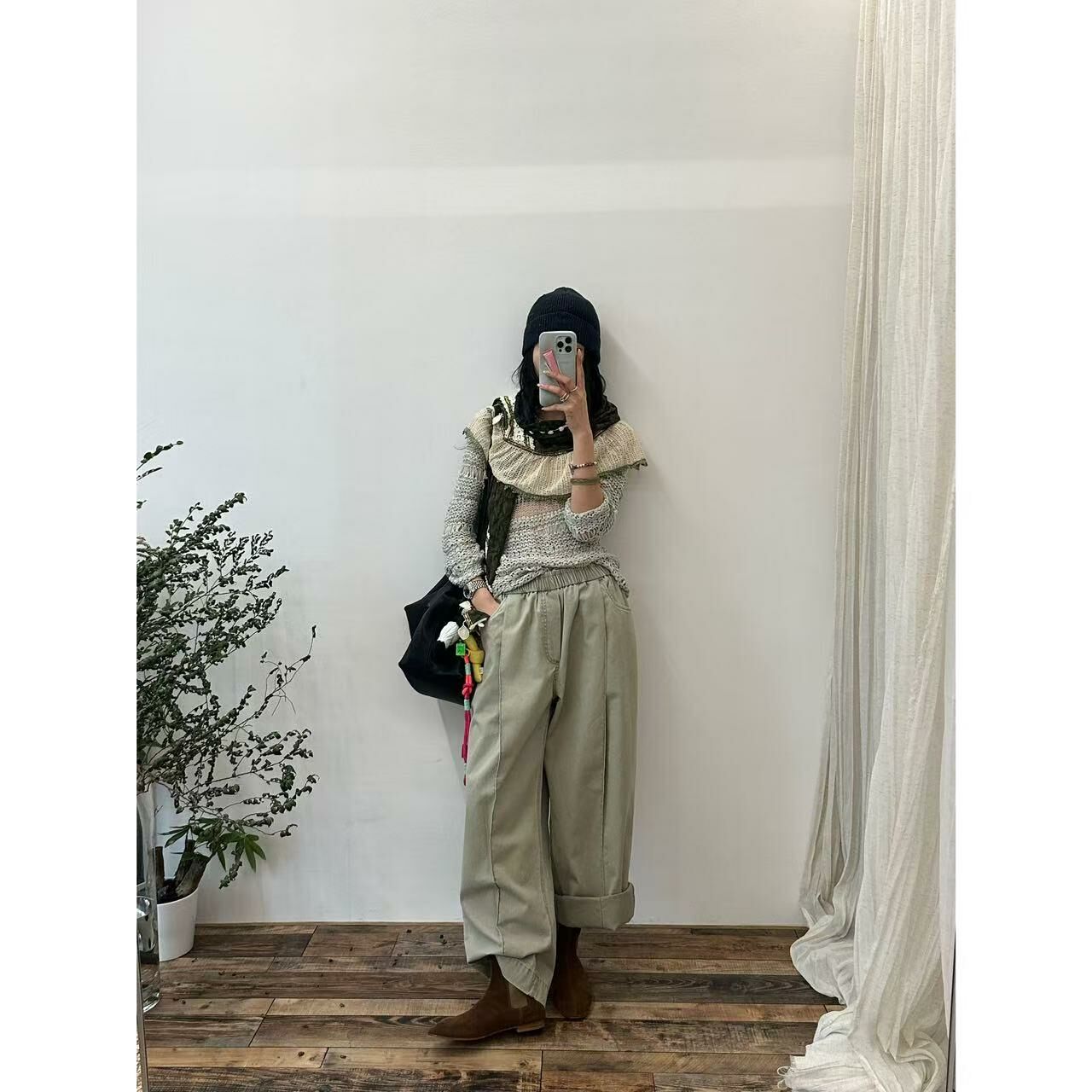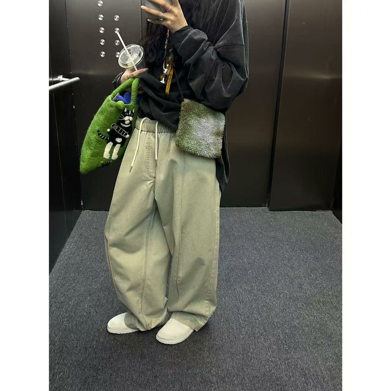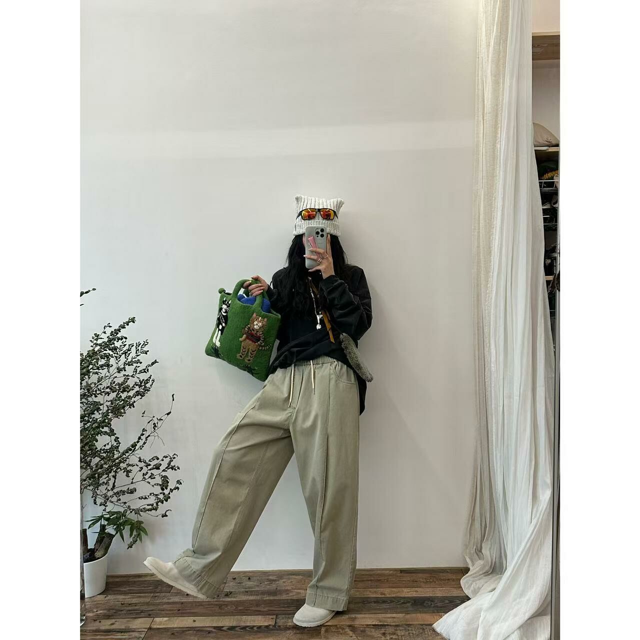 *o-ha-you*【FLCT2617】絕版><隱藏限量款~百搭純棉鬆緊腰斜紋哈倫褲 亞麻綠酵洗褪色層次感 黑色2道柔軟洗-2色~下單後盡力搶~搶不到別怪我-如有需要請先諮詢