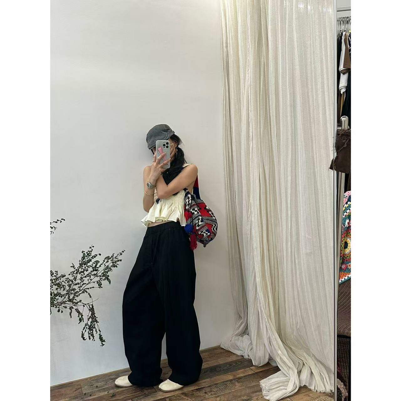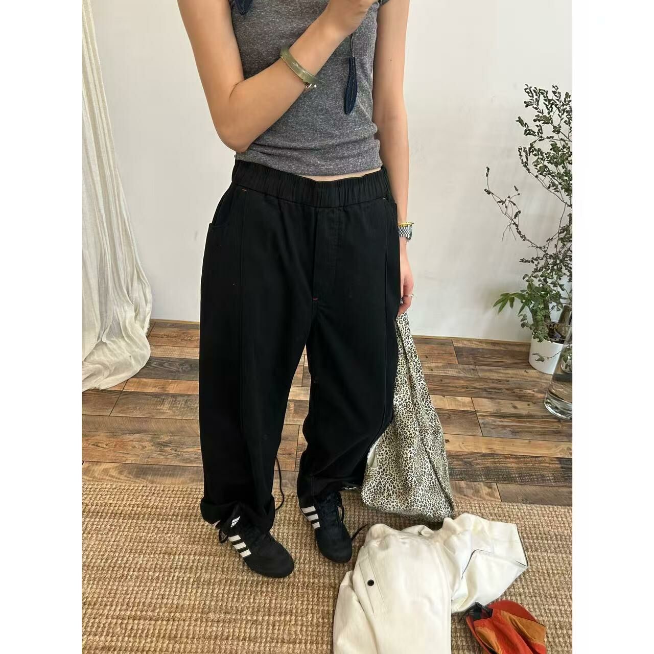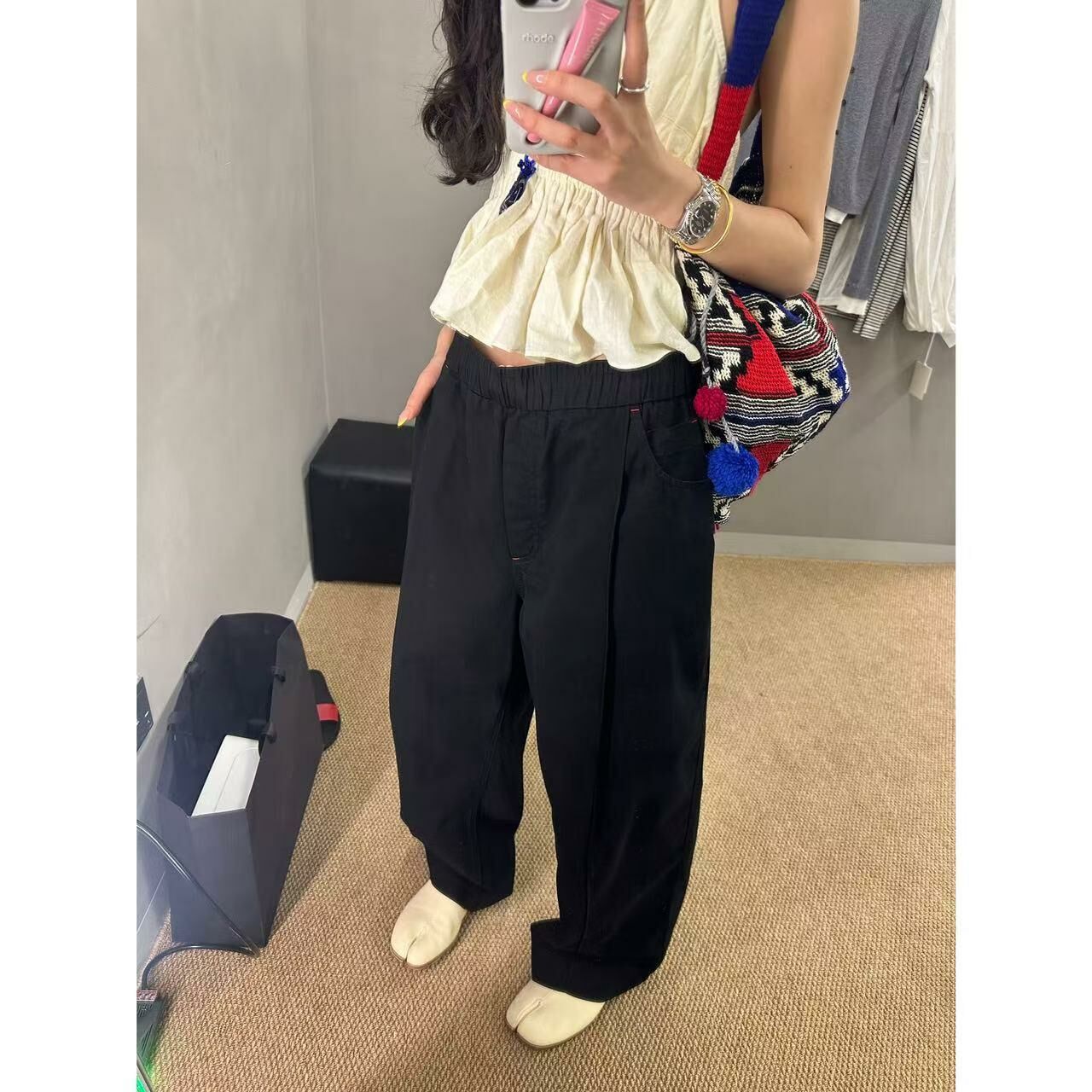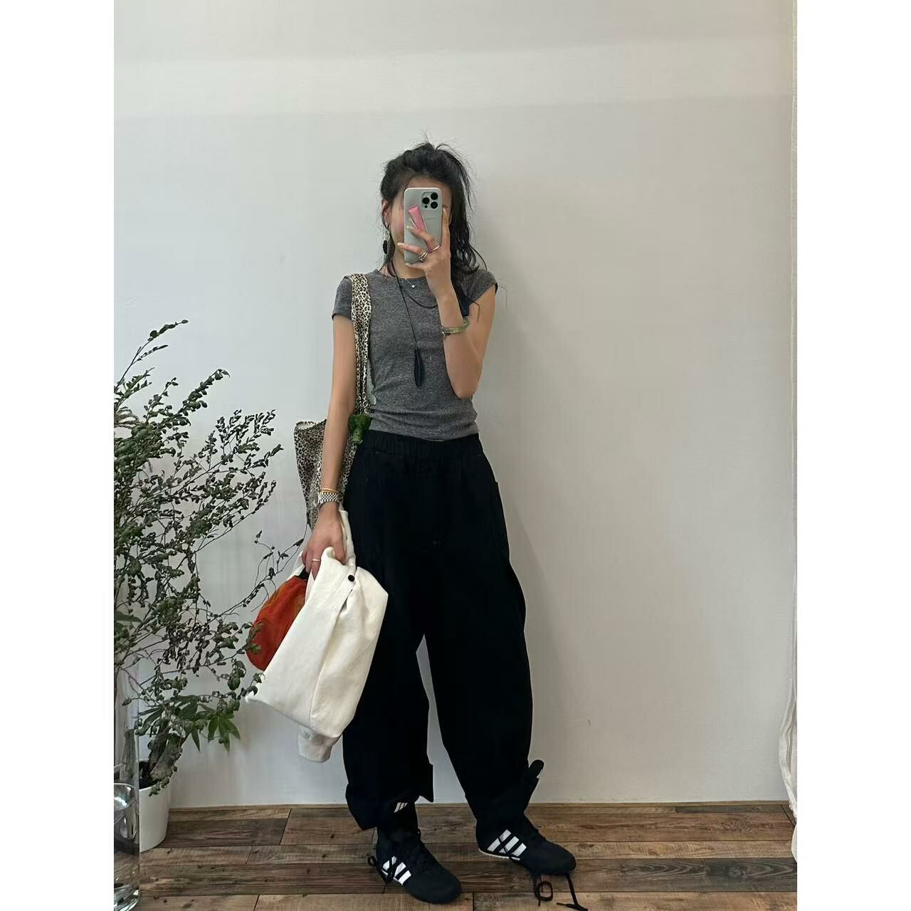 *o-ha-you*【FLCT2617】絕版><隱藏限量款~百搭純棉鬆緊腰斜紋哈倫褲 亞麻綠酵洗褪色層次感 黑色2道柔軟洗-2色~下單後盡力搶~搶不到別怪我-如有需要請先諮詢