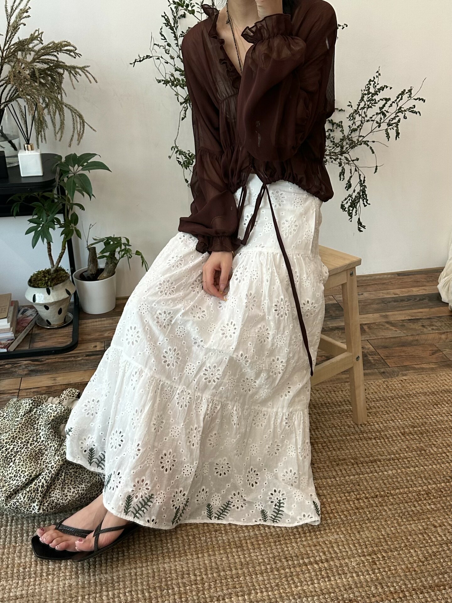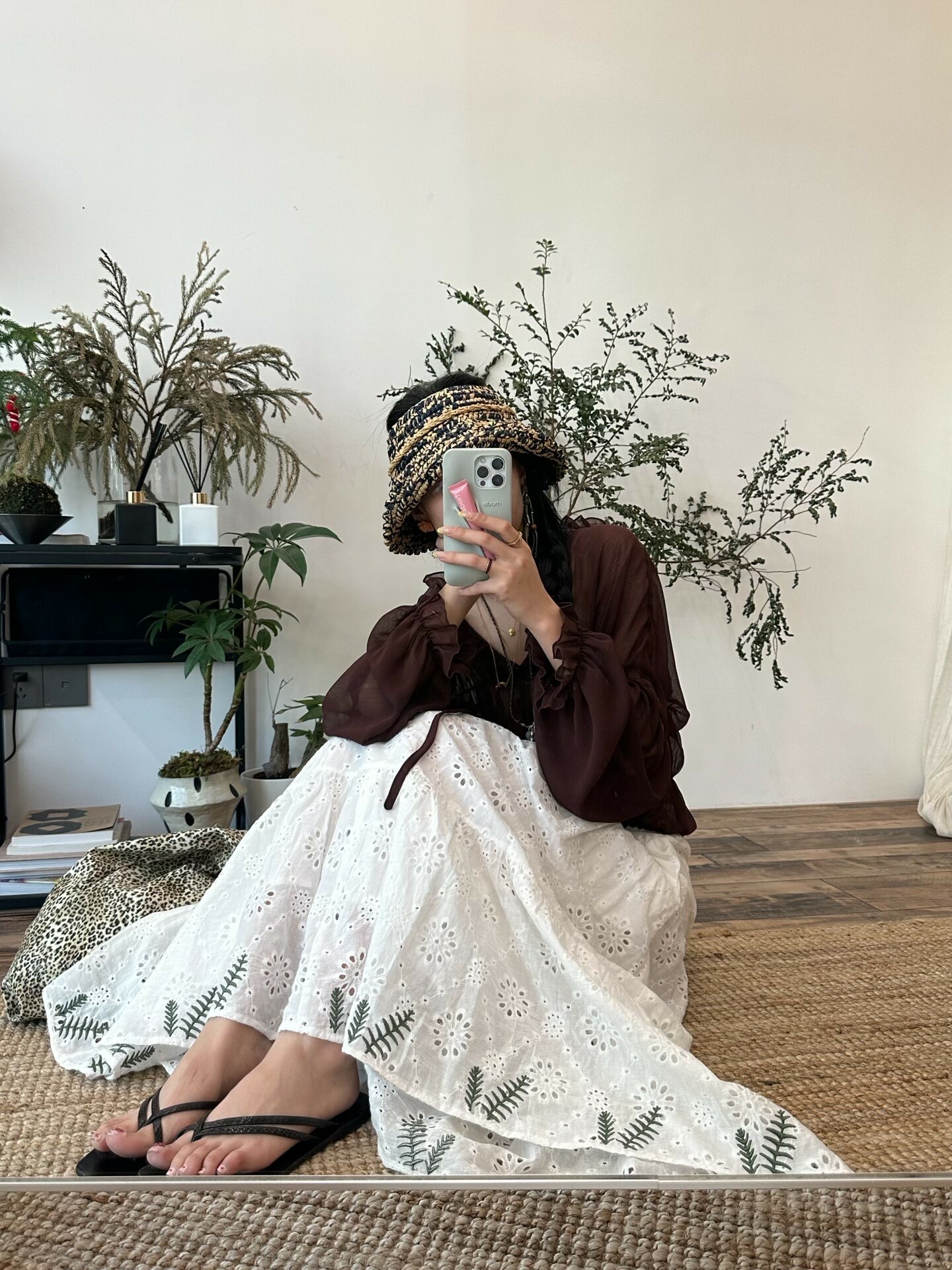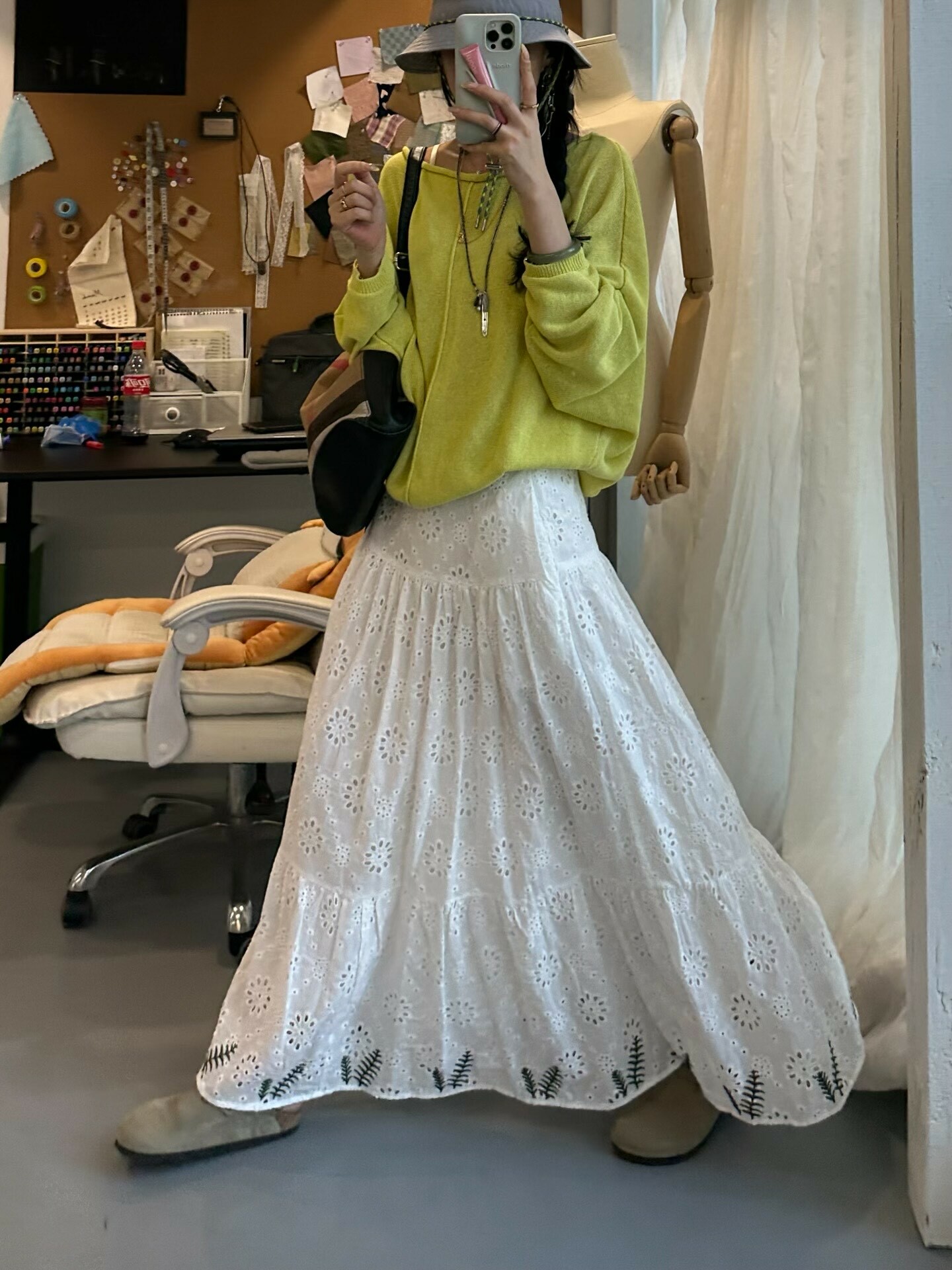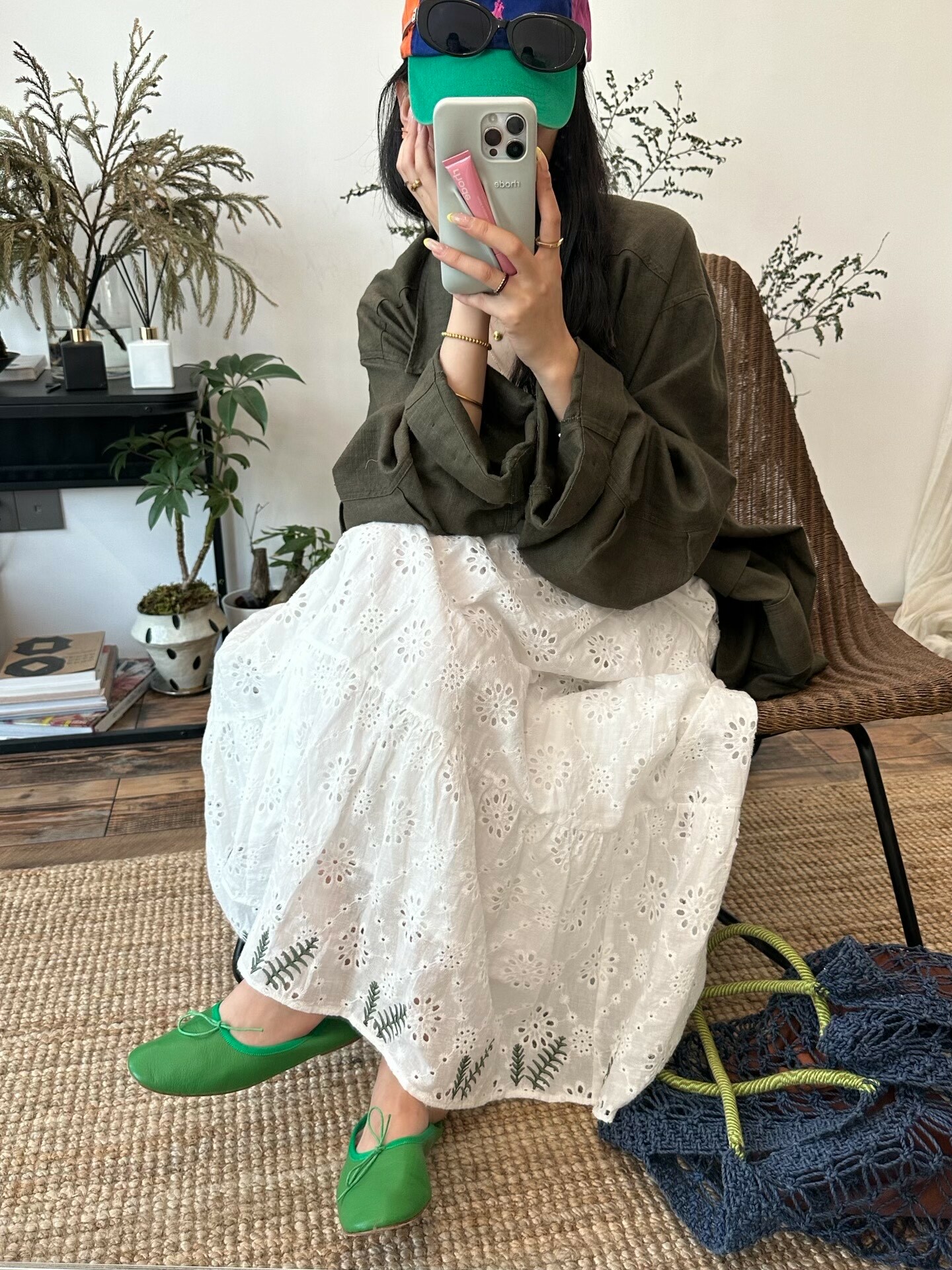 *o-ha-you*【FLCT2643】隱藏限量款~L有現貨~植物刺繡半裙 4季可穿用料2米全棉內襯後鬆緊腰側拉鍊有側袋布蕾絲刺繡長裙~下單後盡力搶~搶不到別怪我