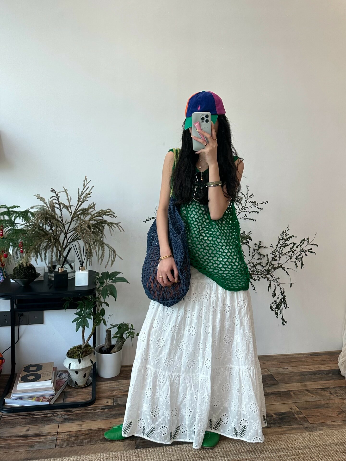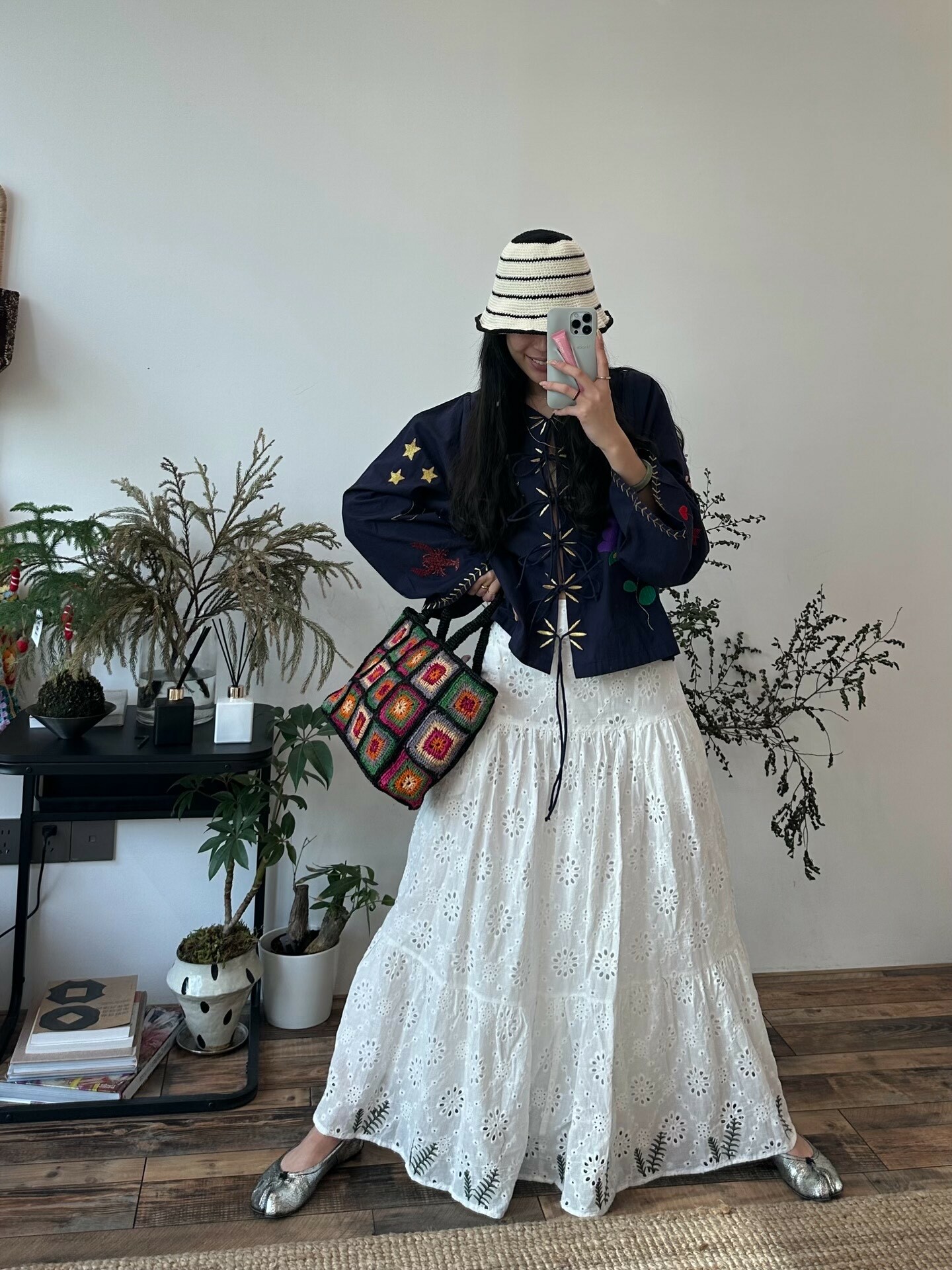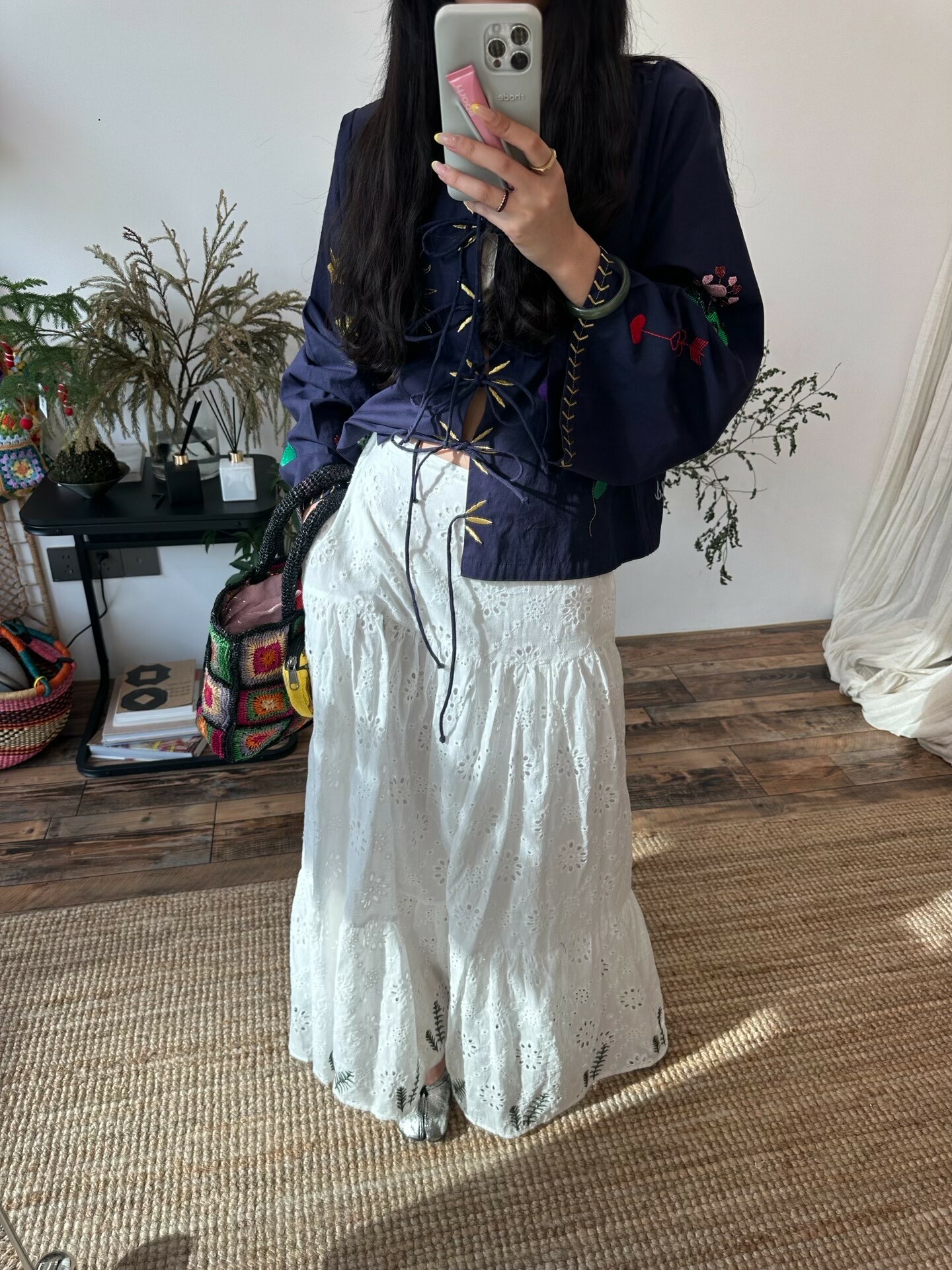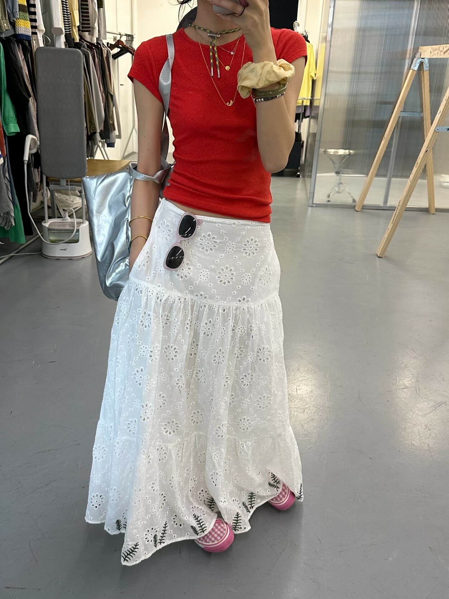 *o-ha-you*【FLCT2643】隱藏限量款~L有現貨~植物刺繡半裙 4季可穿用料2米全棉內襯後鬆緊腰側拉鍊有側袋布蕾絲刺繡長裙~下單後盡力搶~搶不到別怪我