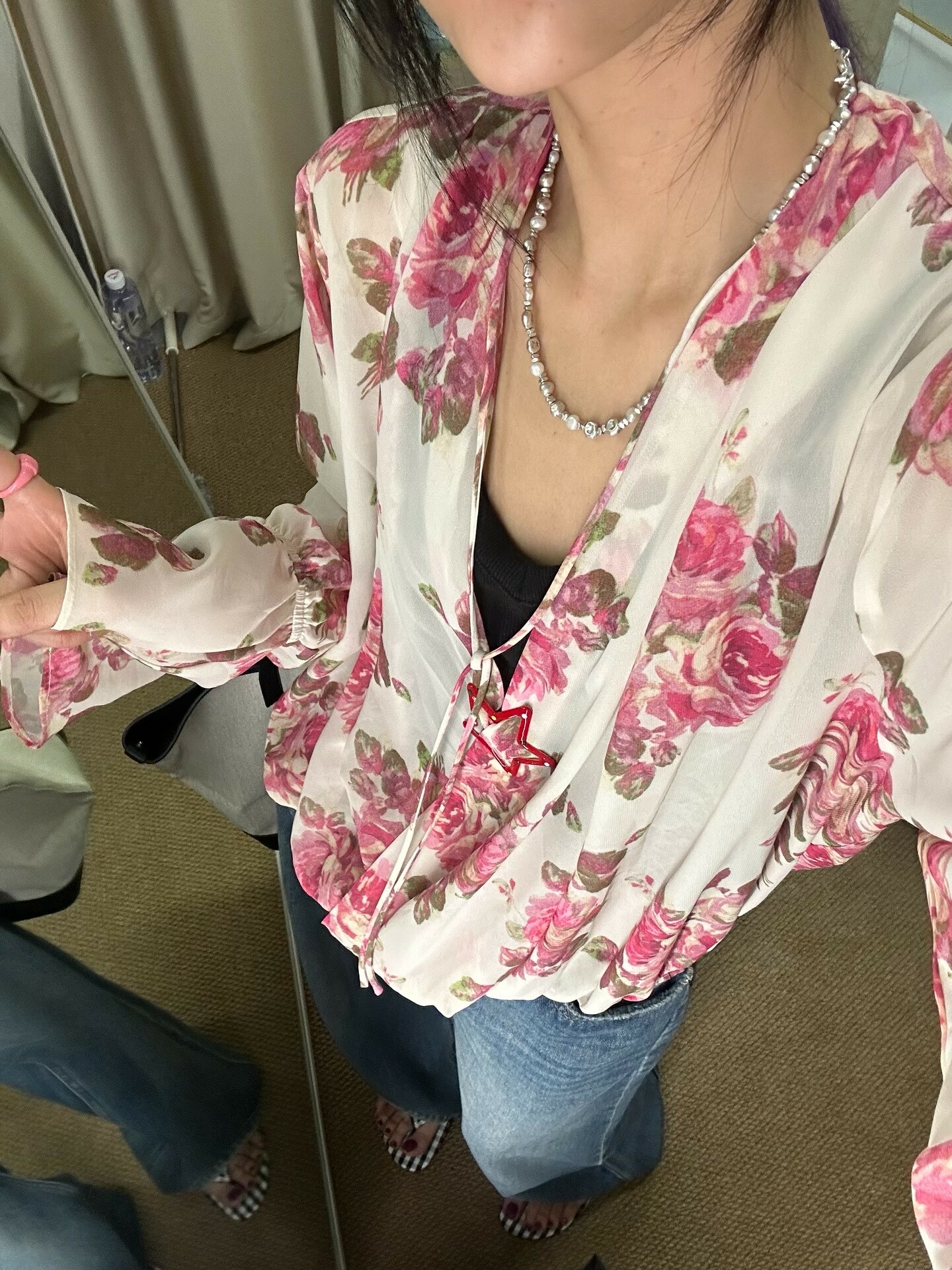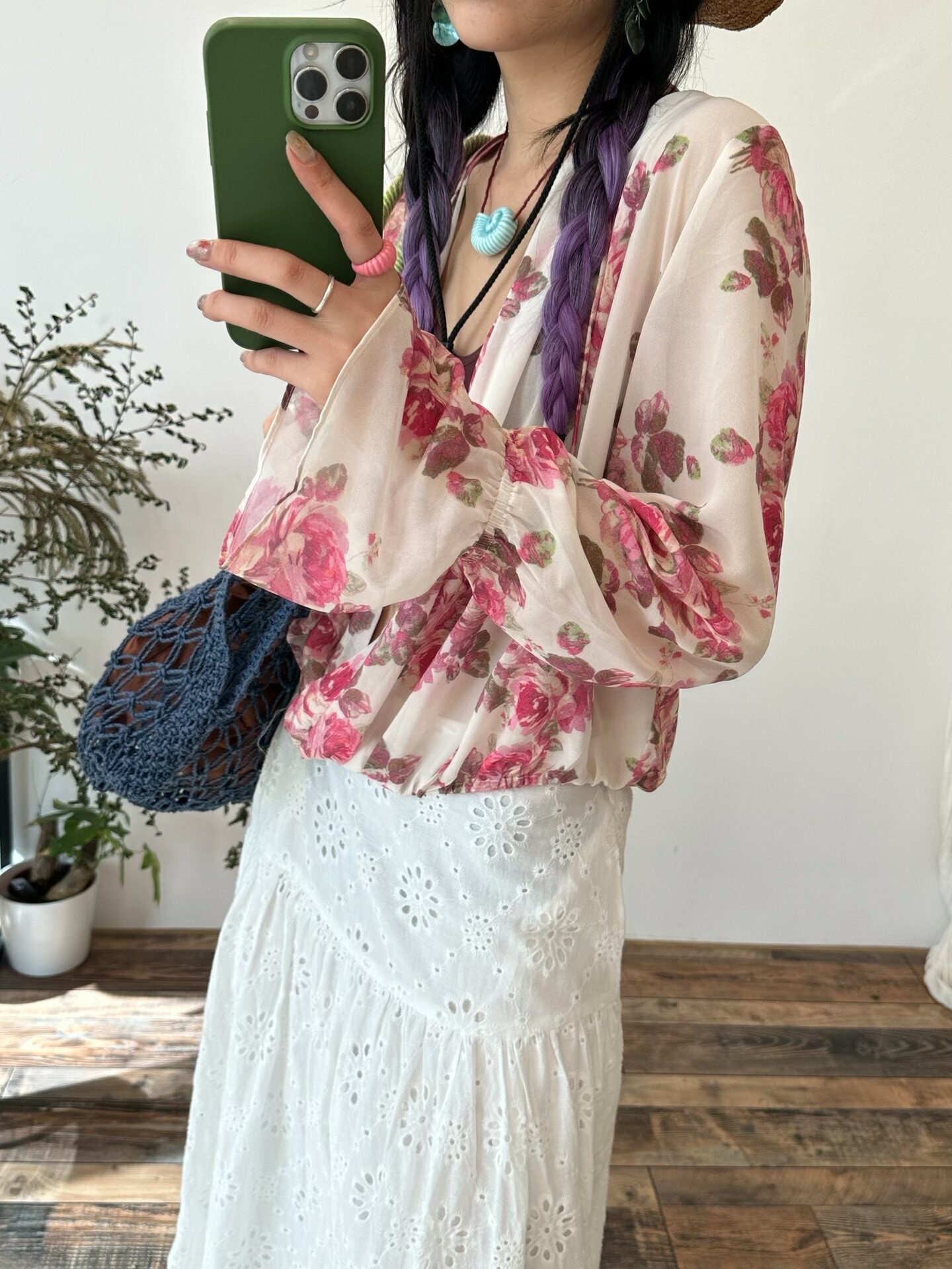 *o-ha-you*【FLCT2672】隱藏限量款~夏天怎麼能沒有花花啊!防曬荷葉袖雪紡上衣 很寬鬆需內搭吊帶~下單後盡力搶~搶不到別怪我