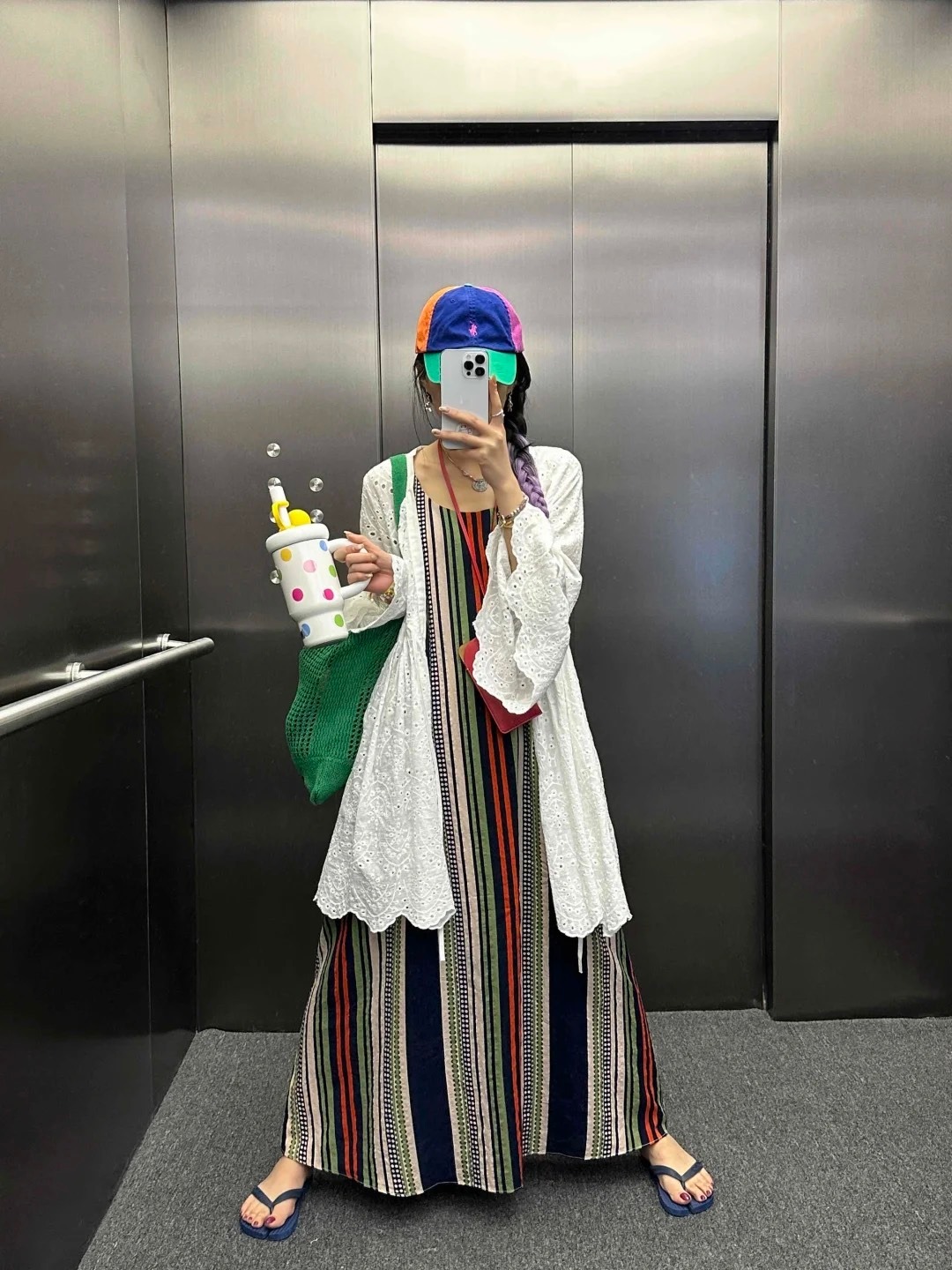 *o-ha-you*【FLCT2673】絕版><隱藏限量款~夏天洋裝來啦!訂製人棉布料整條裙定位定點排版肩帶可調有內襯~下單後盡力搶~搶不到別怪我