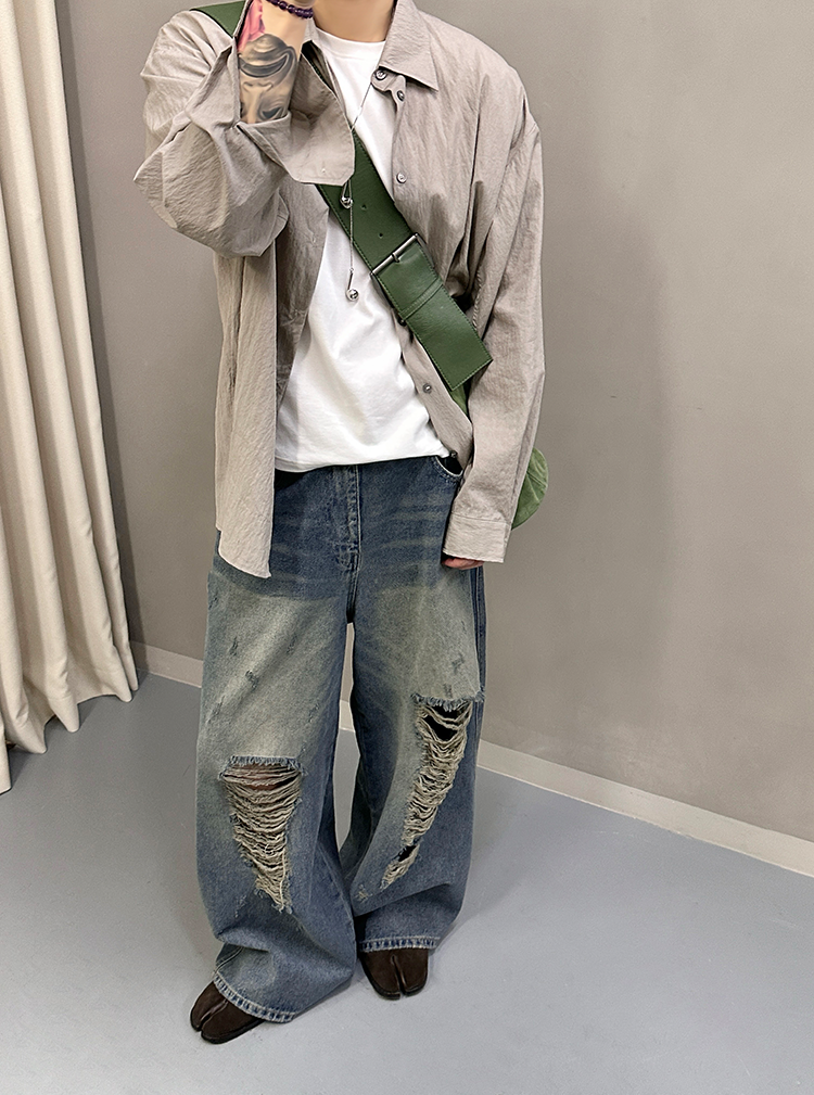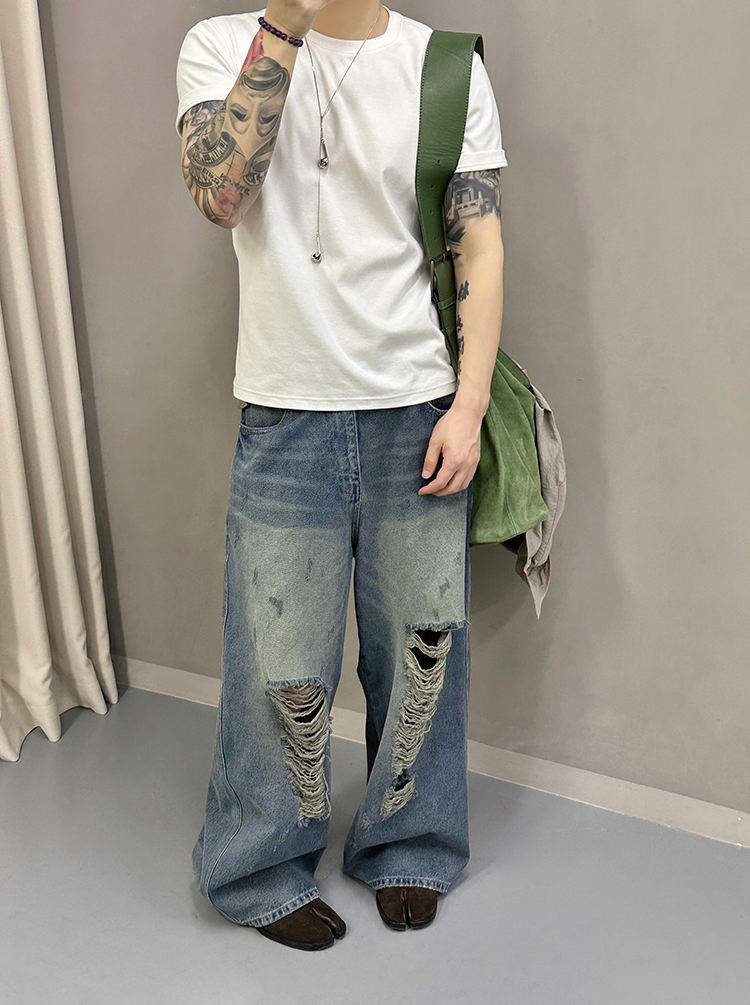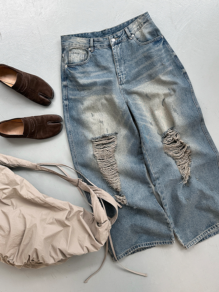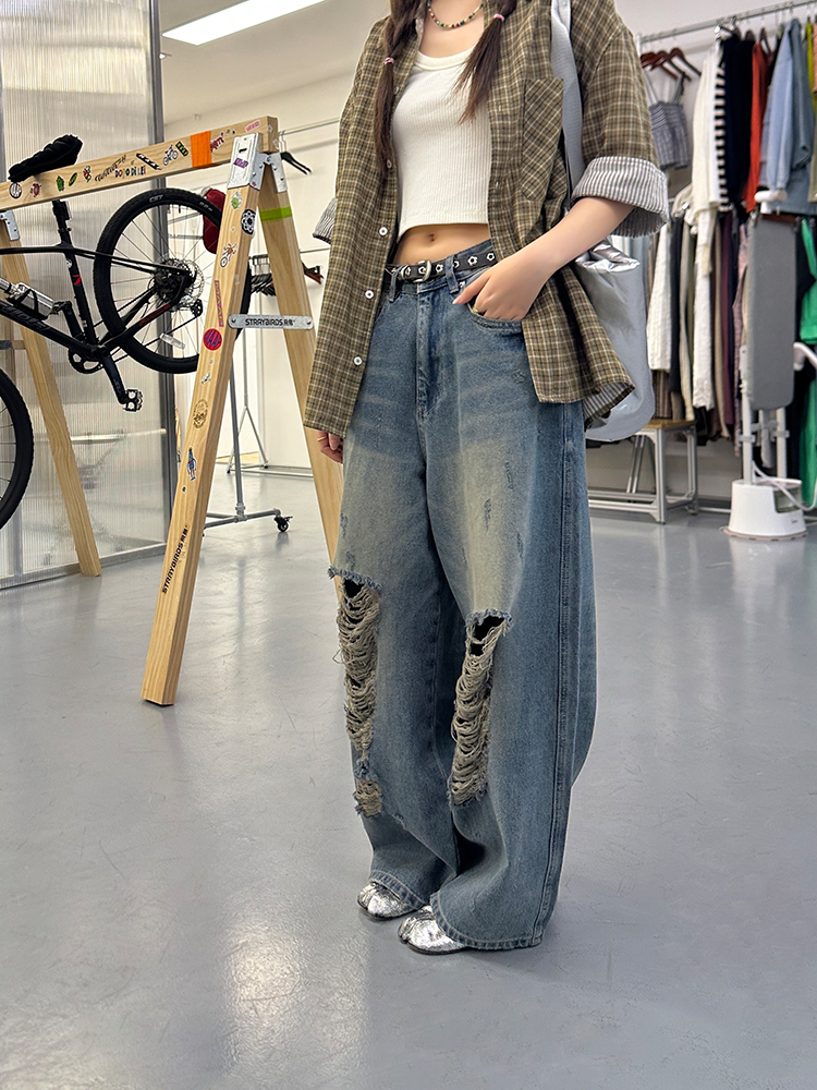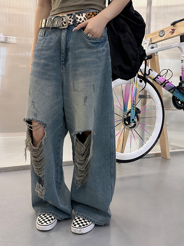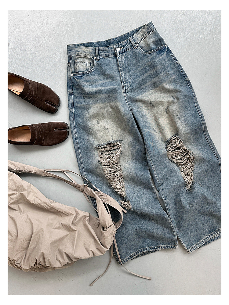*o-ha-you*【FLCT2697】重工大破洞寬鬆軟牛仔褲-如有需要請先諮詢