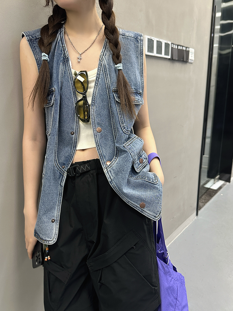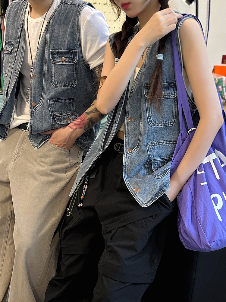 *o-ha-you*【FLCT2698】80S的寬鬆古著牛仔馬甲背心-如有需要請先諮詢