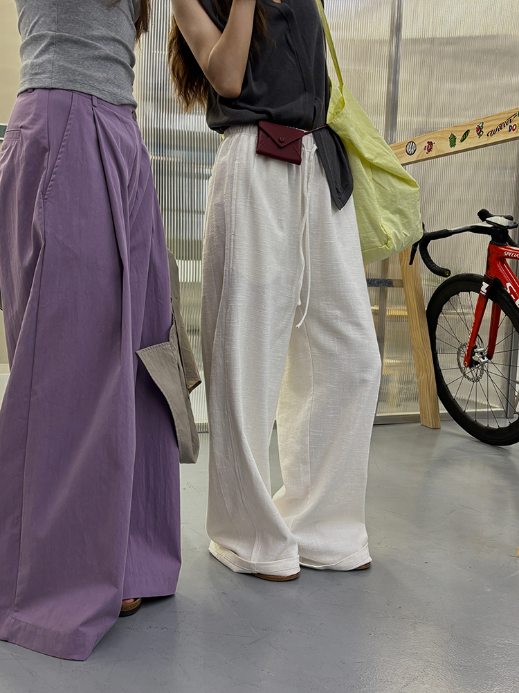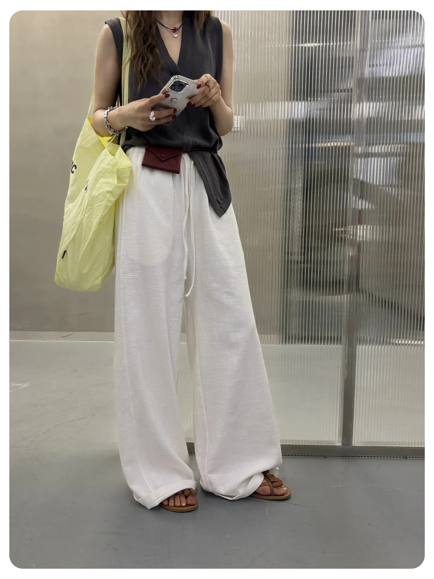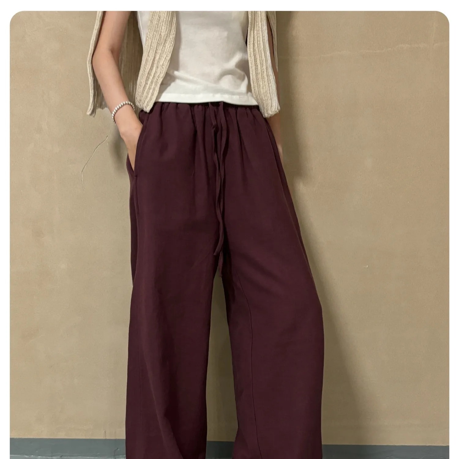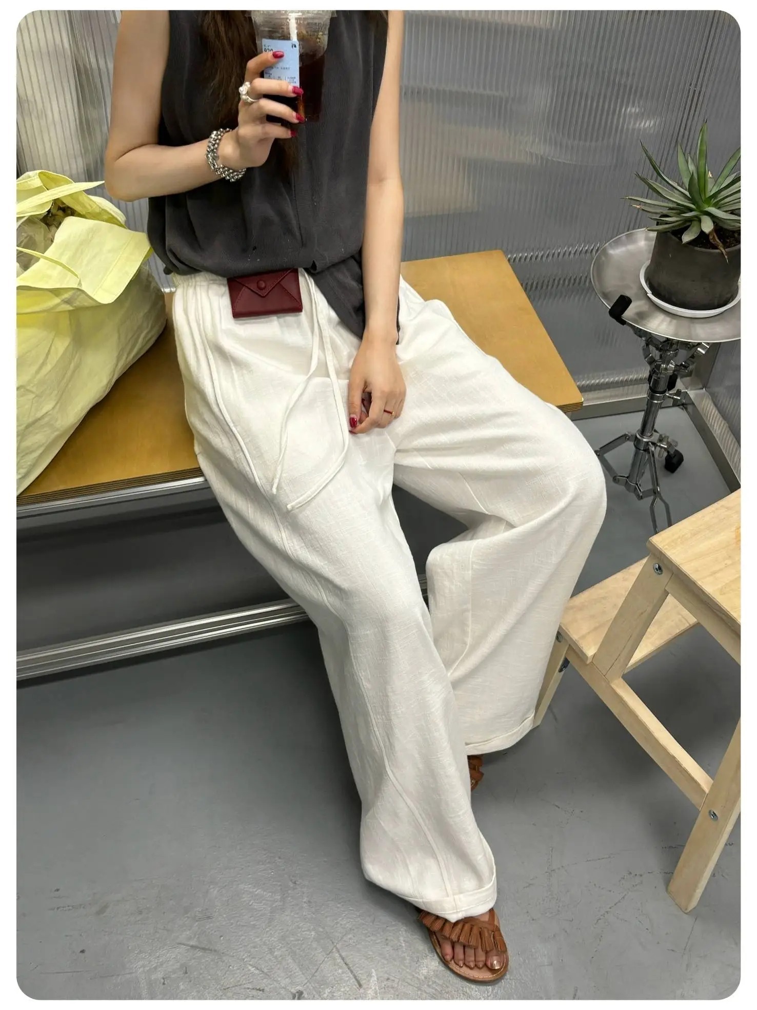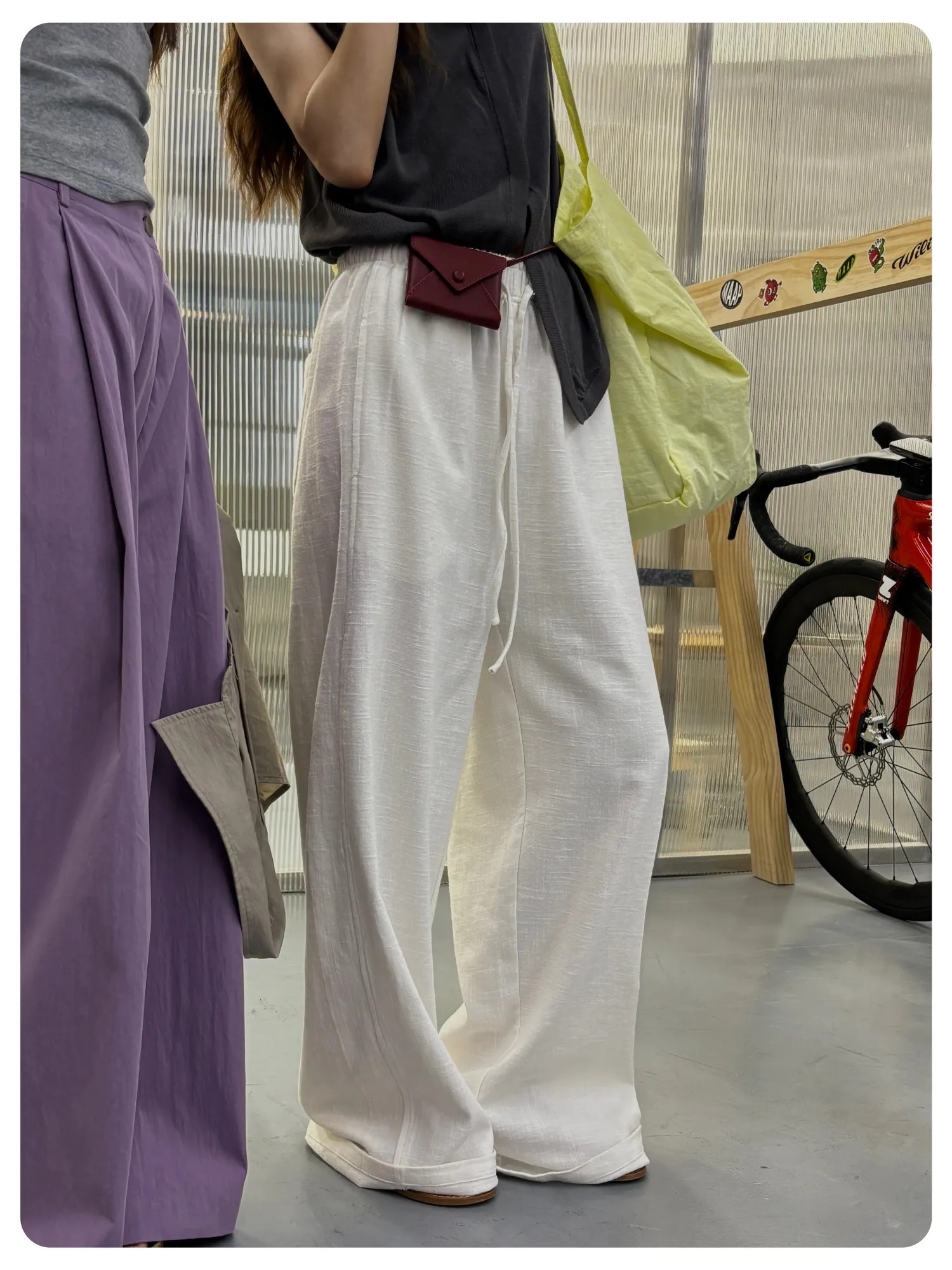*o-ha-you*【FLCT2701】王炸褲型限季返場苧麻棉大直筒褲側縫線往前挪挪顯瘦直筒鬆緊腰亞麻褲-2色-如有需要請先諮詢