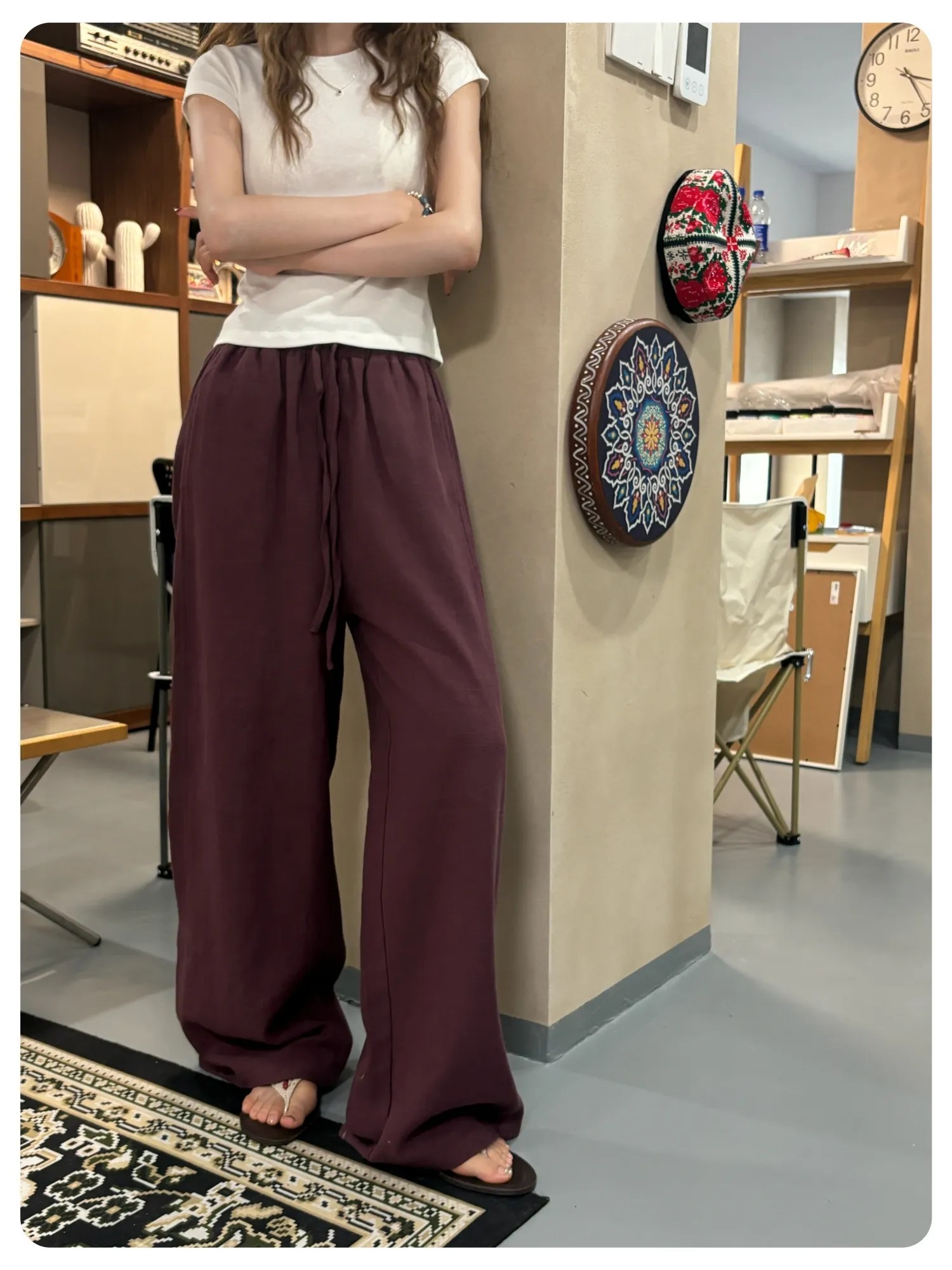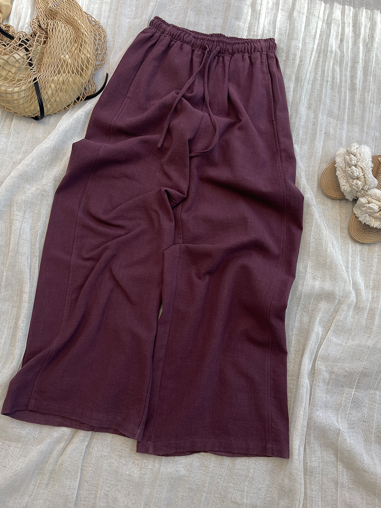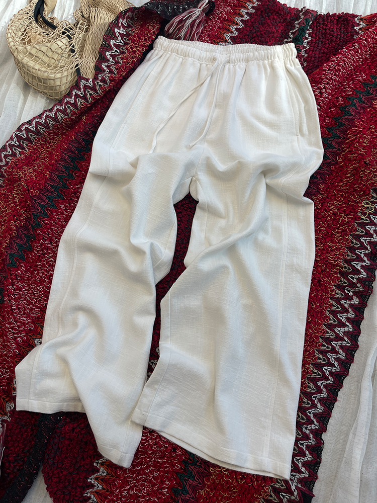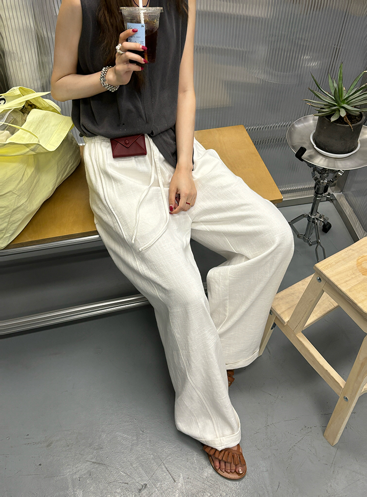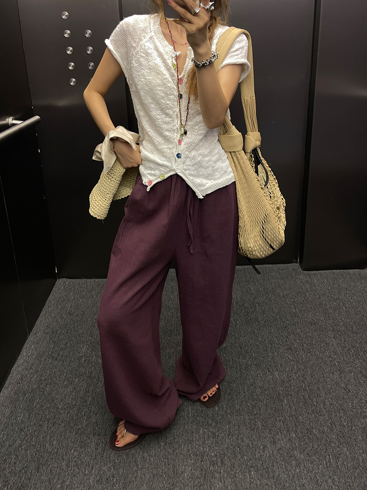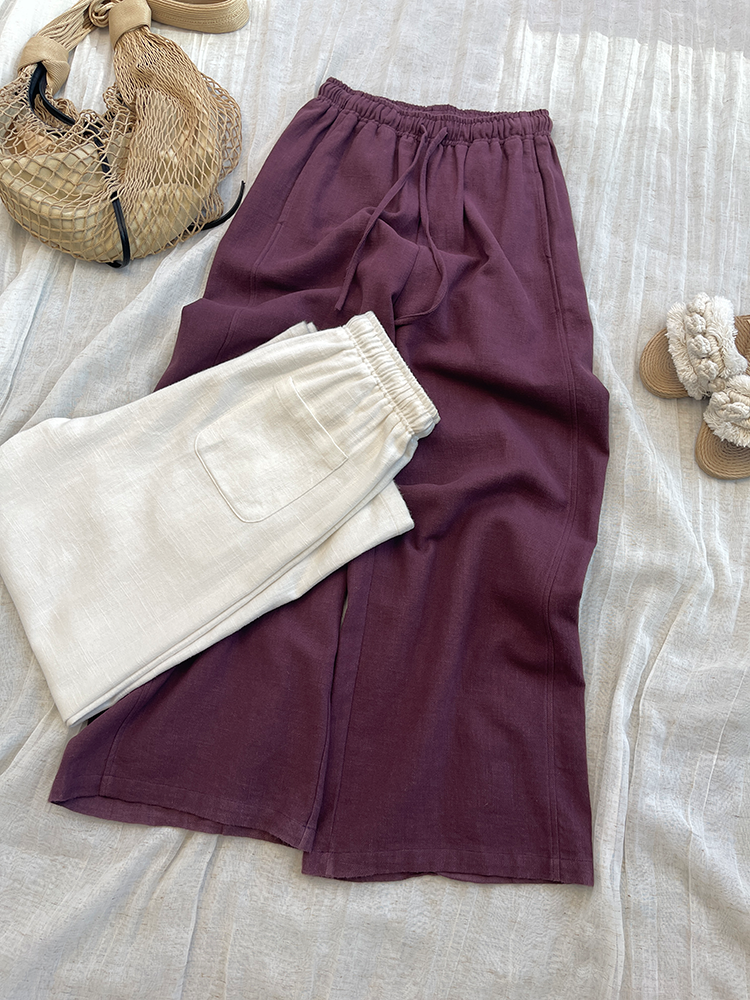 *o-ha-you*【FLCT2701】王炸褲型限季返場苧麻棉大直筒褲側縫線往前挪挪顯瘦直筒鬆緊腰亞麻褲-2色-如有需要請先諮詢