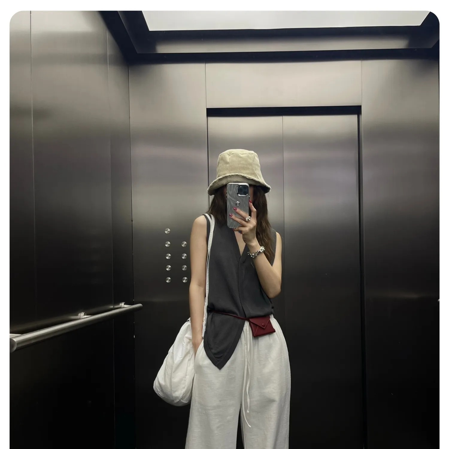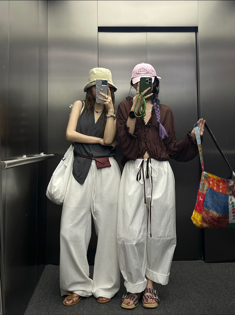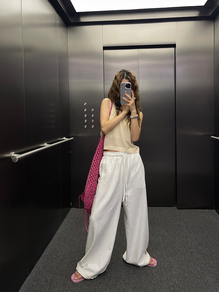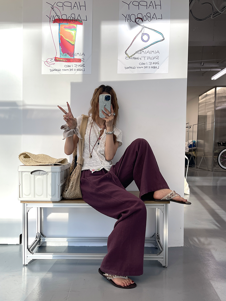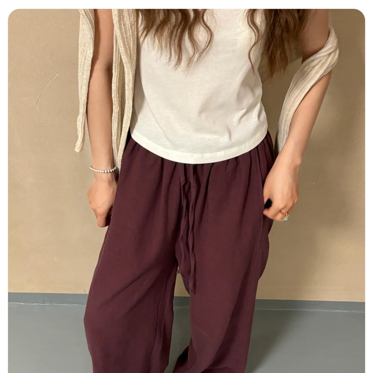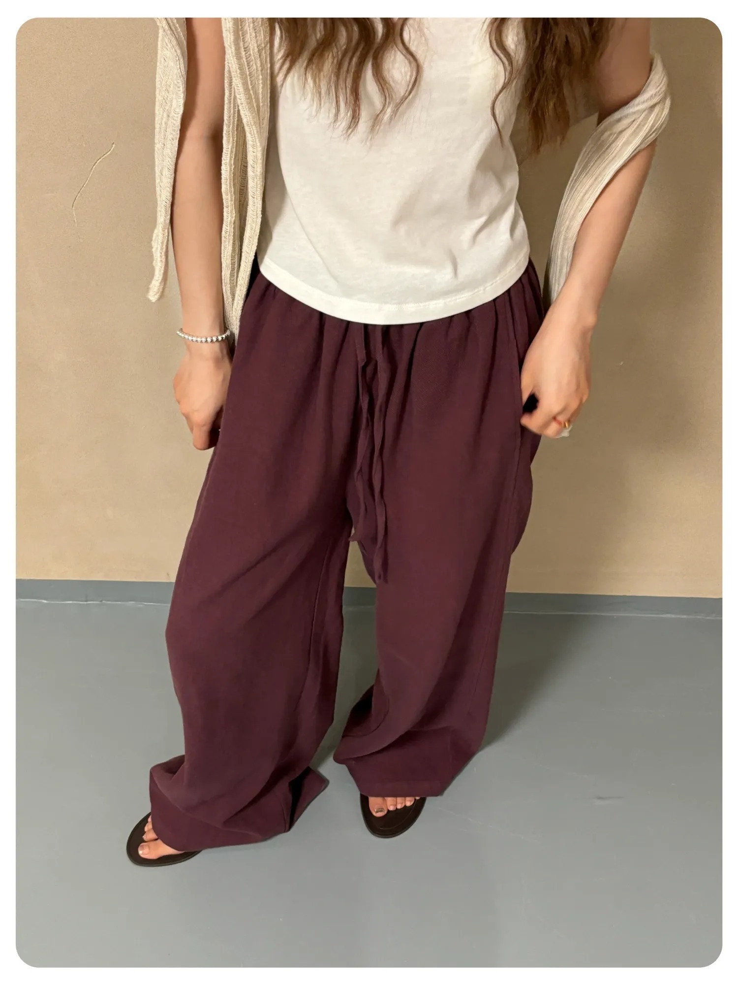 *o-ha-you*【FLCT2701】王炸褲型限季返場苧麻棉大直筒褲側縫線往前挪挪顯瘦直筒鬆緊腰亞麻褲-2色-如有需要請先諮詢