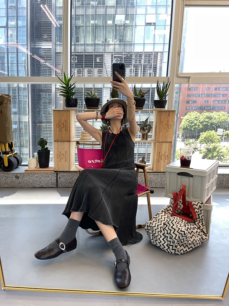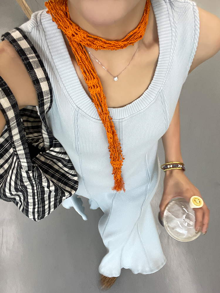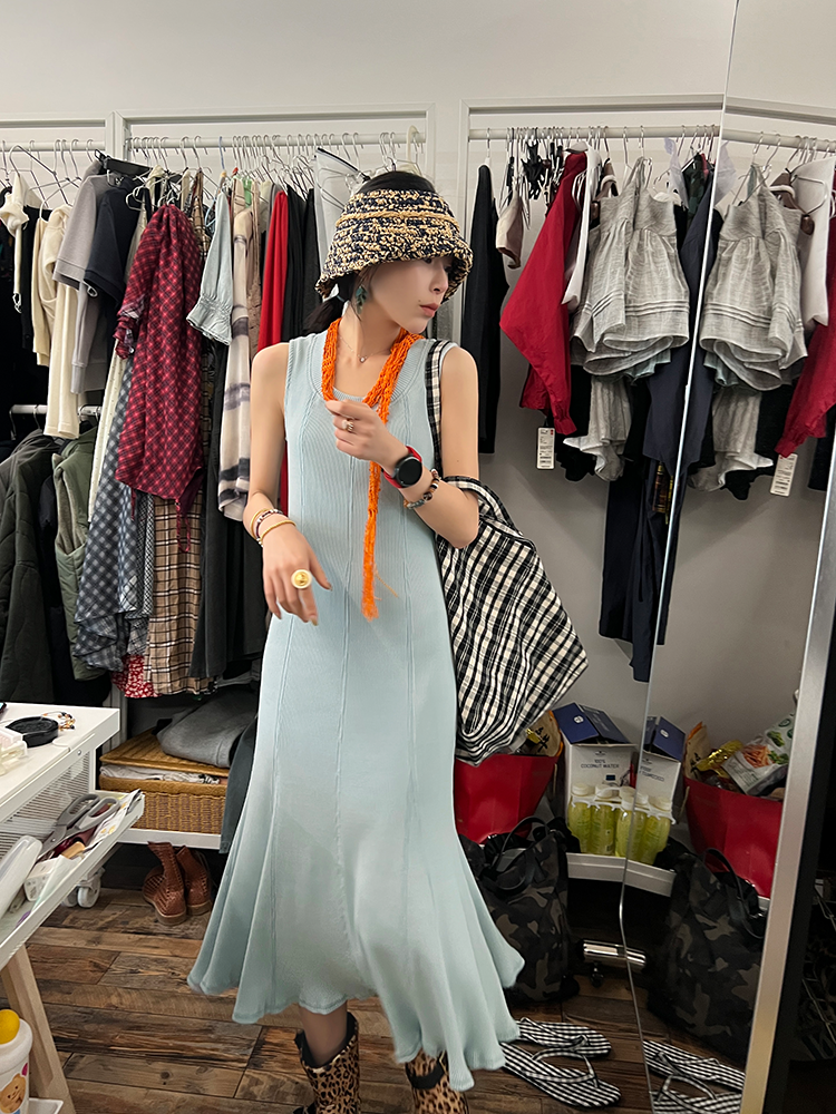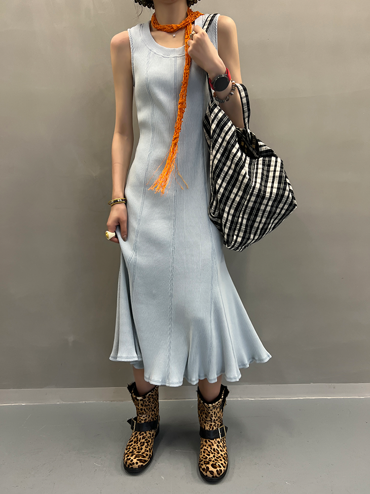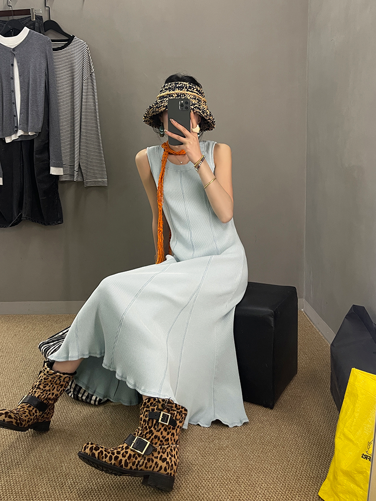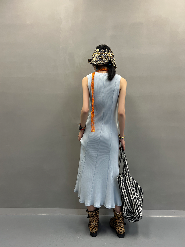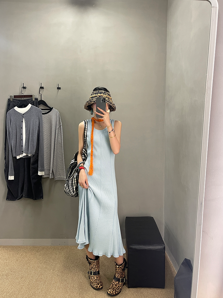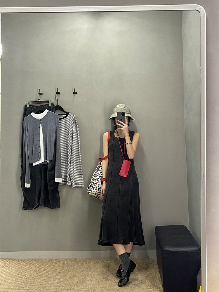 *o-ha-you*【FLCT2718】微彈髒洗魚尾連衣裙! 2025夏季新款氣質時尚顯瘦無袖背心裙長裙洋裝-2色-黑灰色L有現貨