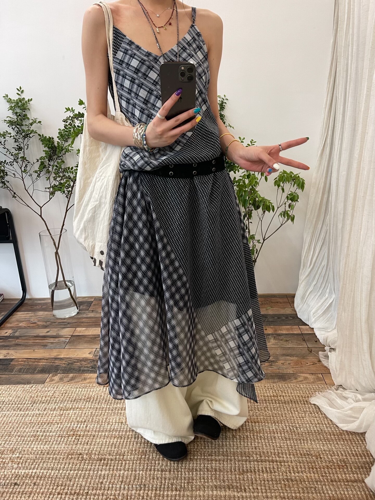 *o-ha-you*【FLCT2729】絕版><隱藏限量款~時髦er女孩的b備吊帶連身裙! 30D喬其紗斜裁定位數碼印拼接格連衣裙洋裝-2色~下單後盡力搶~搶不到別怪我-如有需要請先諮詢