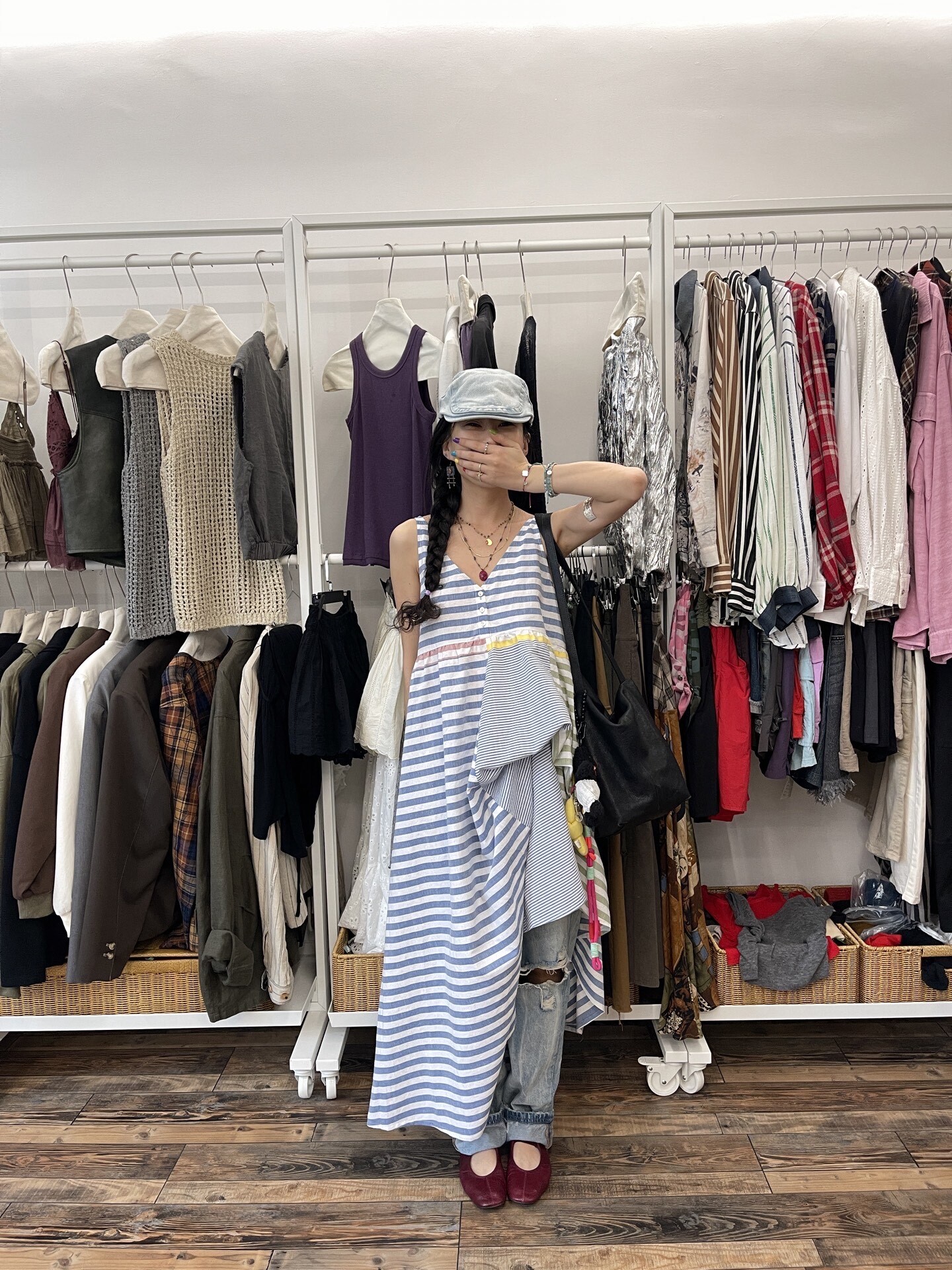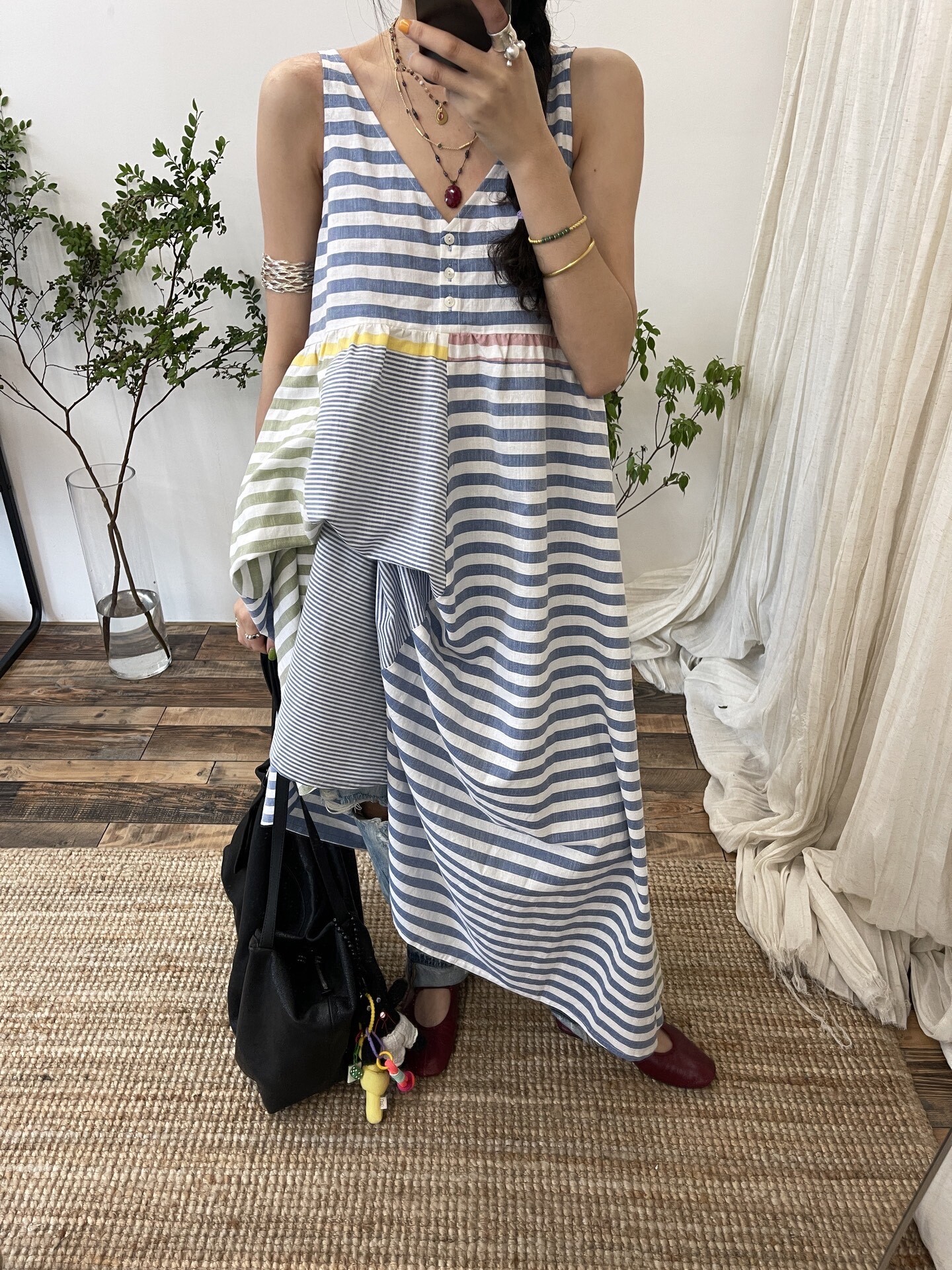 *o-ha-you*【FLCT2730】絕版><隱藏限量款~前後兩穿背心條紋拼接洋裝!一眼過夏天的顏色11片撞色定位拼接連衣裙洋裝~下單後盡力搶~搶不到別怪我-如有需要請先諮詢