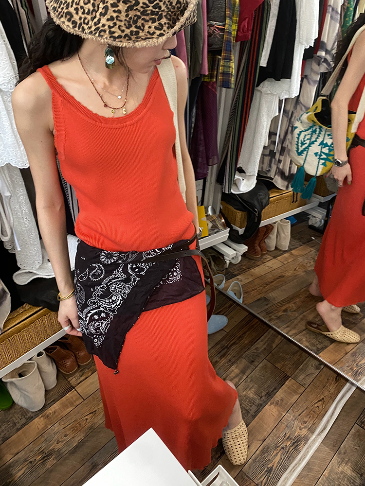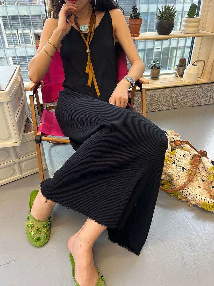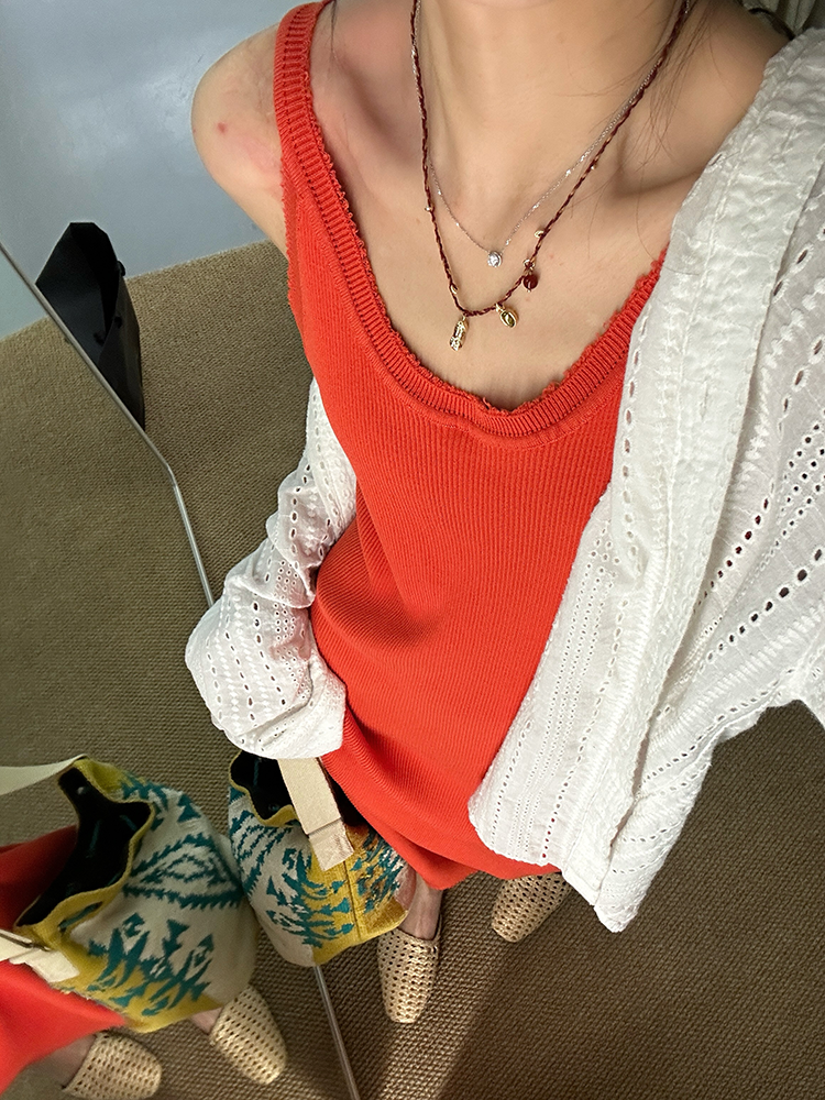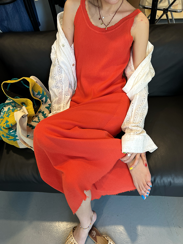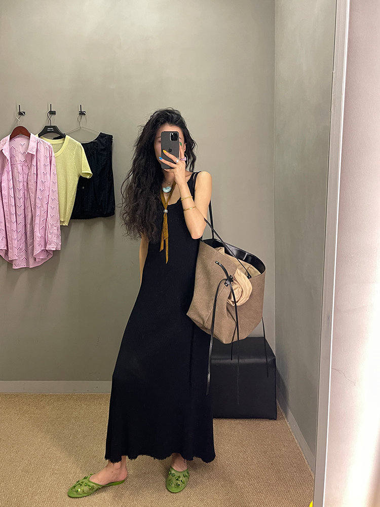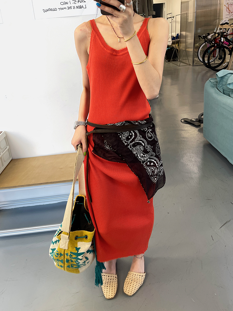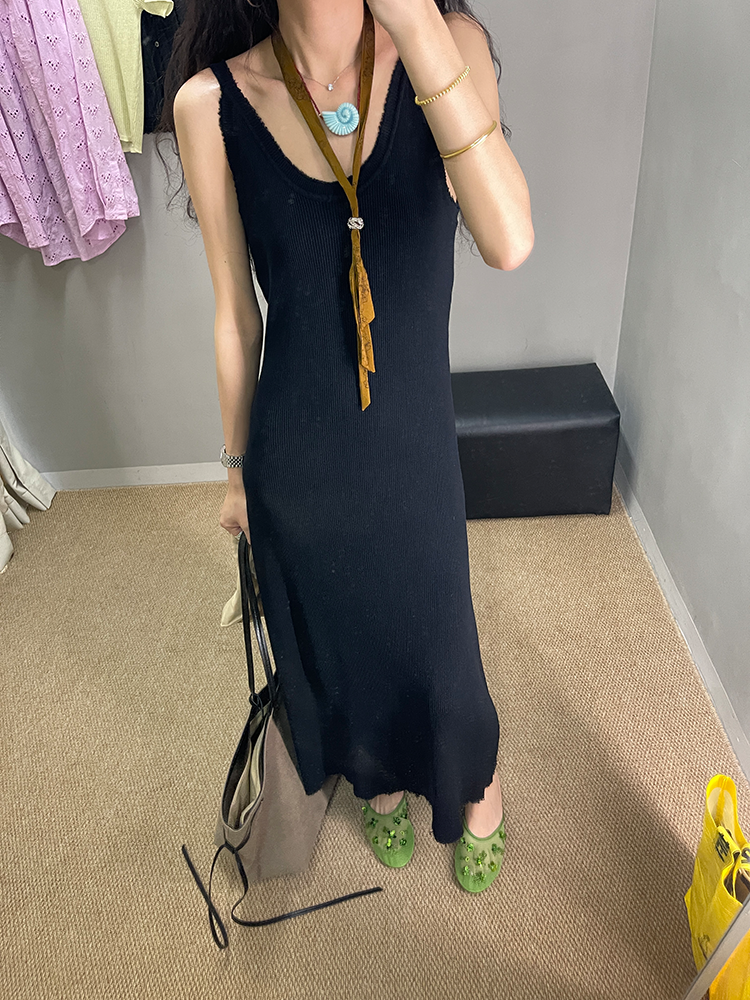 *o-ha-you*【FLCT2733】吊帶連衣裙夏季2025新款氣質長裙高級感顯瘦針織收腰無袖A字裙洋裝-2色-橘色M有現貨