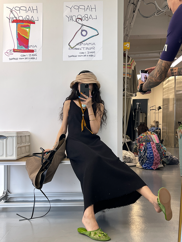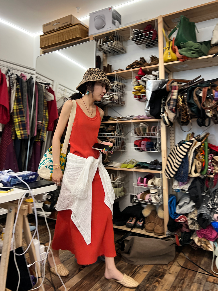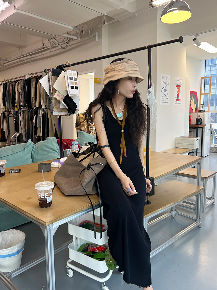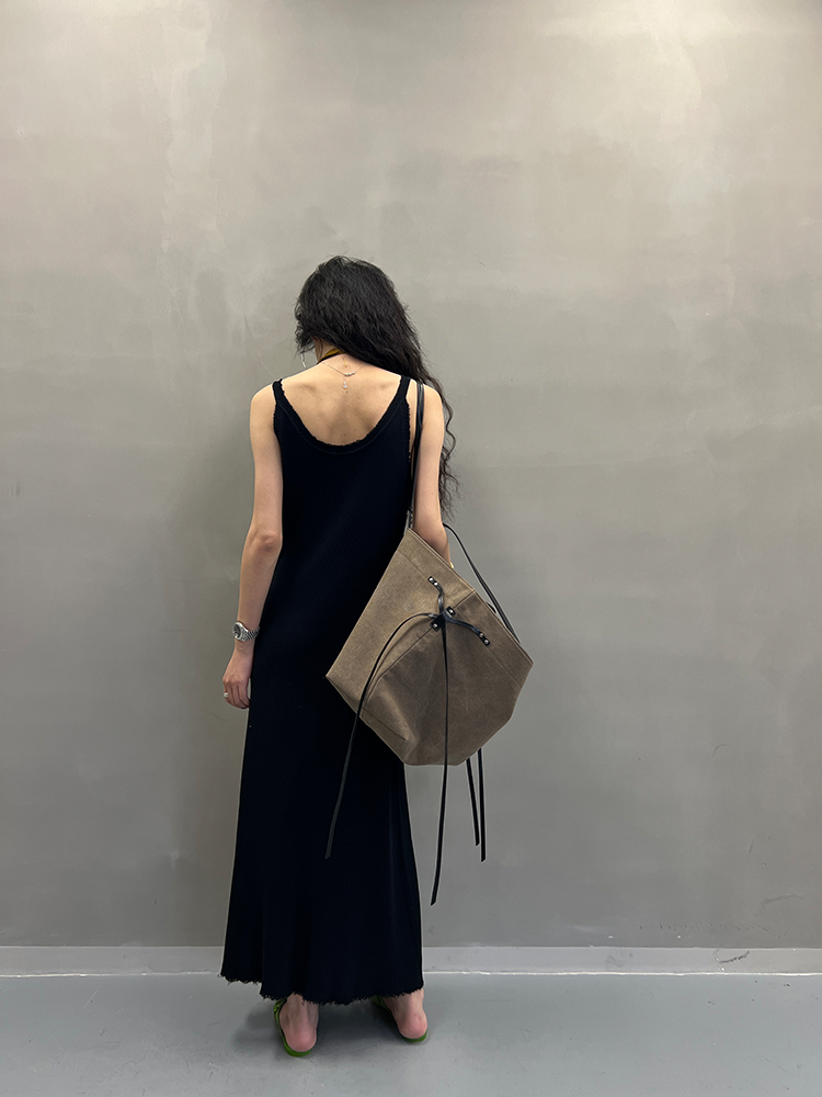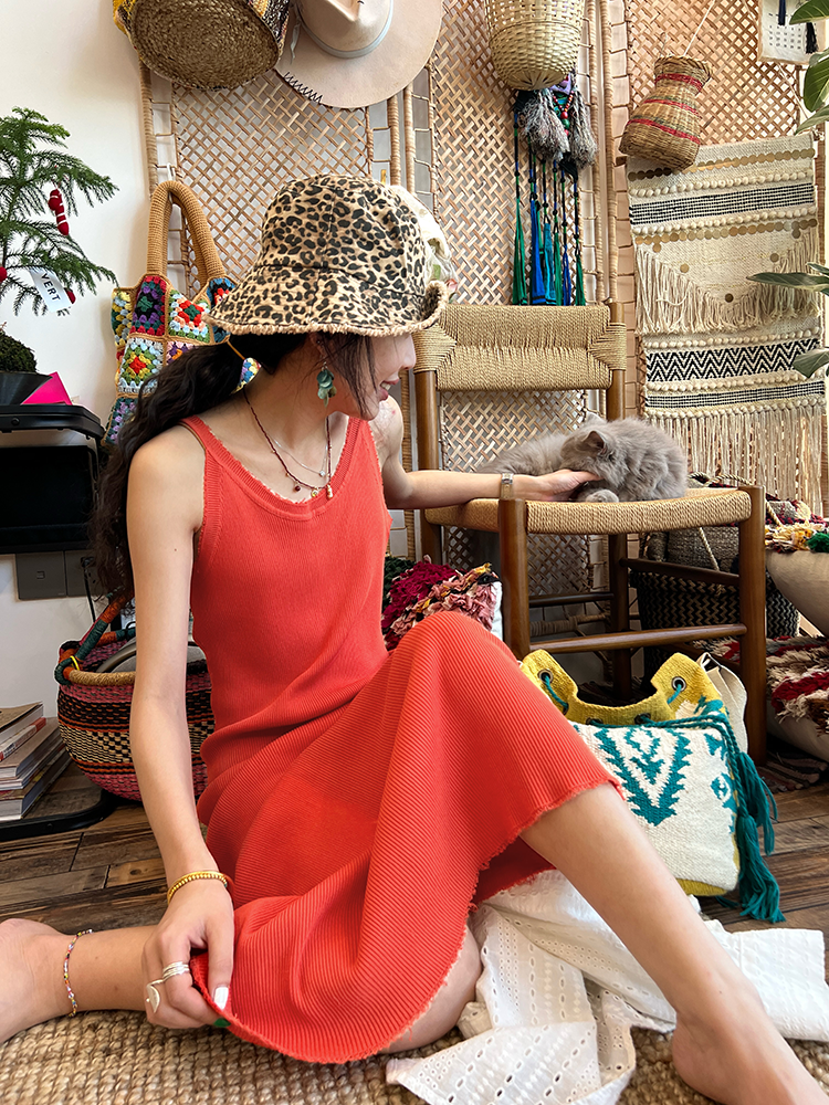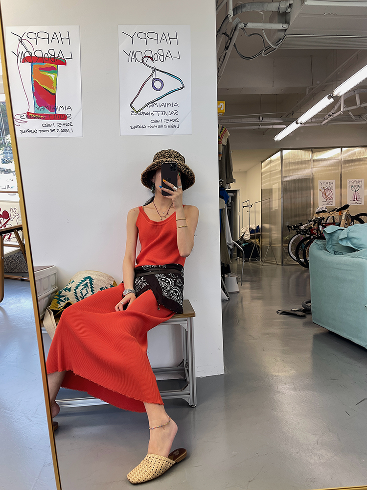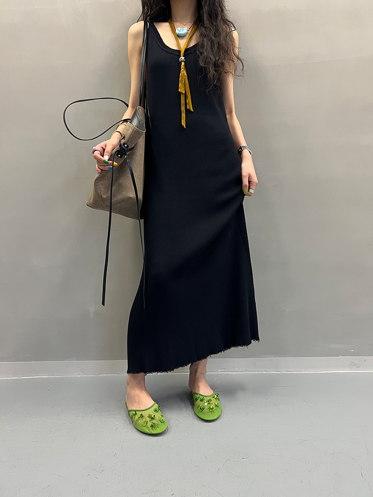 *o-ha-you*【FLCT2733】吊帶連衣裙夏季2025新款氣質長裙高級感顯瘦針織收腰無袖A字裙洋裝-2色-橘色M有現貨