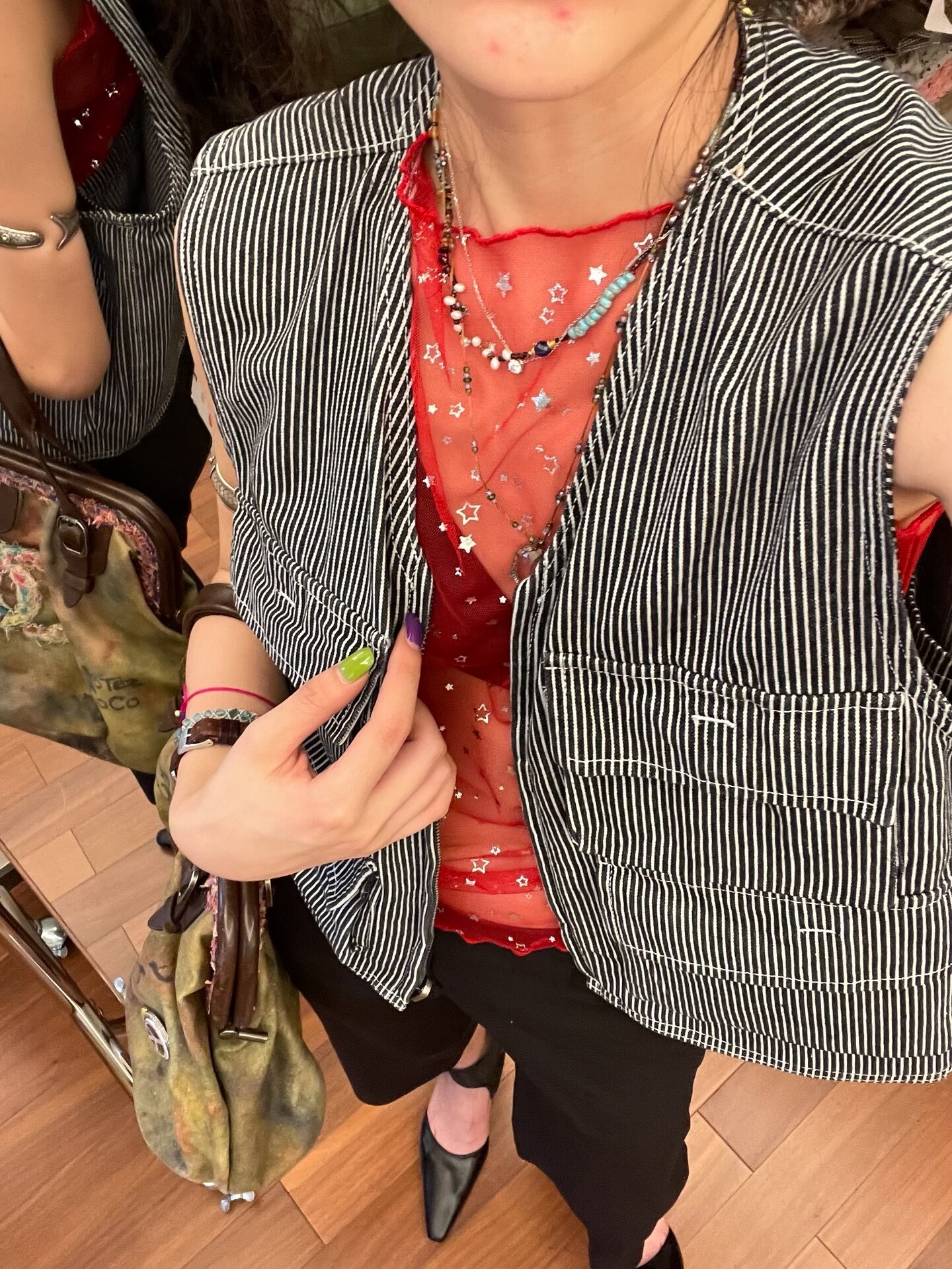 *o-ha-you*【FLCT2744】絕版><隱藏限量款~4季百搭雙面穿工裝條紋牛仔馬甲背心!疊穿玩家閉眼入舒適圈d全能單品~下單後盡力搶~搶不到別怪我-如有需要請先諮詢
