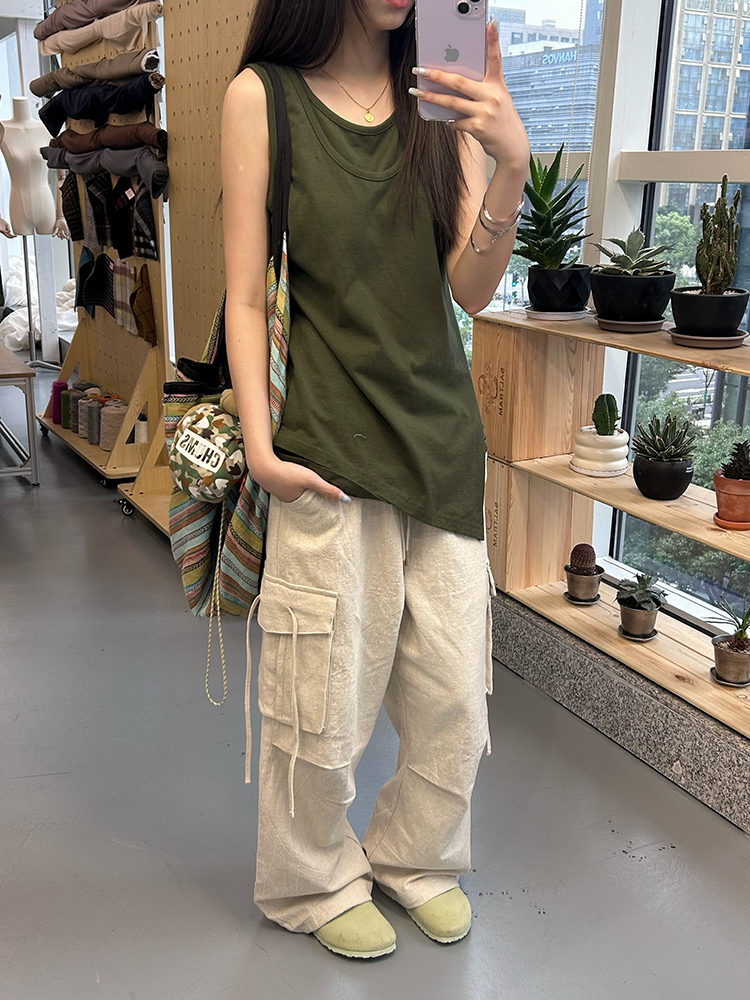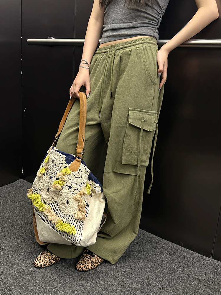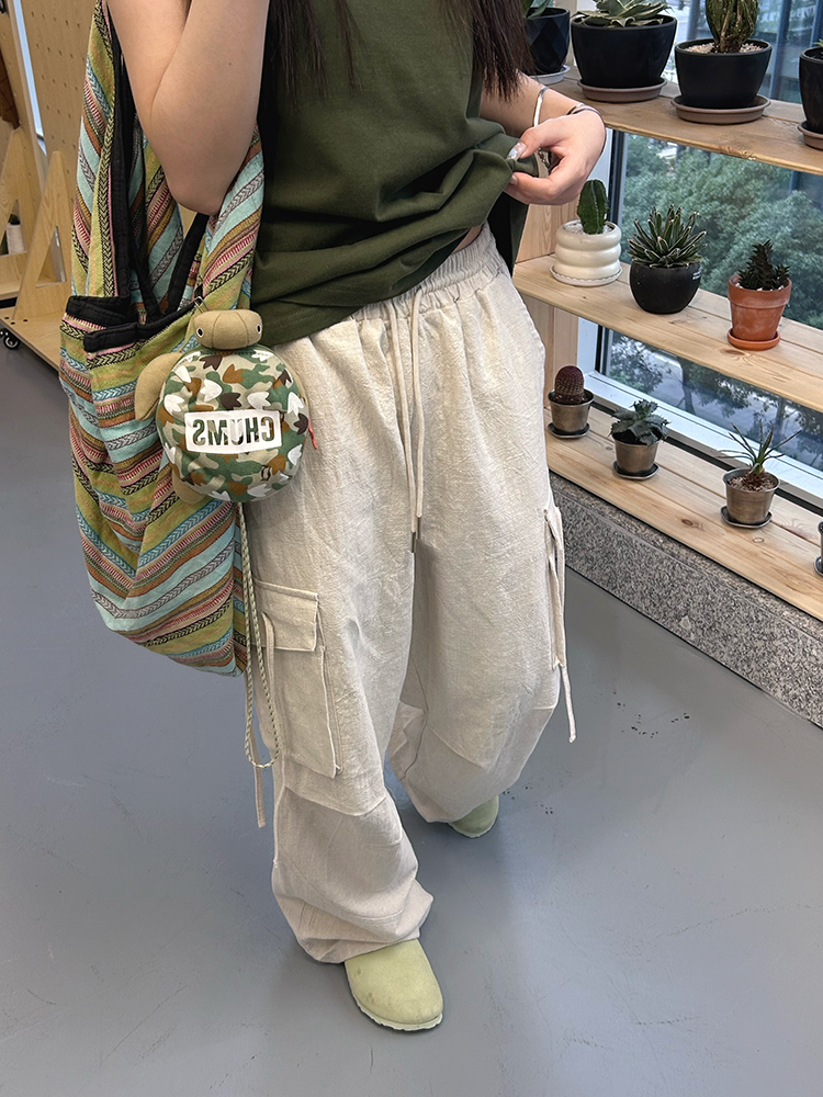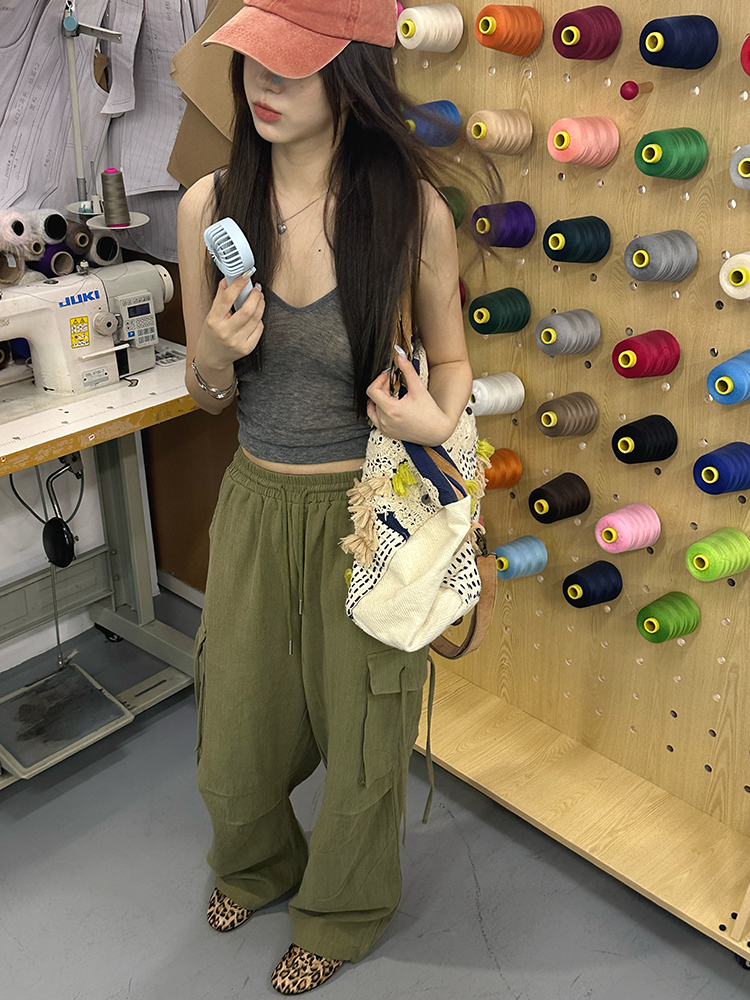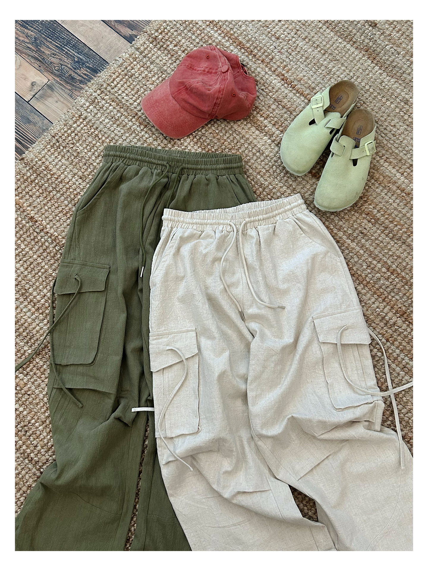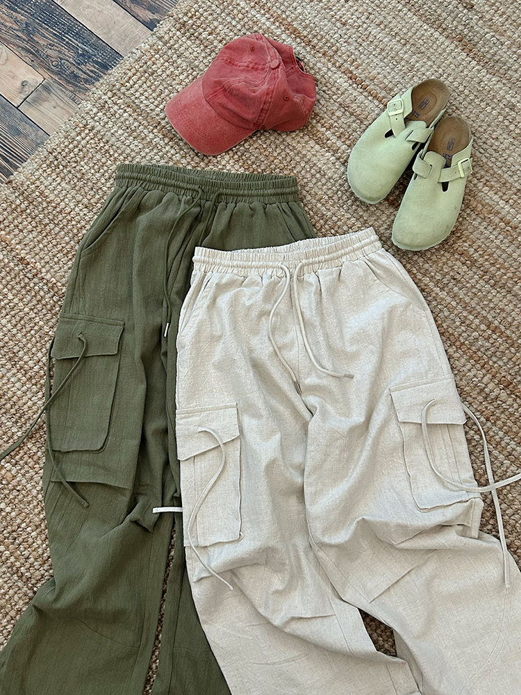 *o-ha-you*【FLCT2753】苧麻多袋寬鬆工裝褲-2色-如有需要請先諮詢