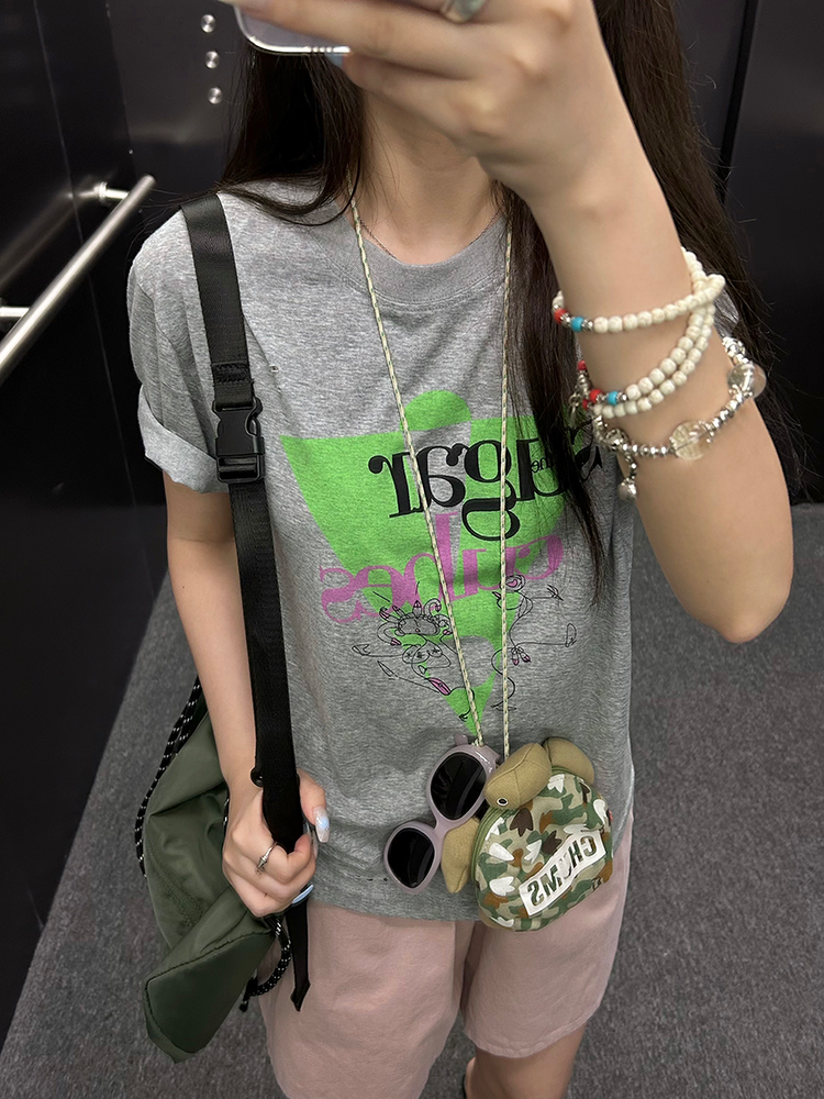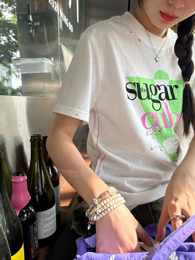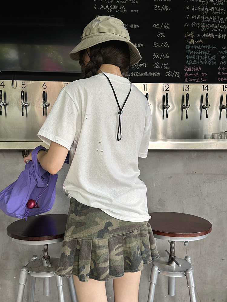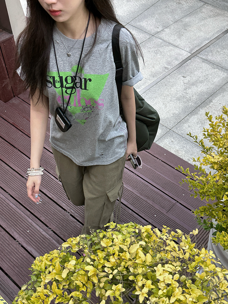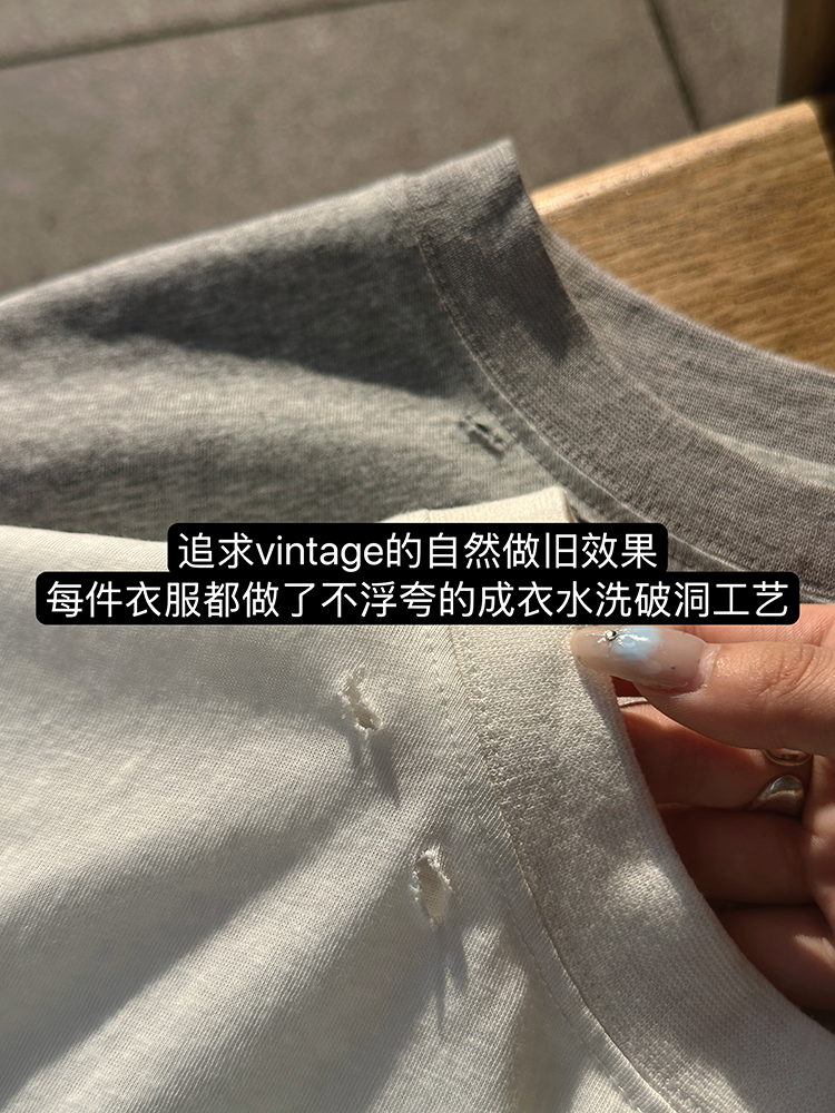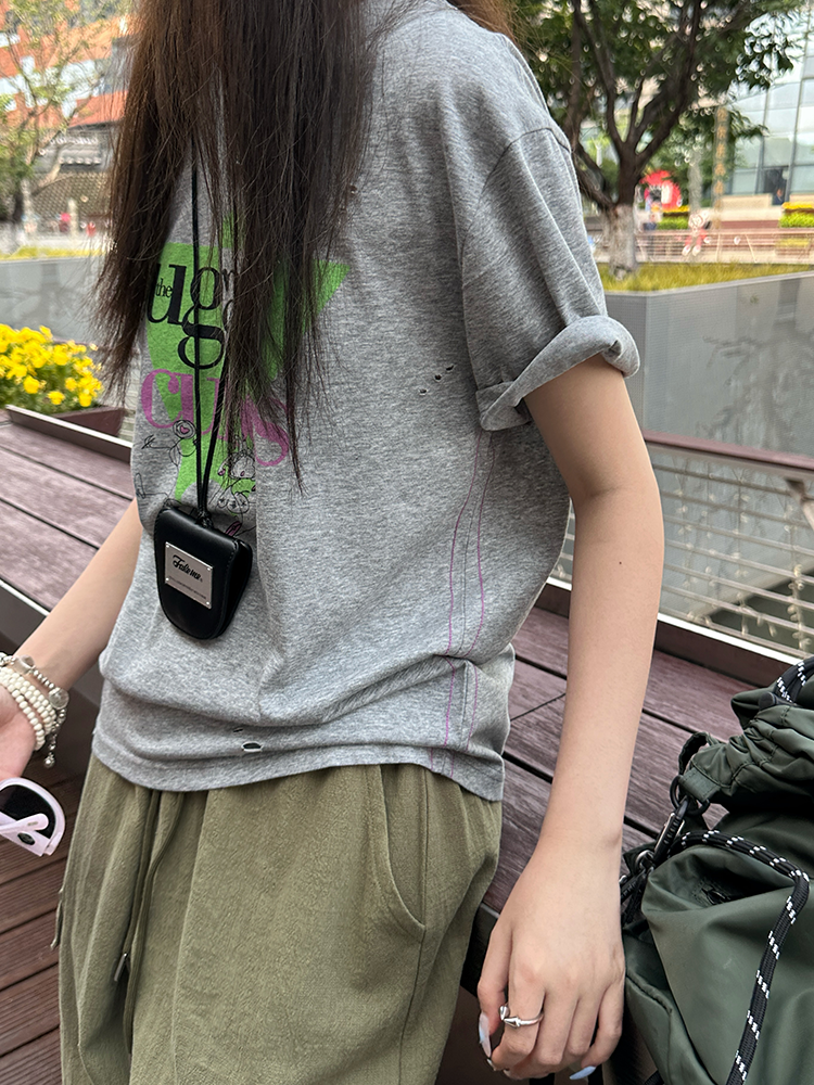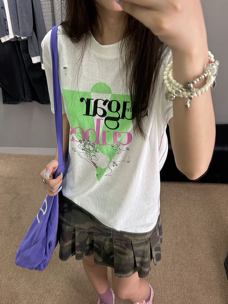 *o-ha-you*【FLCT2754】倒三角破洞印花T恤-2色-如有需要請先諮詢