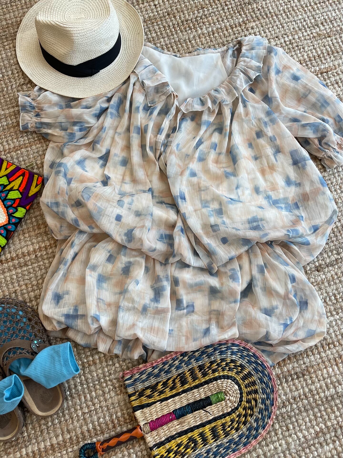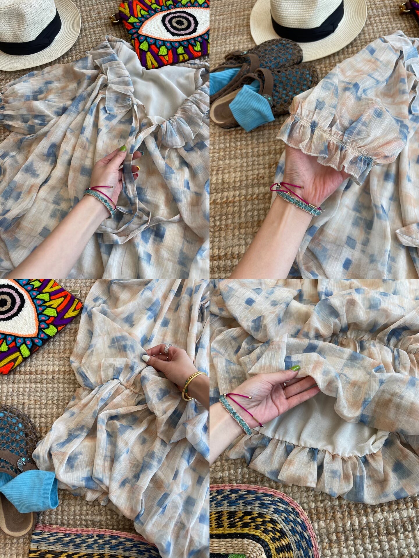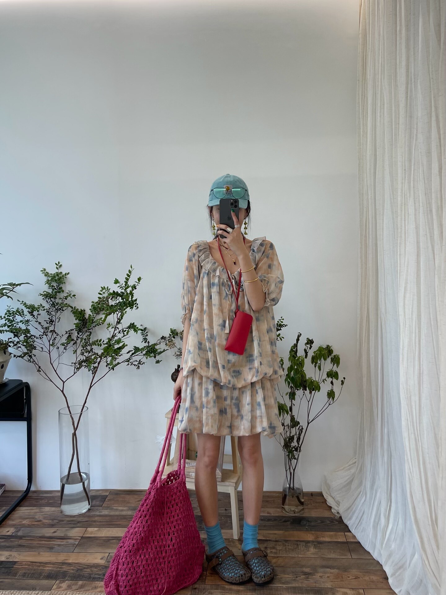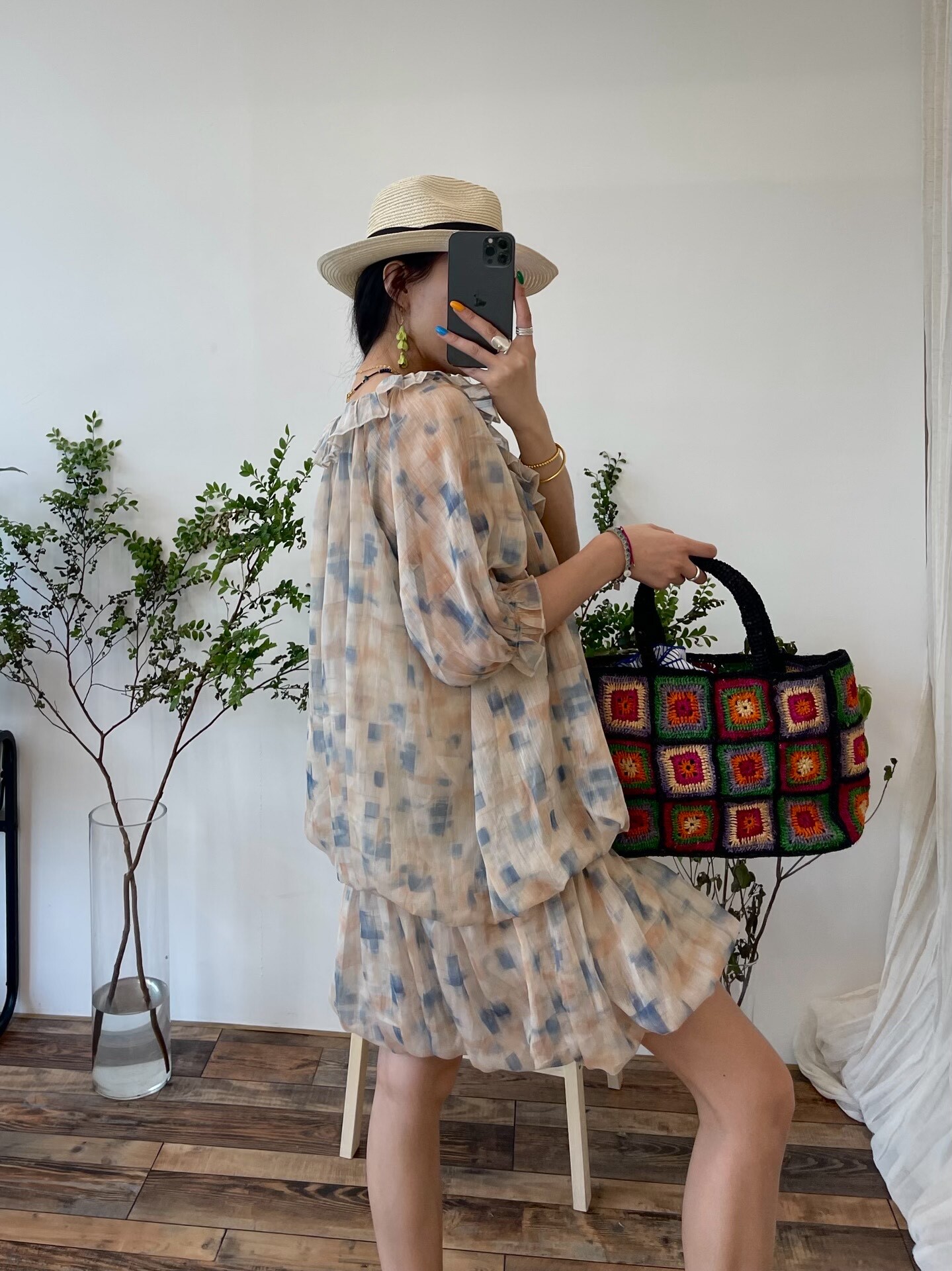 *o-ha-you*【FLCT2755】隱藏限量款~荷葉邊連衣裙洋裝可做上衣!訂製雪紡印花有輕盈感整體重工顏色顯白-~下單後盡力搶~搶不到別怪我