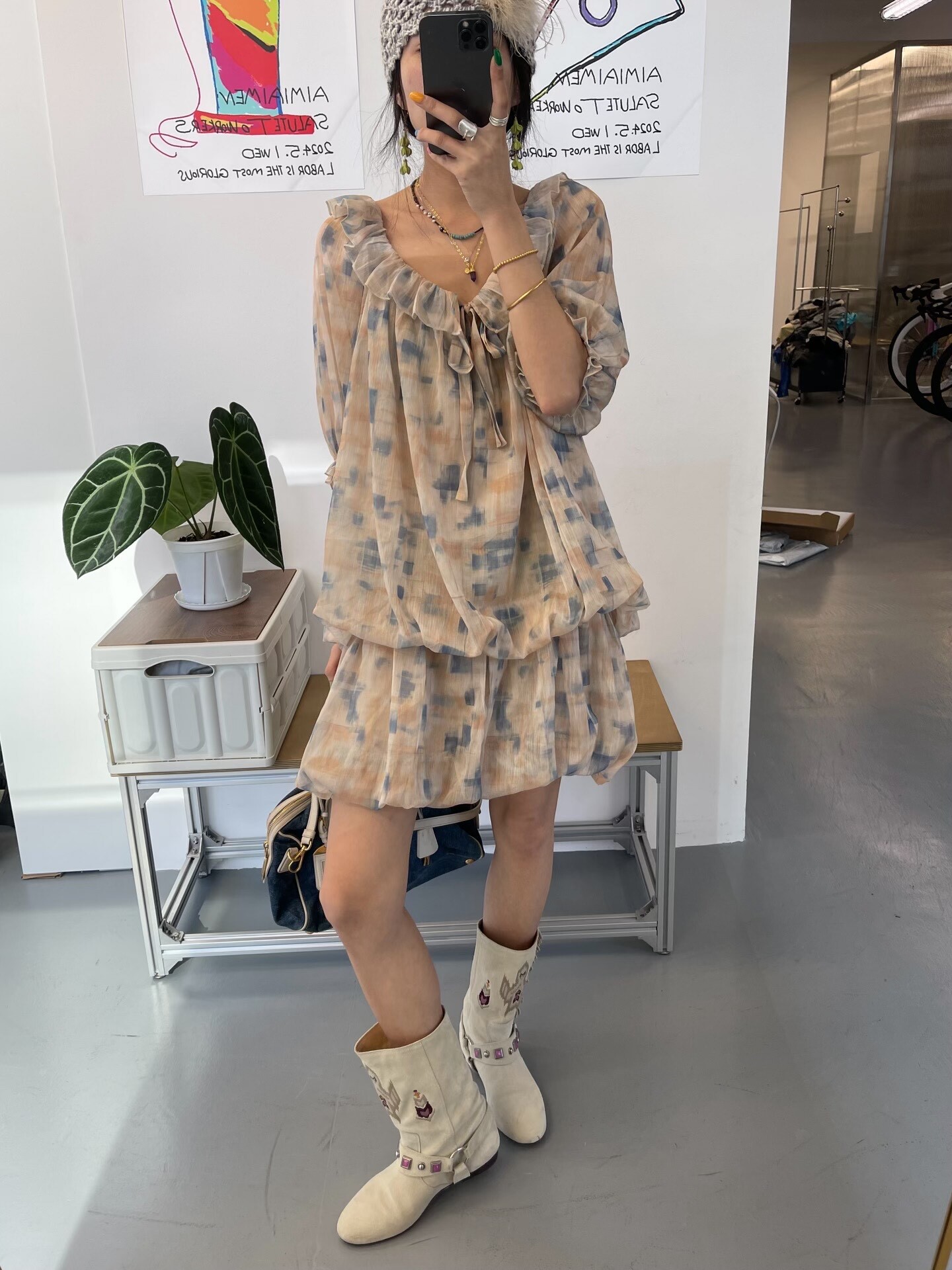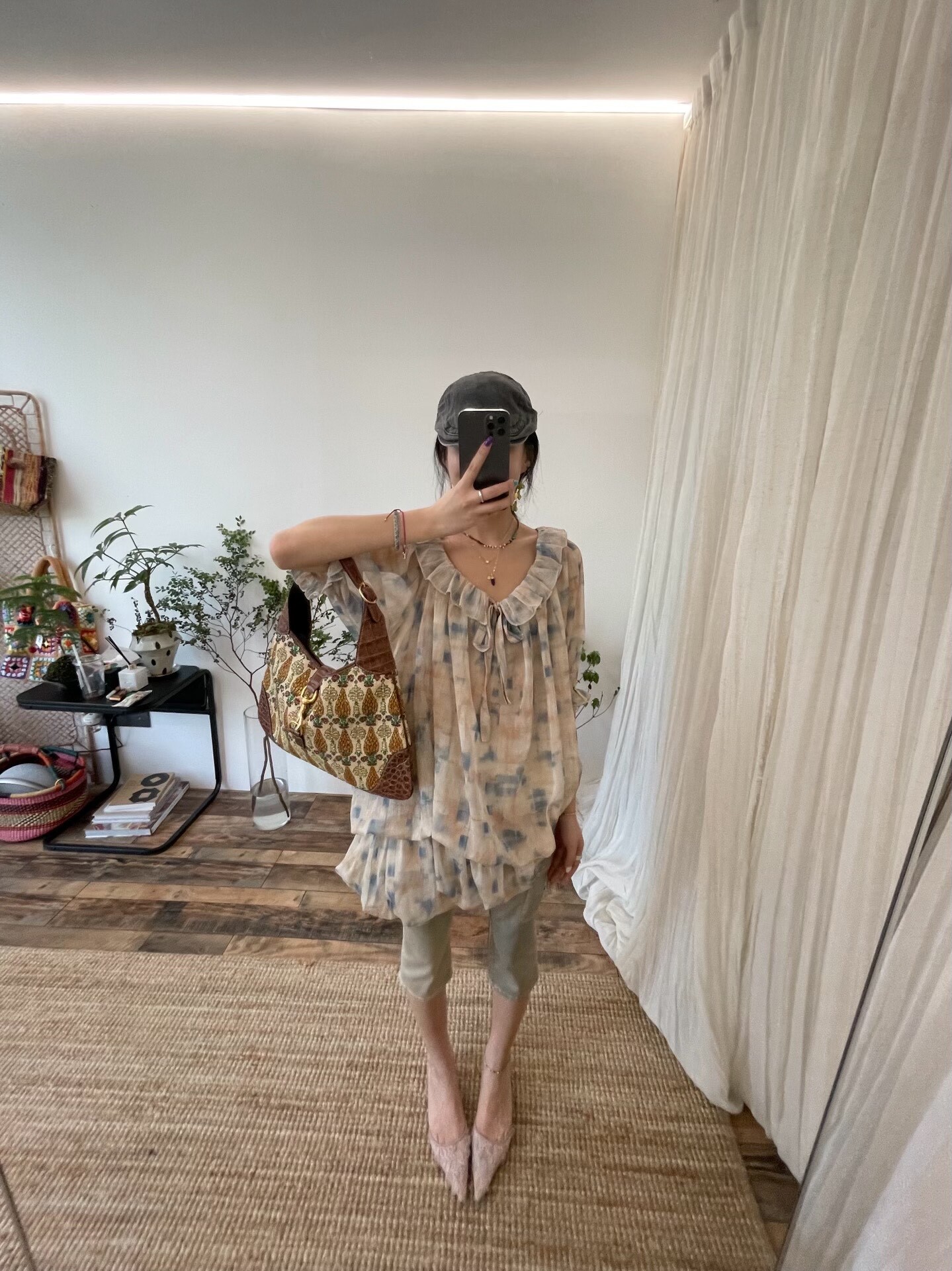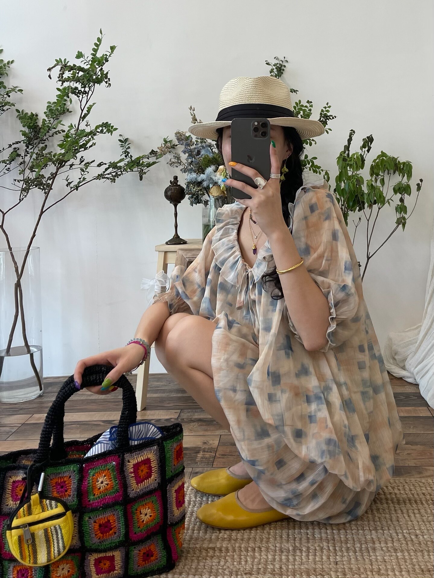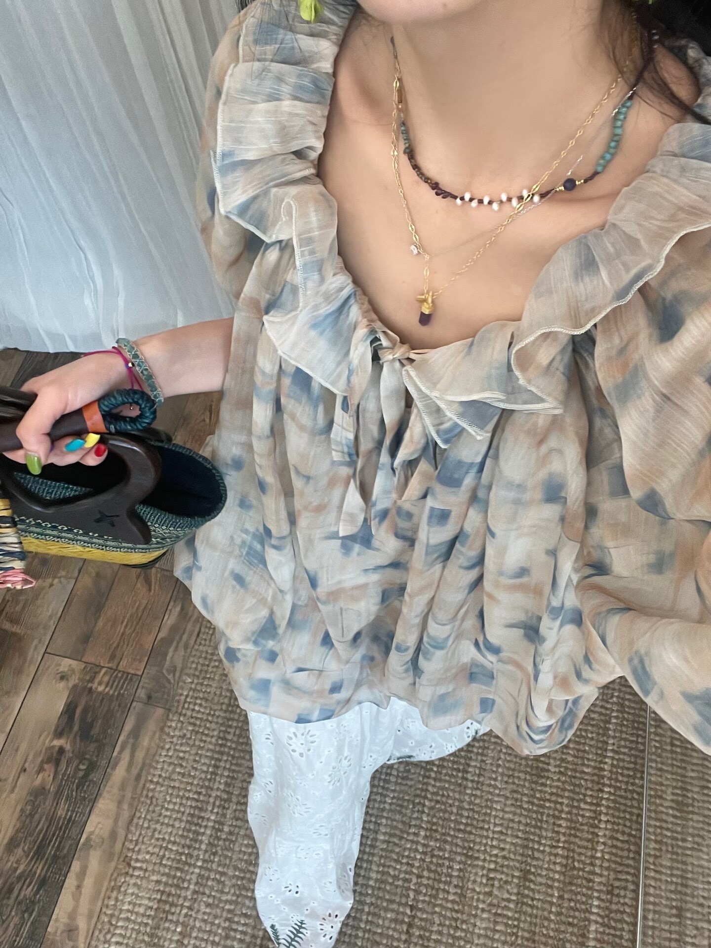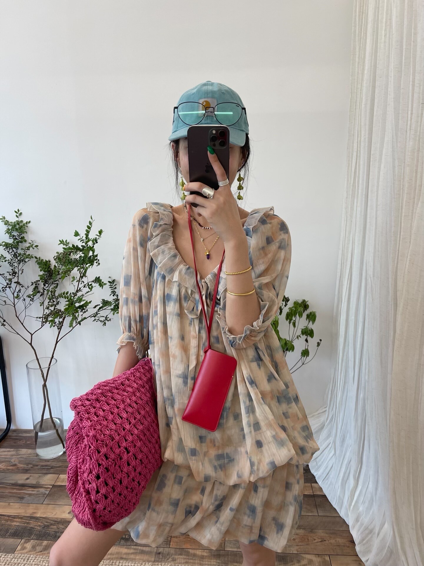 *o-ha-you*【FLCT2755】隱藏限量款~荷葉邊連衣裙洋裝可做上衣!訂製雪紡印花有輕盈感整體重工顏色顯白-~下單後盡力搶~搶不到別怪我