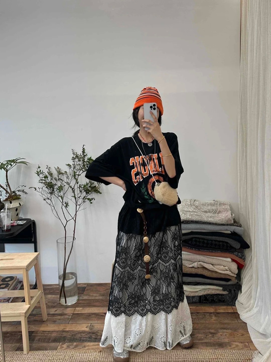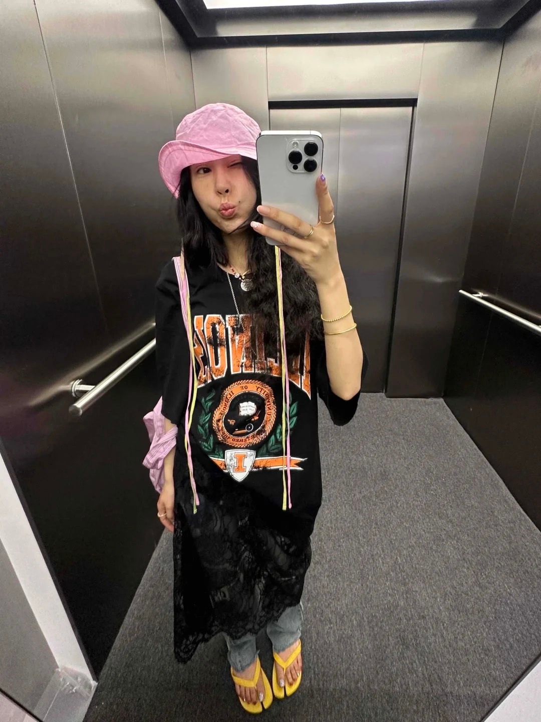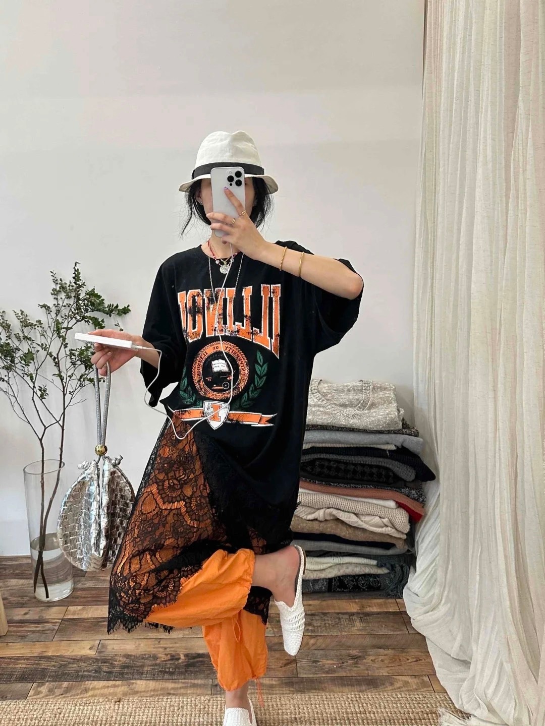 *o-ha-you*【FLCT2783】隱藏限量款~蕾絲短袖拼接連衣裙!重工水洗有破邊old school風印花可做屁簾er洋裝-2色~白色有現貨~下單後盡力搶~搶不到別怪我