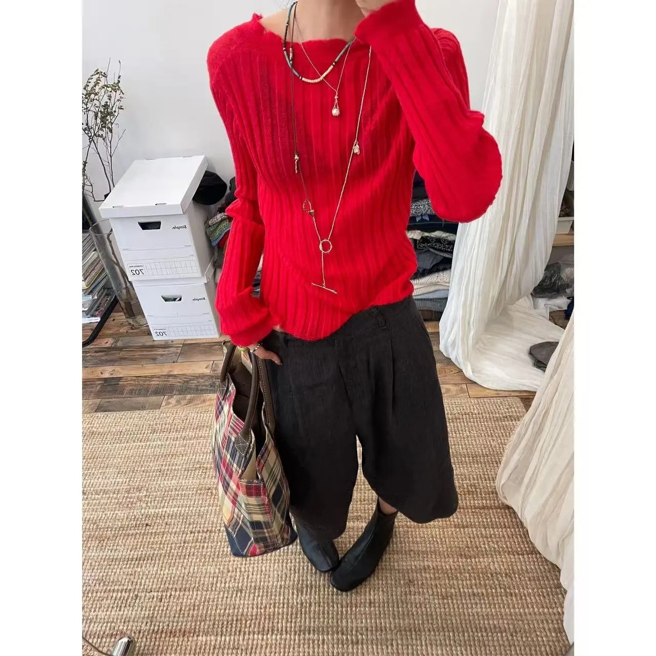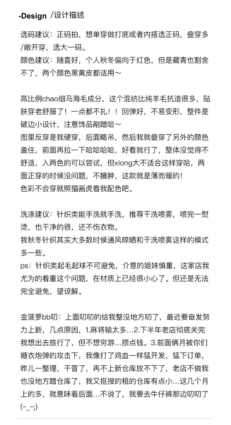 高比例chao細馬海毛成分,這個混紡比純羊毛抗造很多,貼膚穿老舒服了!一點都不札! !回彈好,不易變形,整件是破邊小設計,注意飾品剮蹭哈~