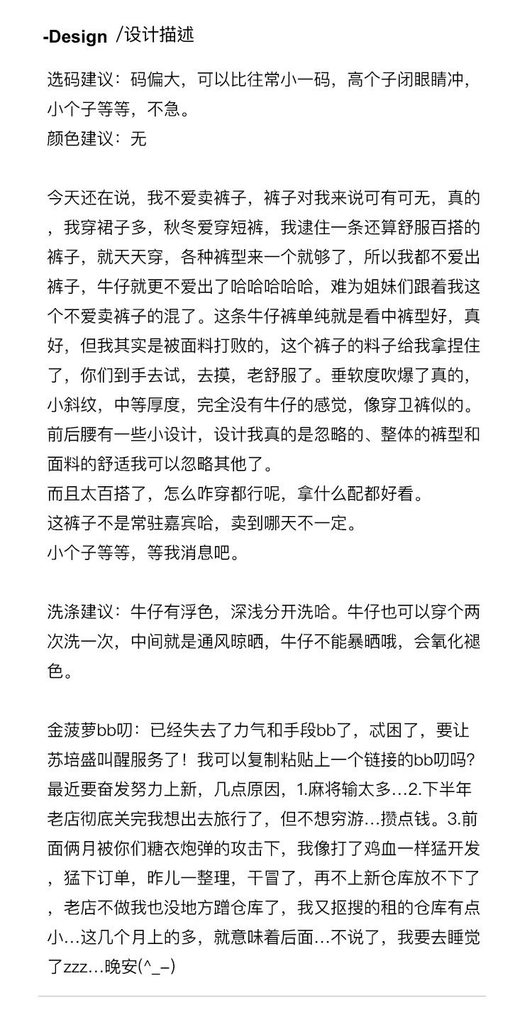 今天還在說,我不愛賣褲子,褲子對我來說可有可無,真的,我穿裙子多,秋冬愛穿短褲,我不愛出褲子,牛仔就天天穿,各種褲型來一個就夠了,所以我都不愛出褲子,牛仔就不愛出賣了哈哈哈,更為姐妹們跟著我這個不愛出了。這條牛仔褲單純就是看中褲型好,真好,但我其實是被布料打敗的,這個褲子的料子給我拿捏住了,你們到手去試,去摸,老舒服了。垂軟度吹爆了真的,小斜紋,中等厚度,完全沒有牛仔的感覺,像穿衛褲似的。