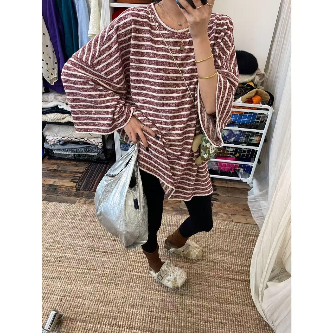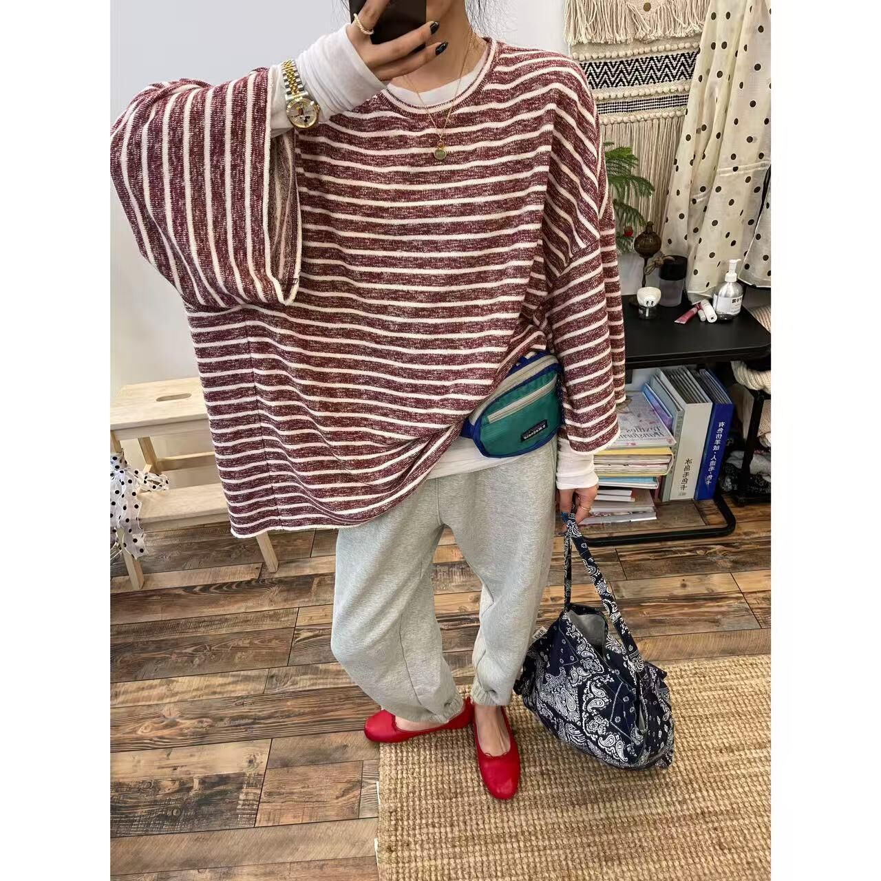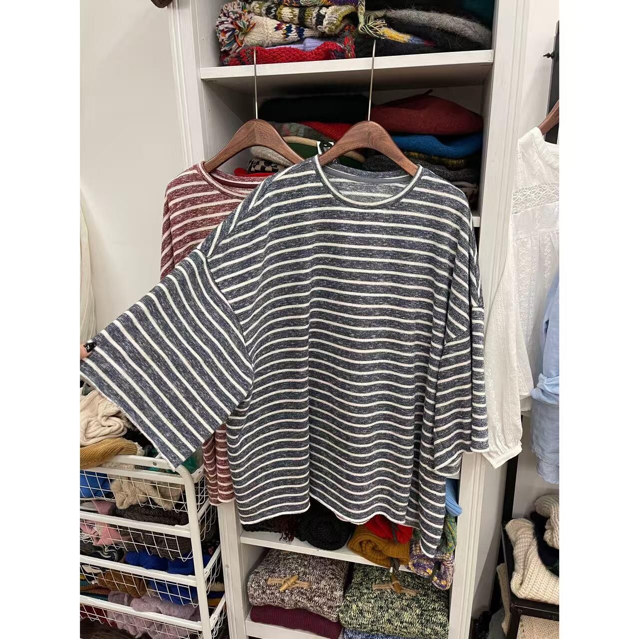*o-ha-you*【FLCT2796】隱藏限量款~私心愛版型!百搭寬鬆休閒日常舒適穿著就走毛圈條紋大大大衛衣-2色~下單後盡力搶~搶不到別怪我