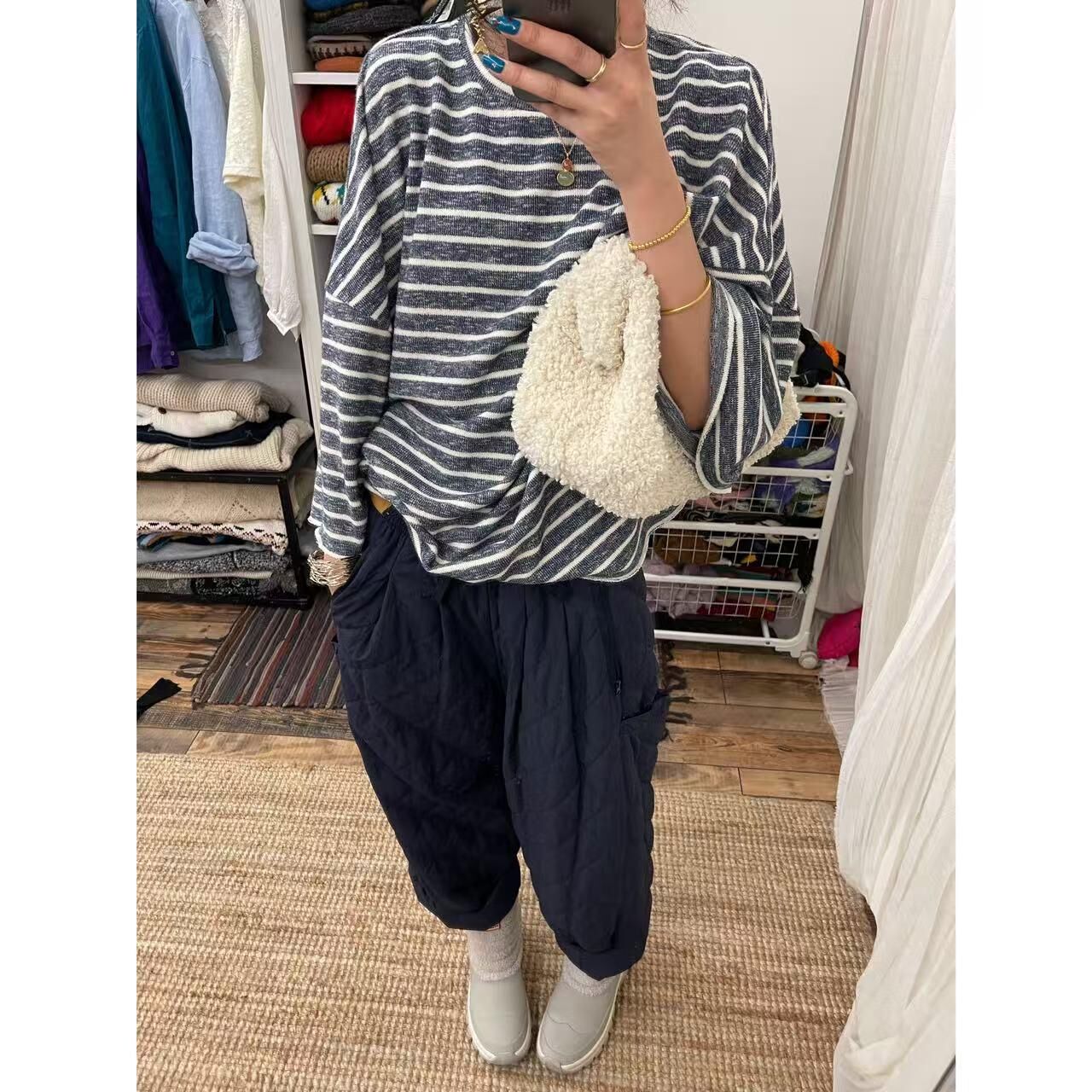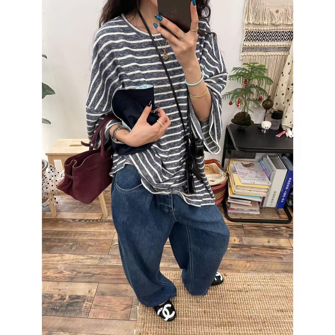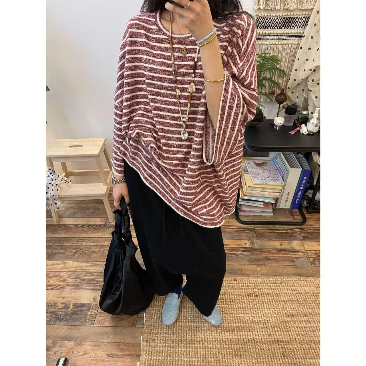 *o-ha-you*【FLCT2796】隱藏限量款~私心愛版型!百搭寬鬆休閒日常舒適穿著就走毛圈條紋大大大衛衣-2色~下單後盡力搶~搶不到別怪我