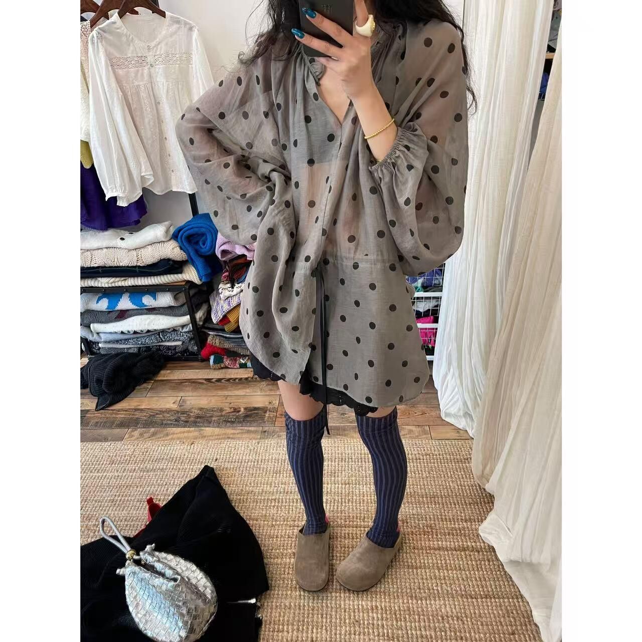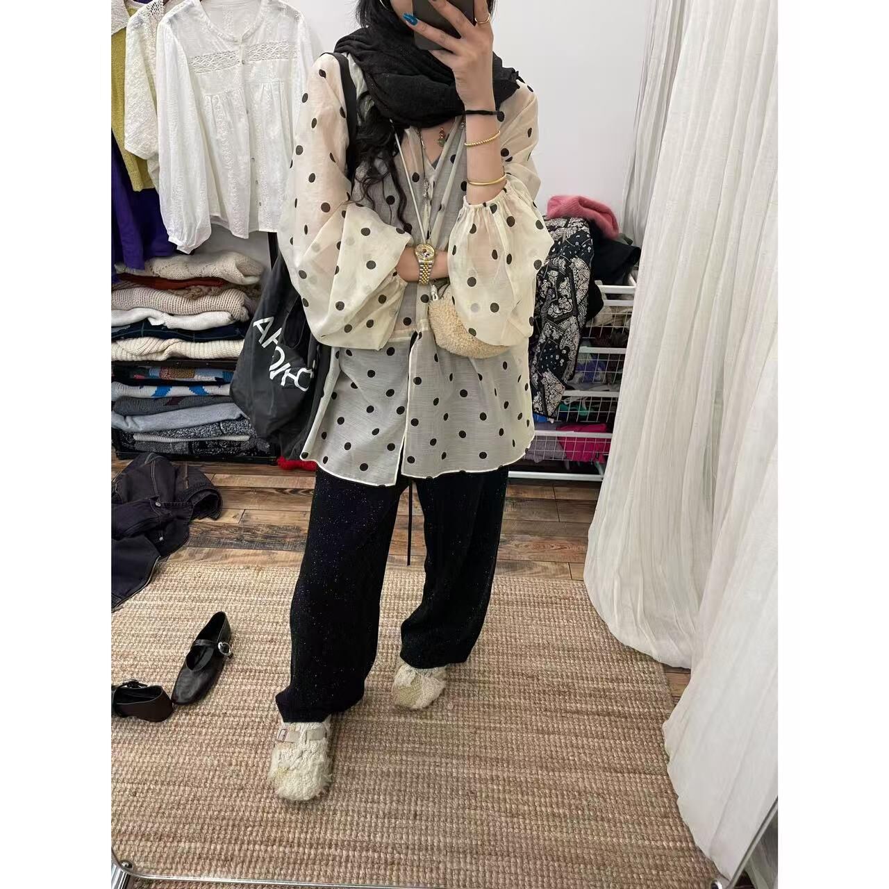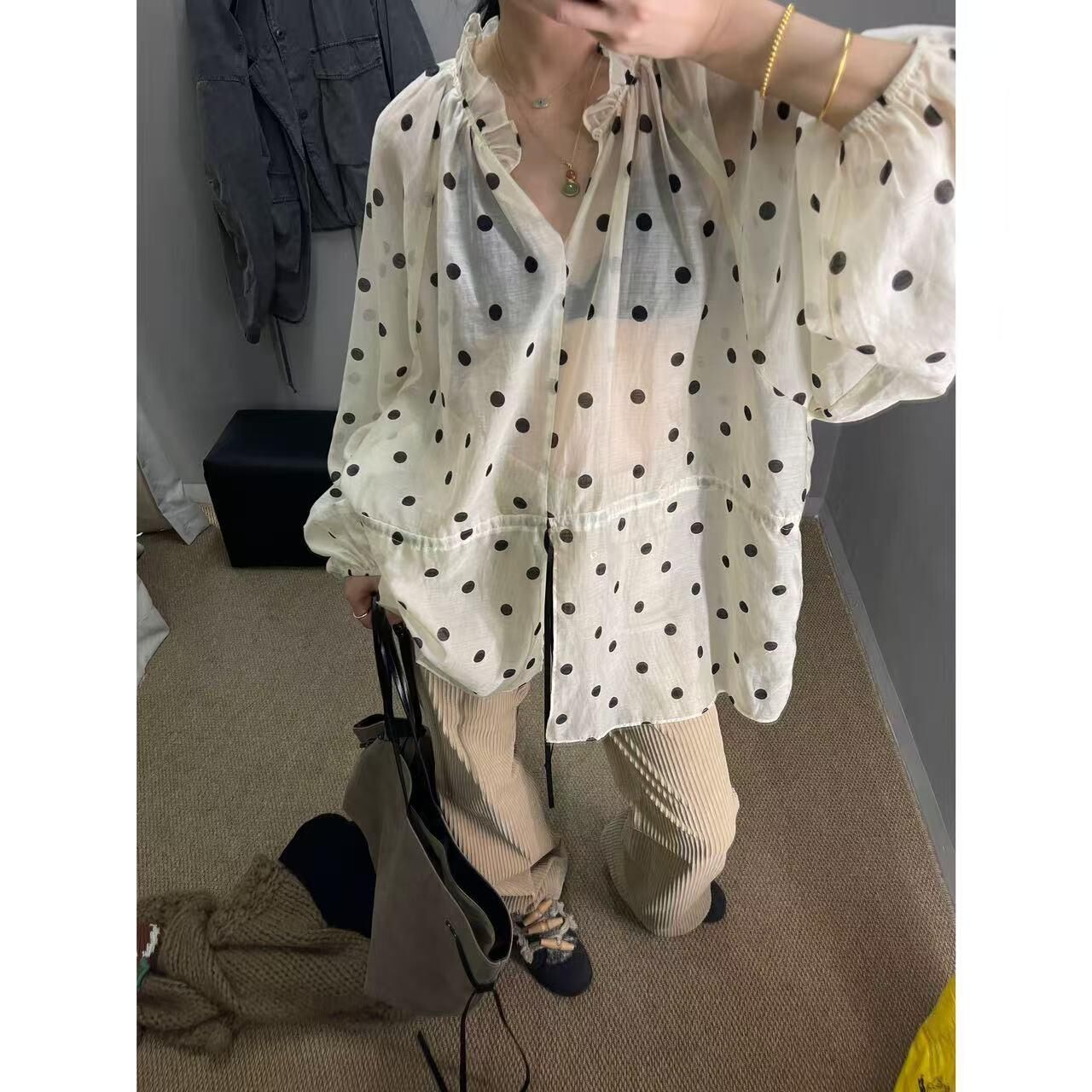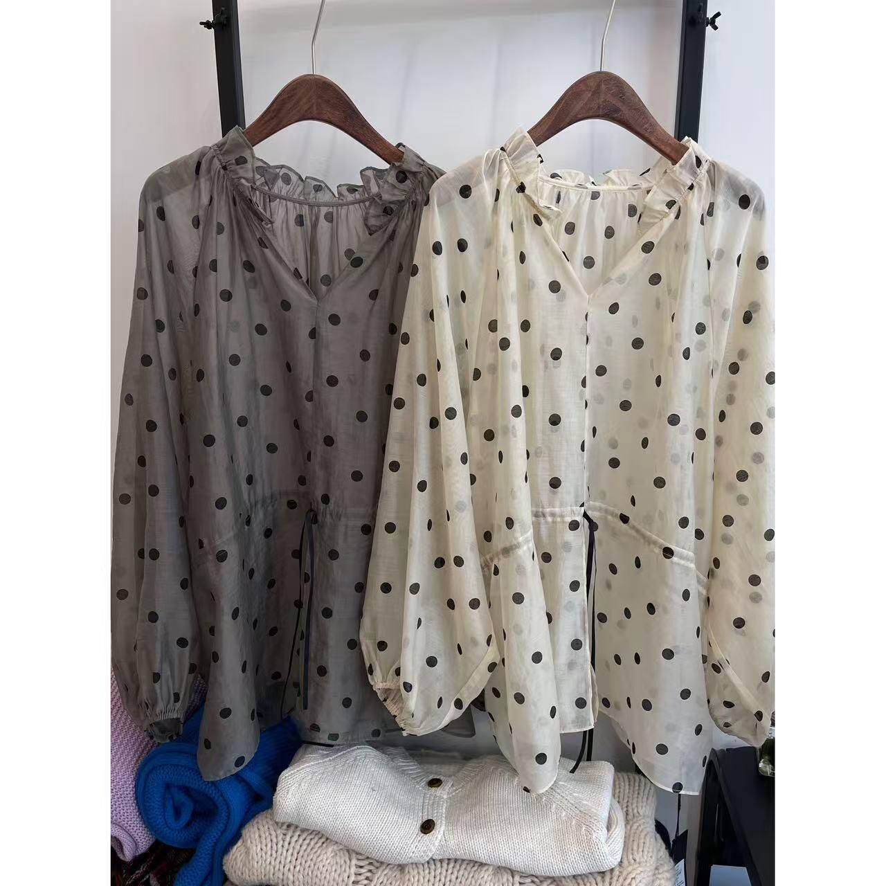 *o-ha-you*【FLCT2799】隱藏限量款~實品真的很美~有點捨不得釋出-時髦er精緻外穿內搭都可的波點衫!寬鬆百搭氣質風雪紡上衣-2色-現貨