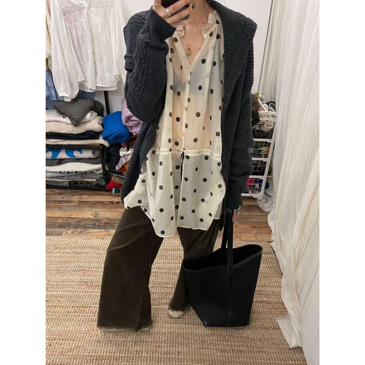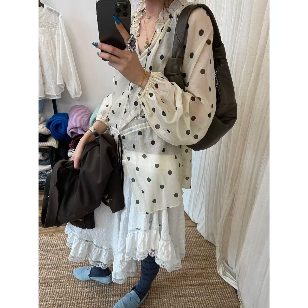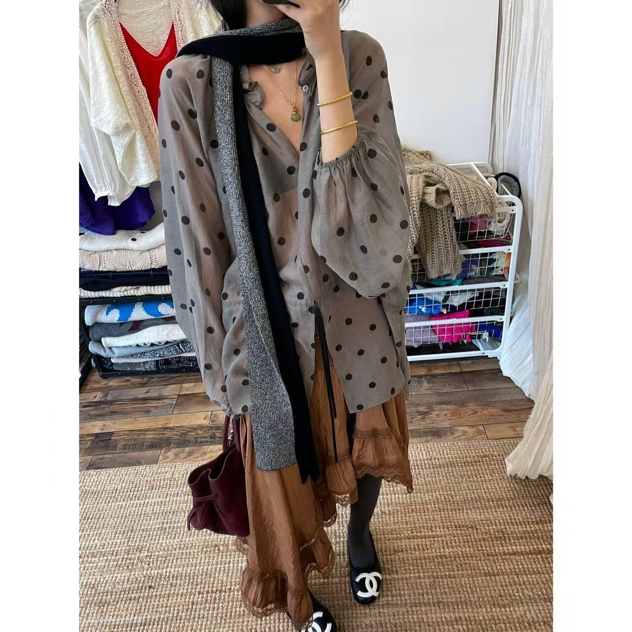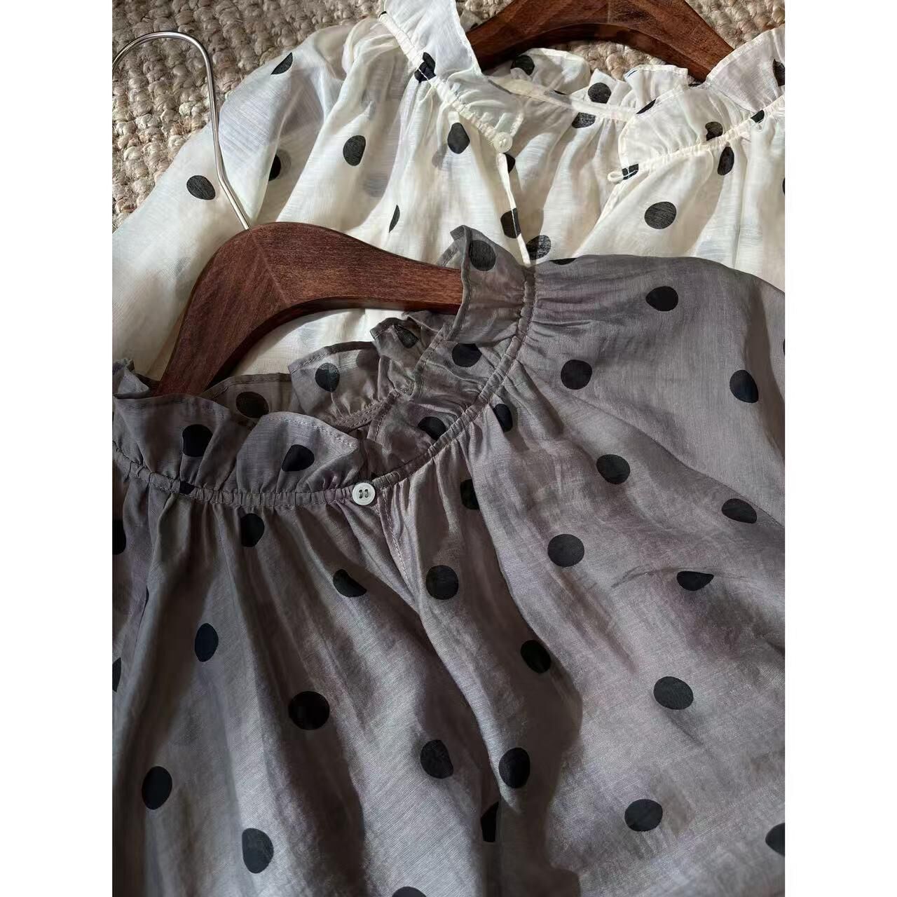 *o-ha-you*【FLCT2799】隱藏限量款~實品真的很美~有點捨不得釋出-時髦er精緻外穿內搭都可的波點衫!寬鬆百搭氣質風雪紡上衣-2色-現貨