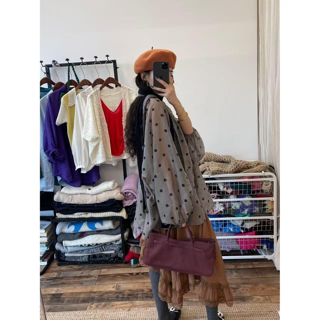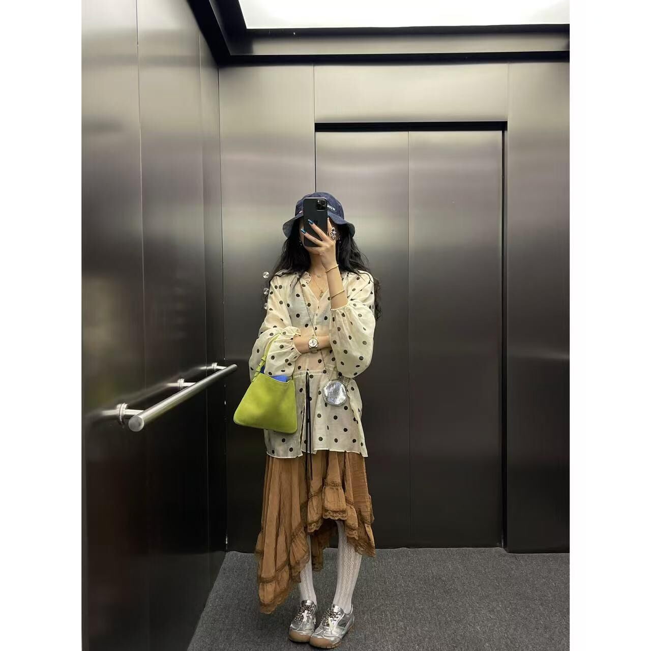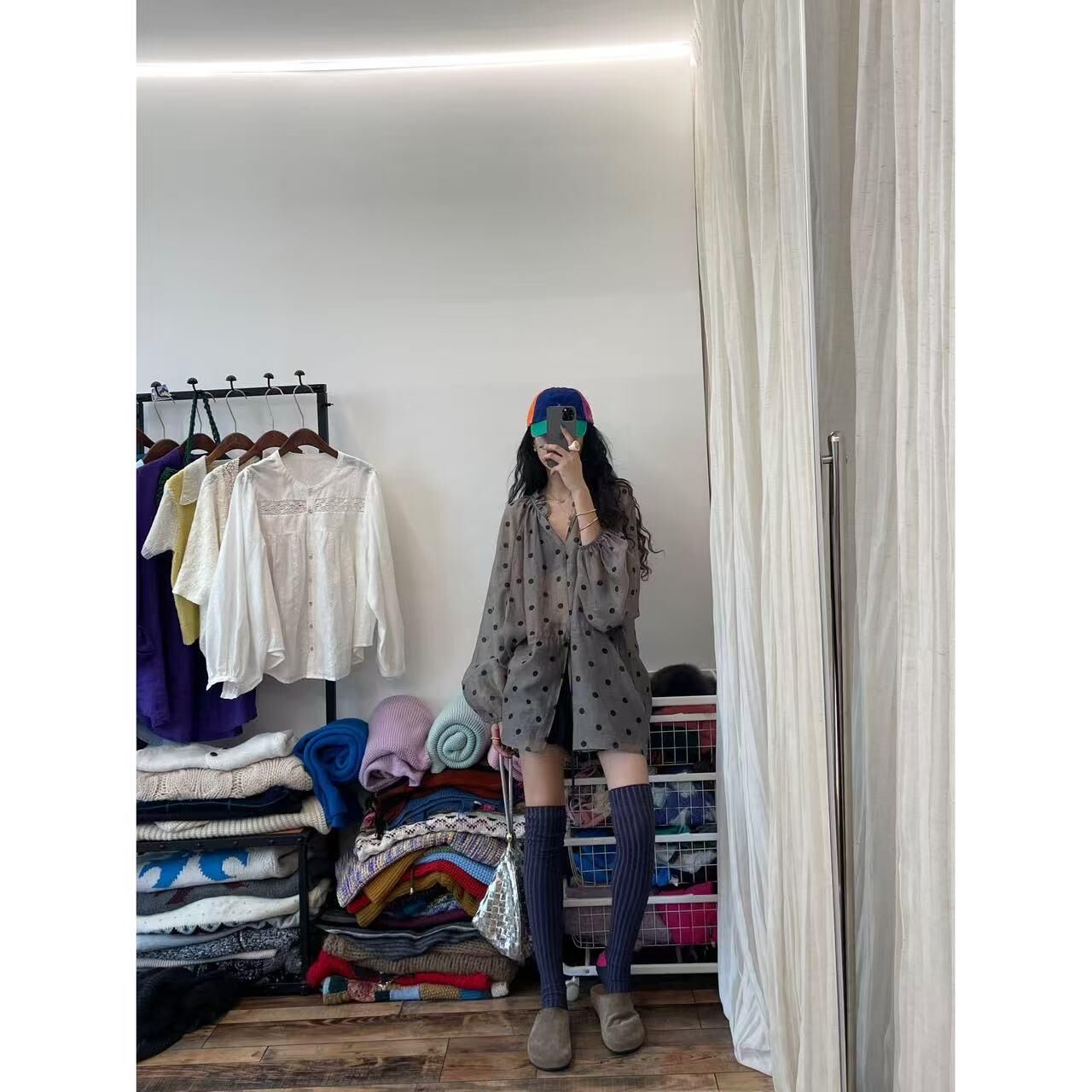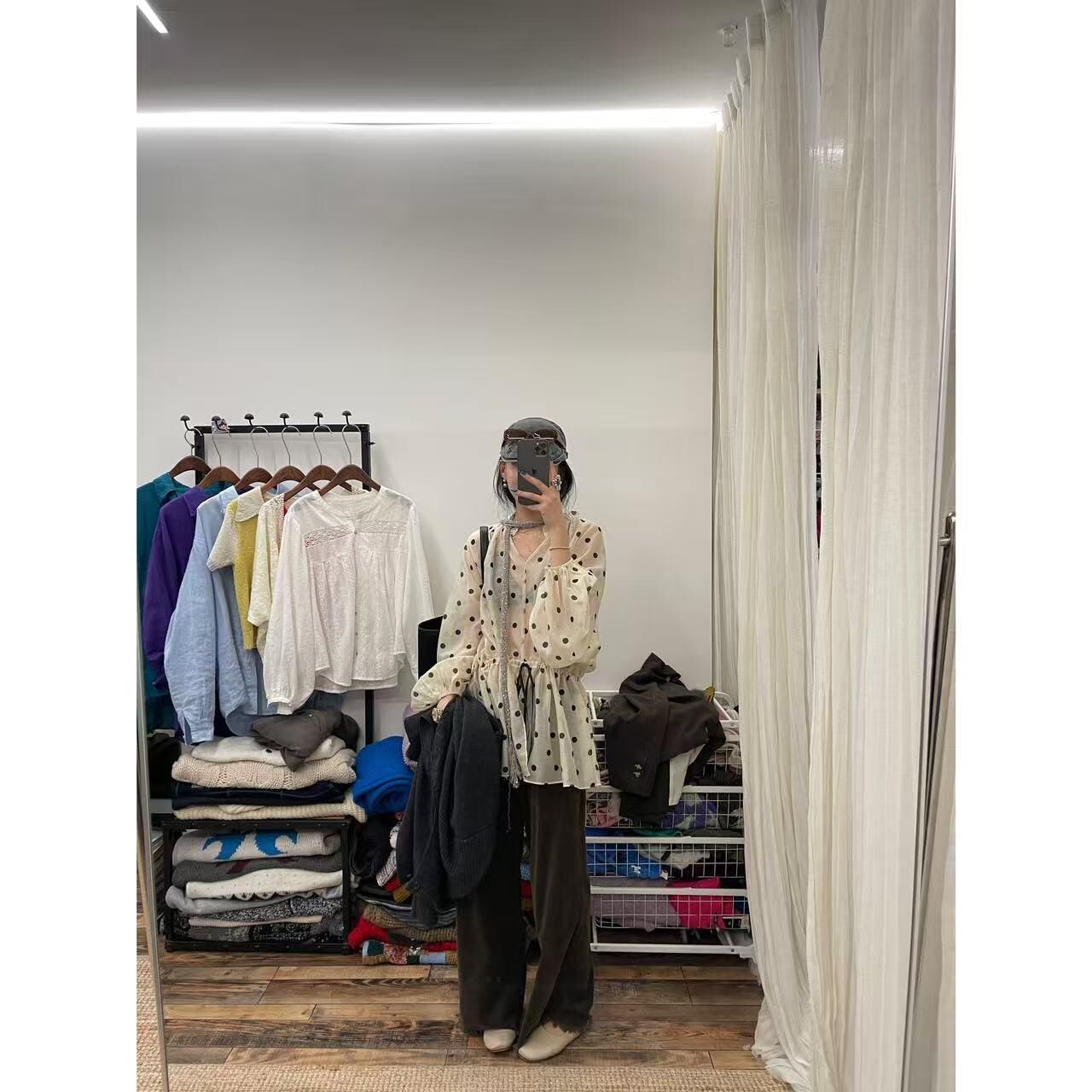 *o-ha-you*【FLCT2799】隱藏限量款~實品真的很美~有點捨不得釋出-時髦er精緻外穿內搭都可的波點衫!寬鬆百搭氣質風雪紡上衣-2色-現貨