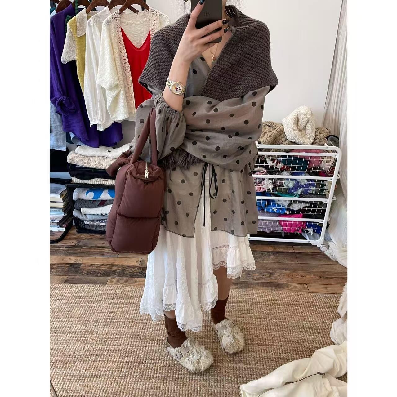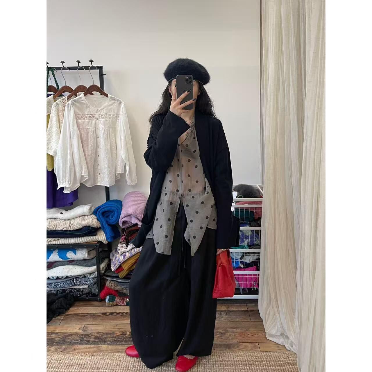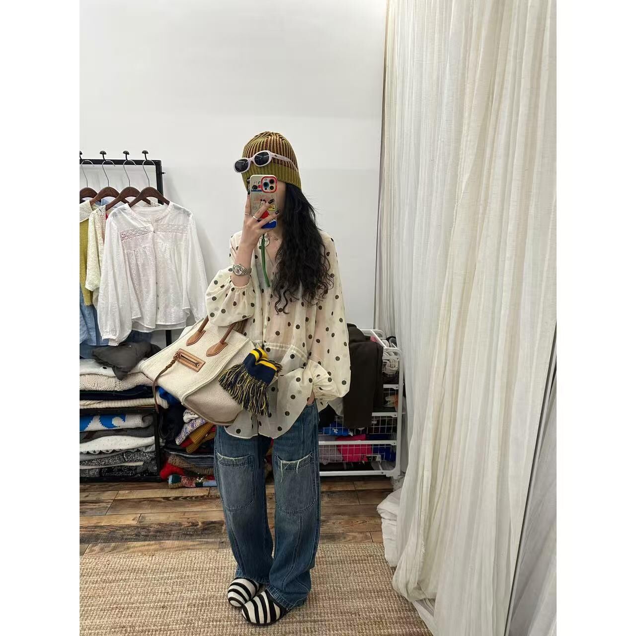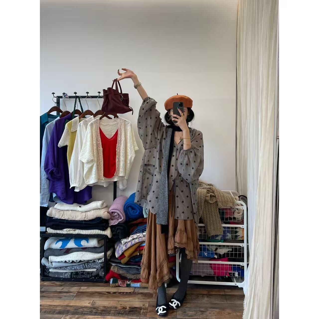*o-ha-you*【FLCT2799】隱藏限量款~實品真的很美~有點捨不得釋出-時髦er精緻外穿內搭都可的波點衫!寬鬆百搭氣質風雪紡上衣-2色-現貨