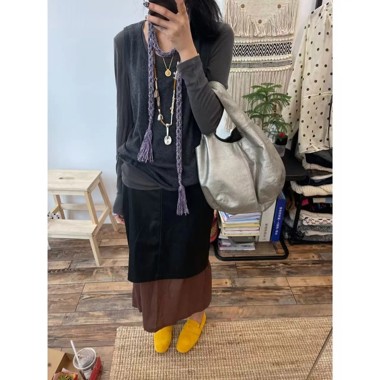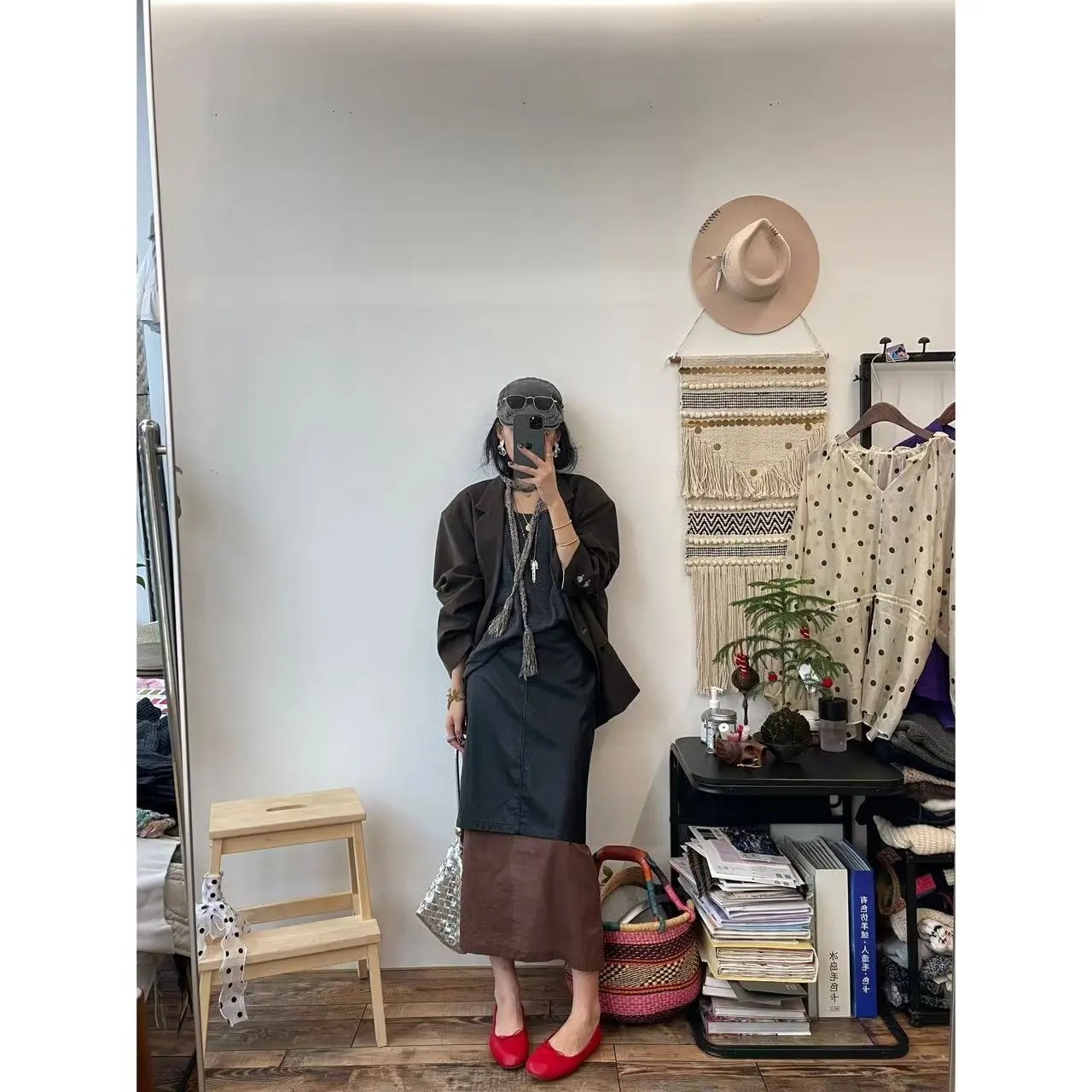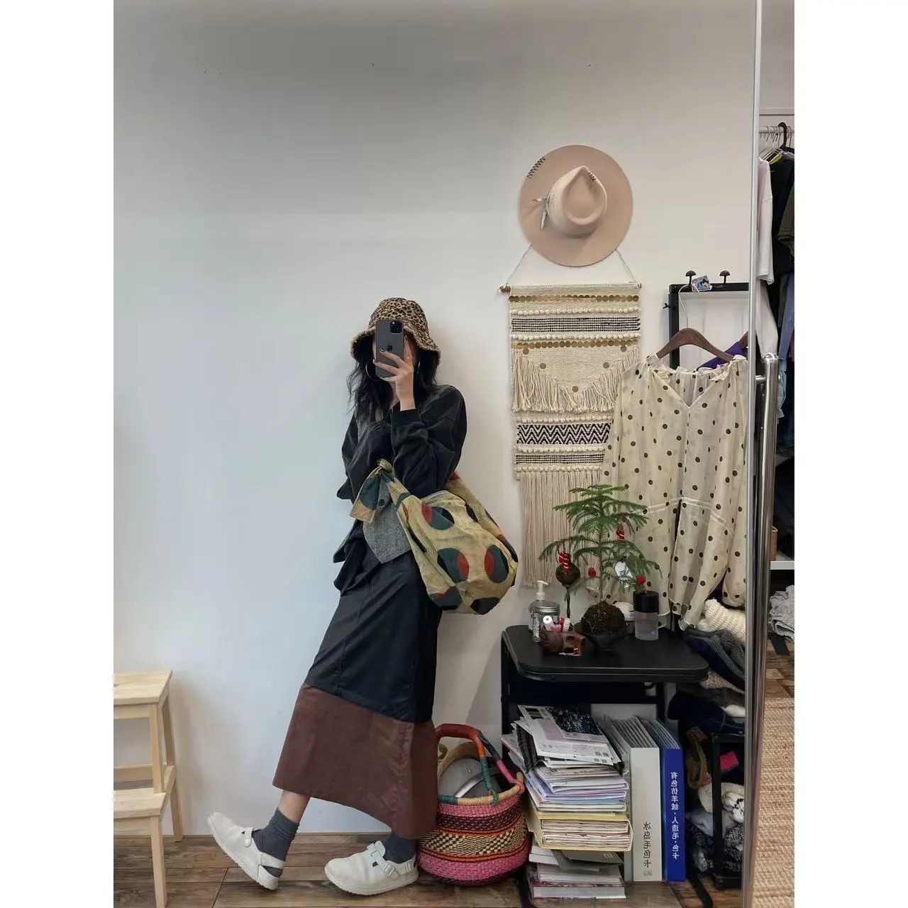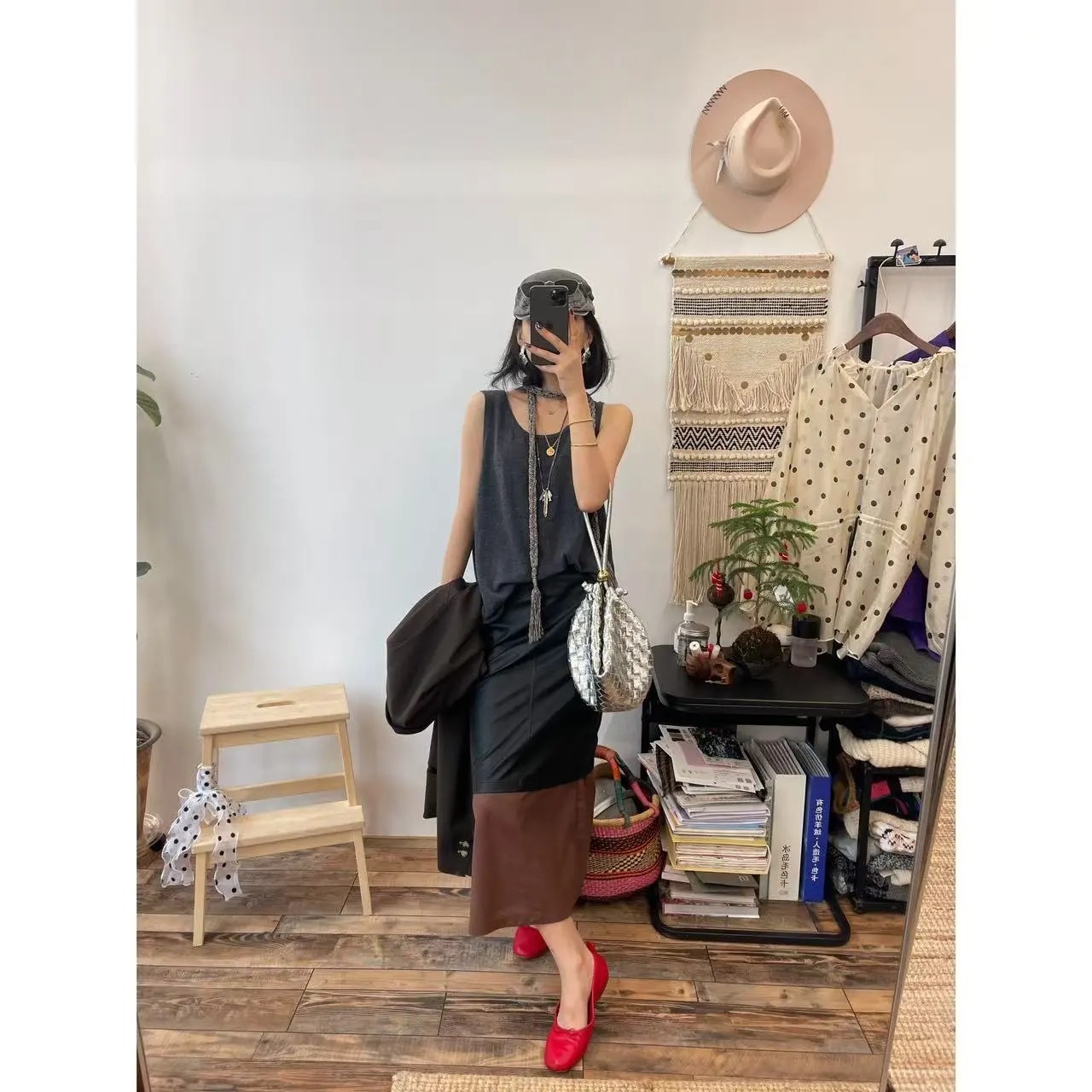 *o-ha-you*【FLCT2805】絕版><隱藏限量款~假兩件拼接皮半裙! pu皮人棉兩件疊穿感個性百搭優雅秋冬半身裙~下單後盡力搶~搶不到別怪我