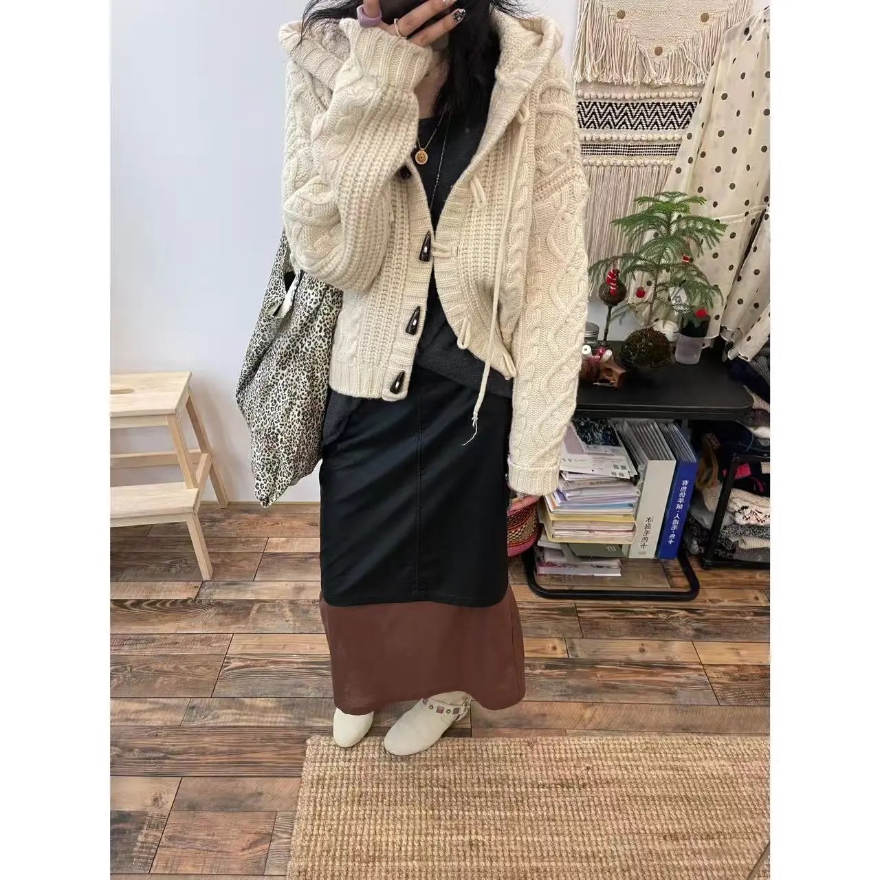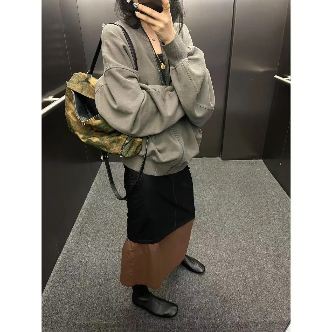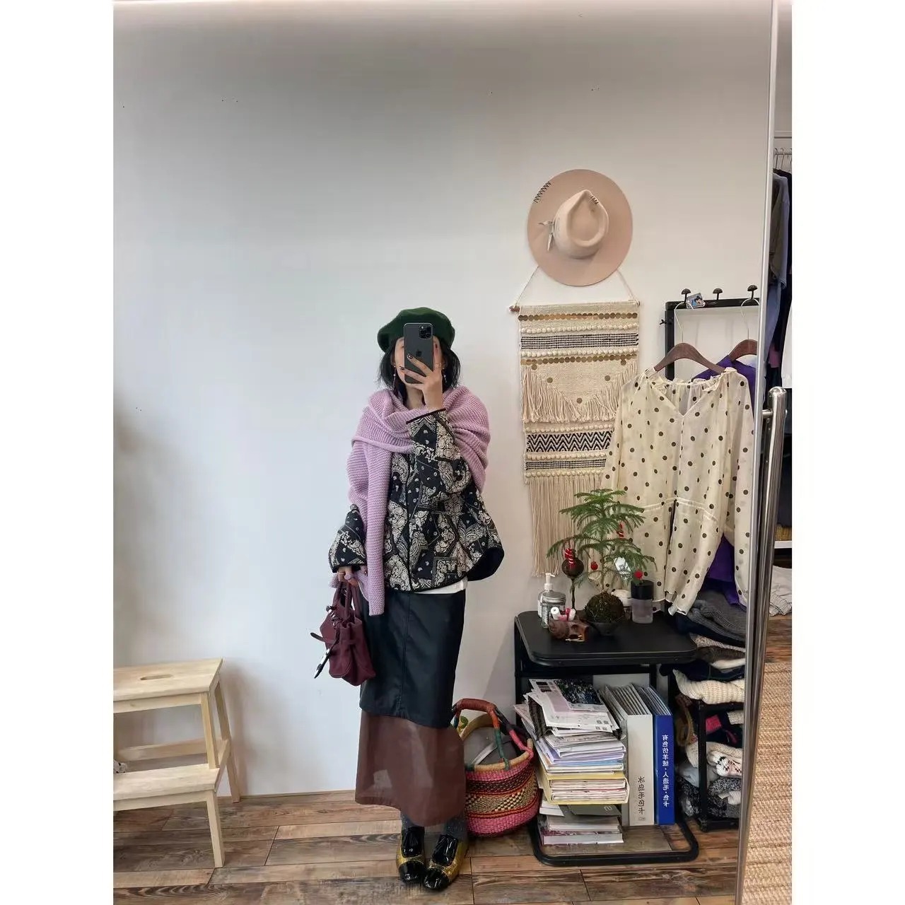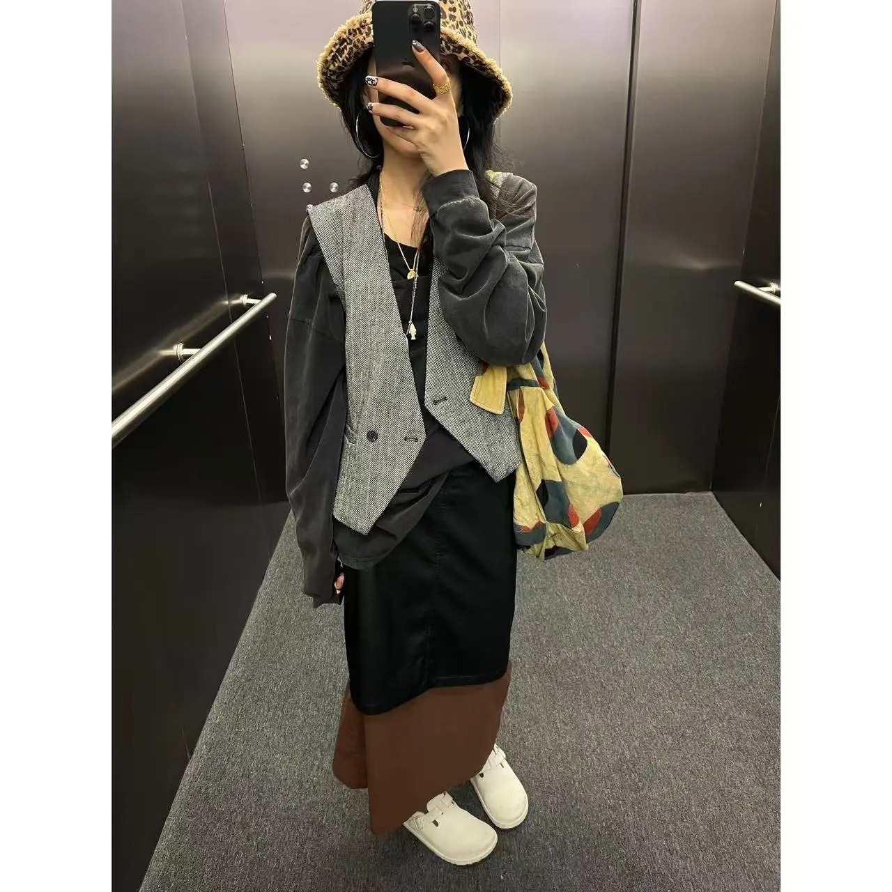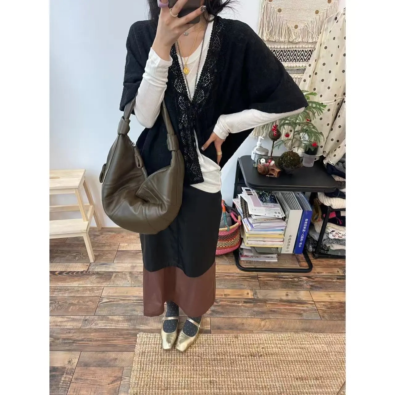 *o-ha-you*【FLCT2805】絕版><隱藏限量款~假兩件拼接皮半裙! pu皮人棉兩件疊穿感個性百搭優雅秋冬半身裙~下單後盡力搶~搶不到別怪我