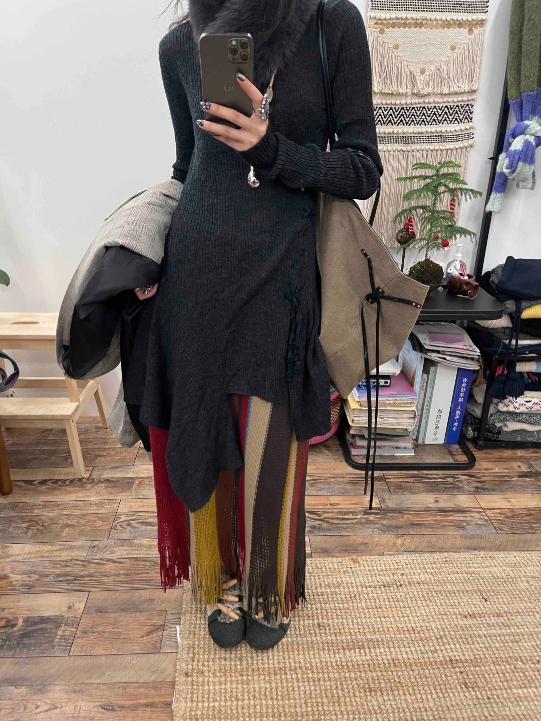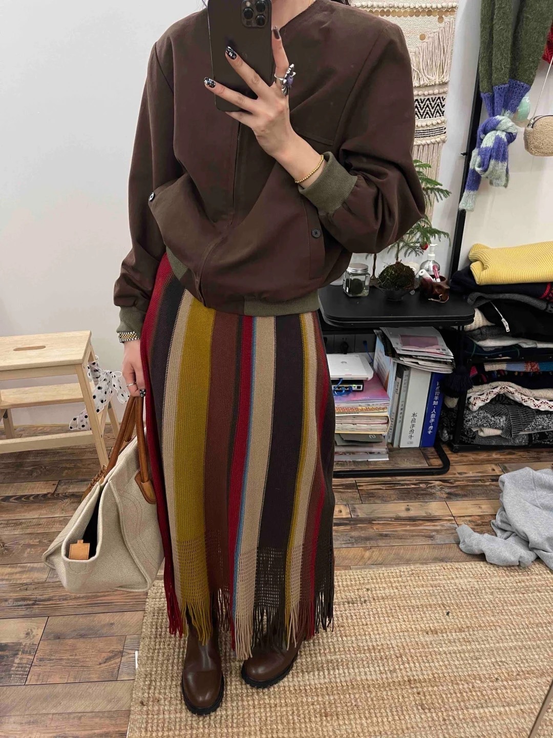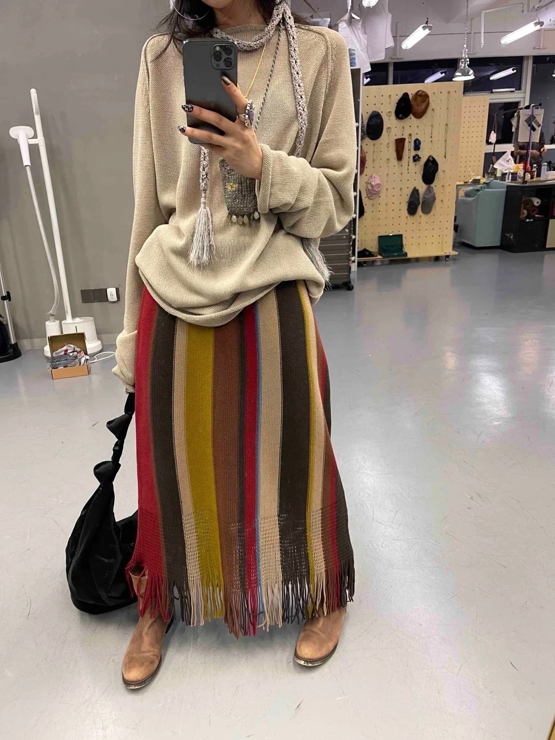 *o-ha-you*【FLCT2808】絕版><重工小眾針織流蘇半裙!特種機多色拼接包臀條紋彈性毛線半身裙隱藏限量款~~下單後盡力搶~搶不到別怪我
