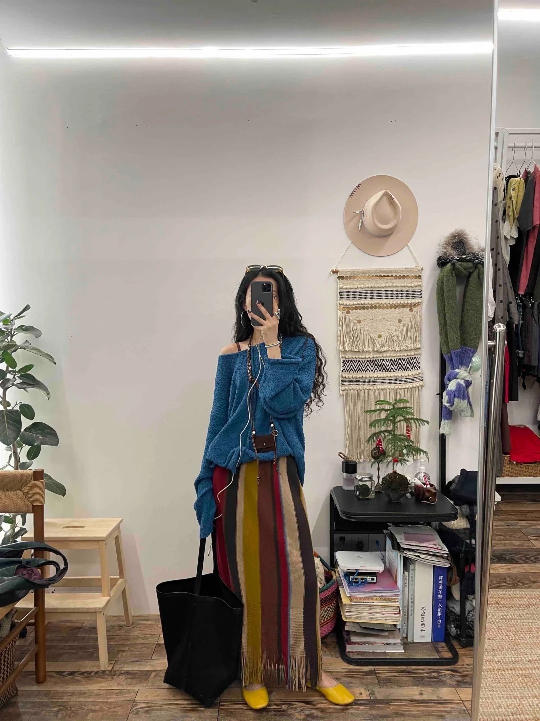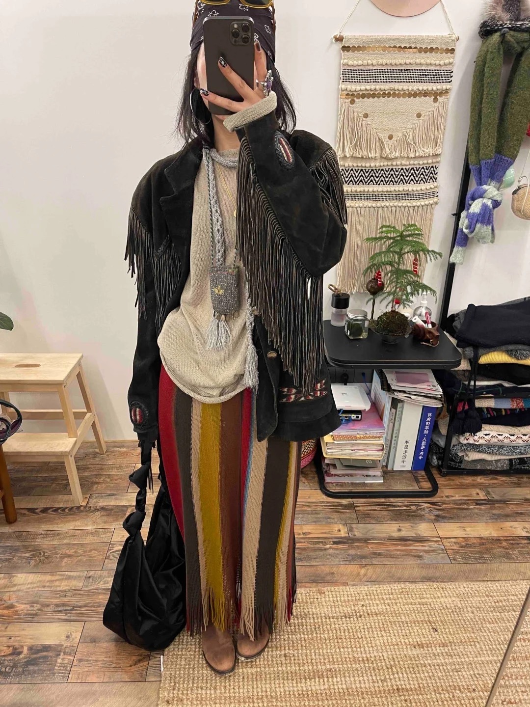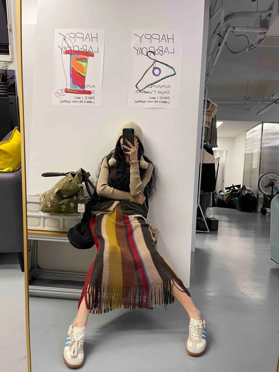 *o-ha-you*【FLCT2808】絕版><重工小眾針織流蘇半裙!特種機多色拼接包臀條紋彈性毛線半身裙隱藏限量款~~下單後盡力搶~搶不到別怪我