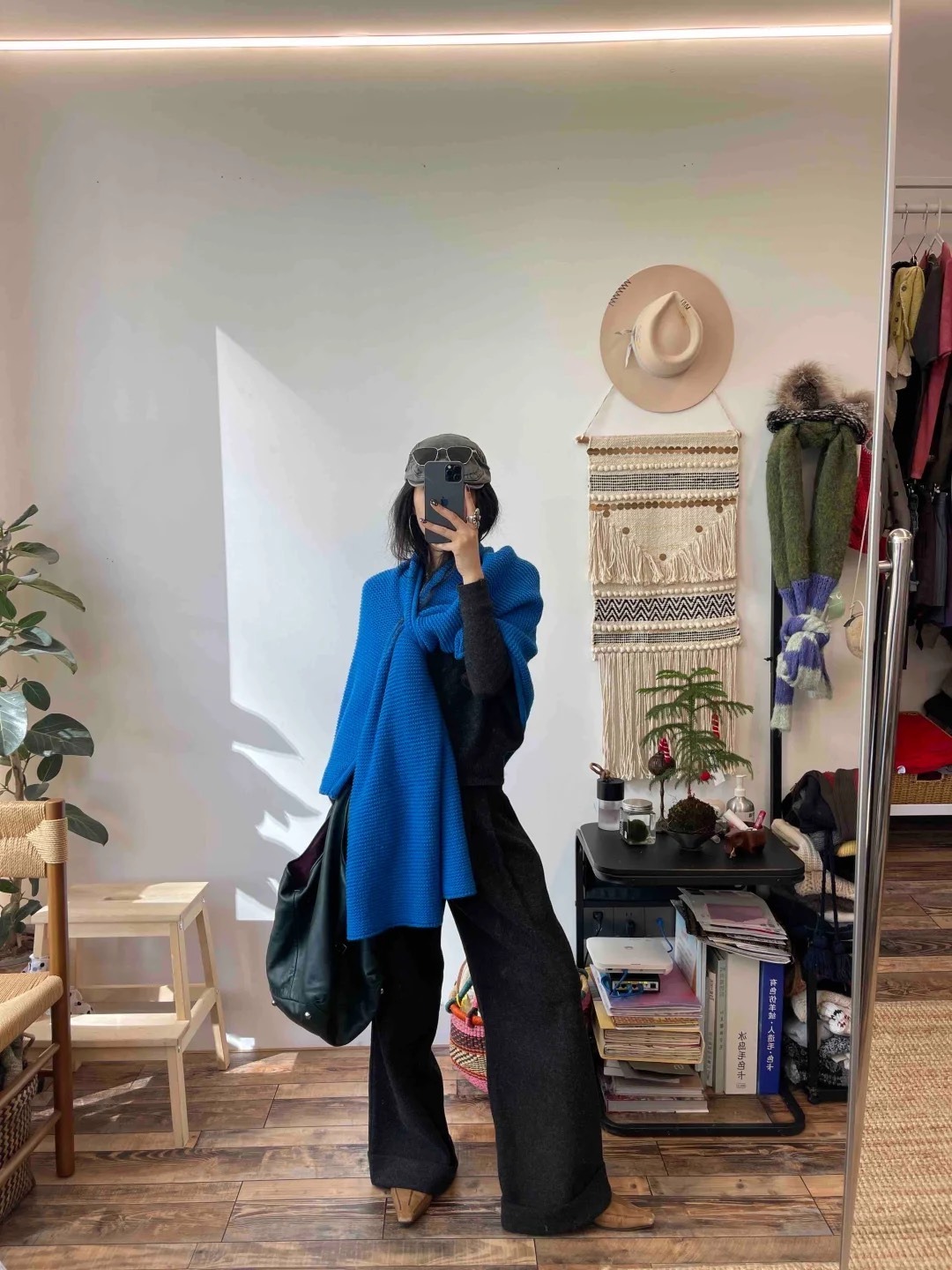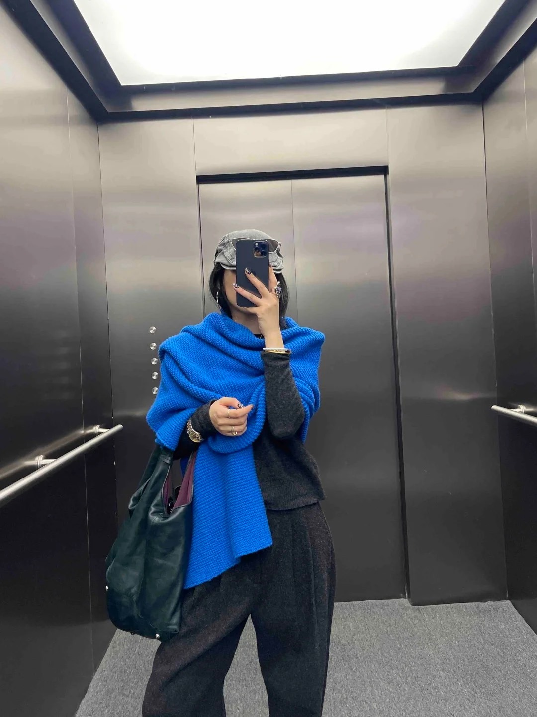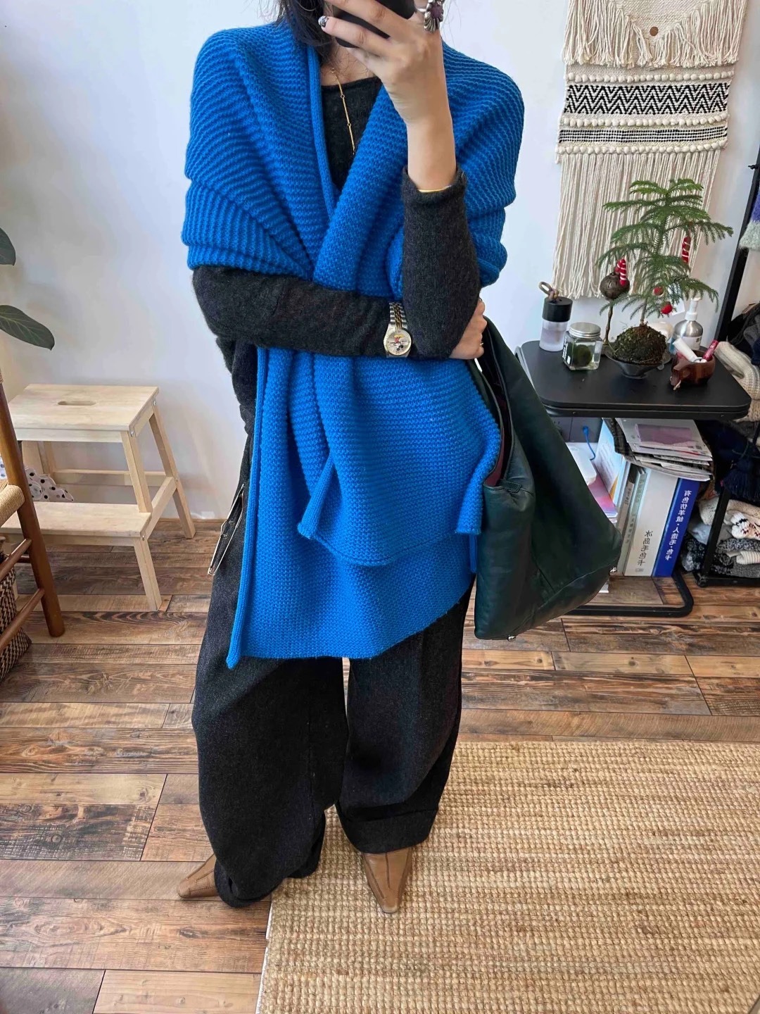*o-ha-you*【FLCT2809-1】 藍色/灰色-有現貨-隱藏限量款~隨身帶無處不在大羊毛混紡披肩圍巾!秋冬必備百搭保暖又時尚er-3色~下單後盡力搶~搶不到別怪我