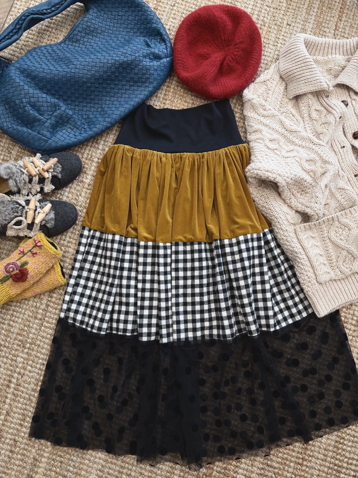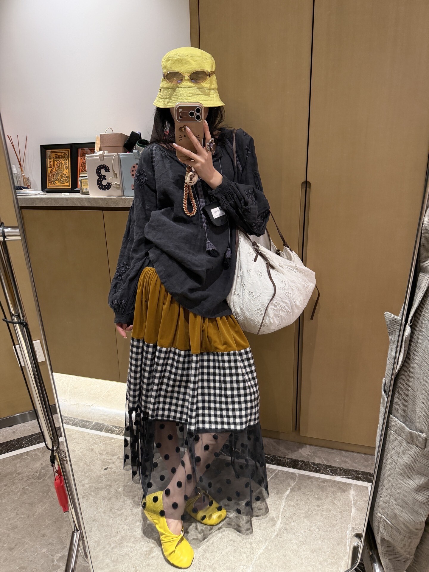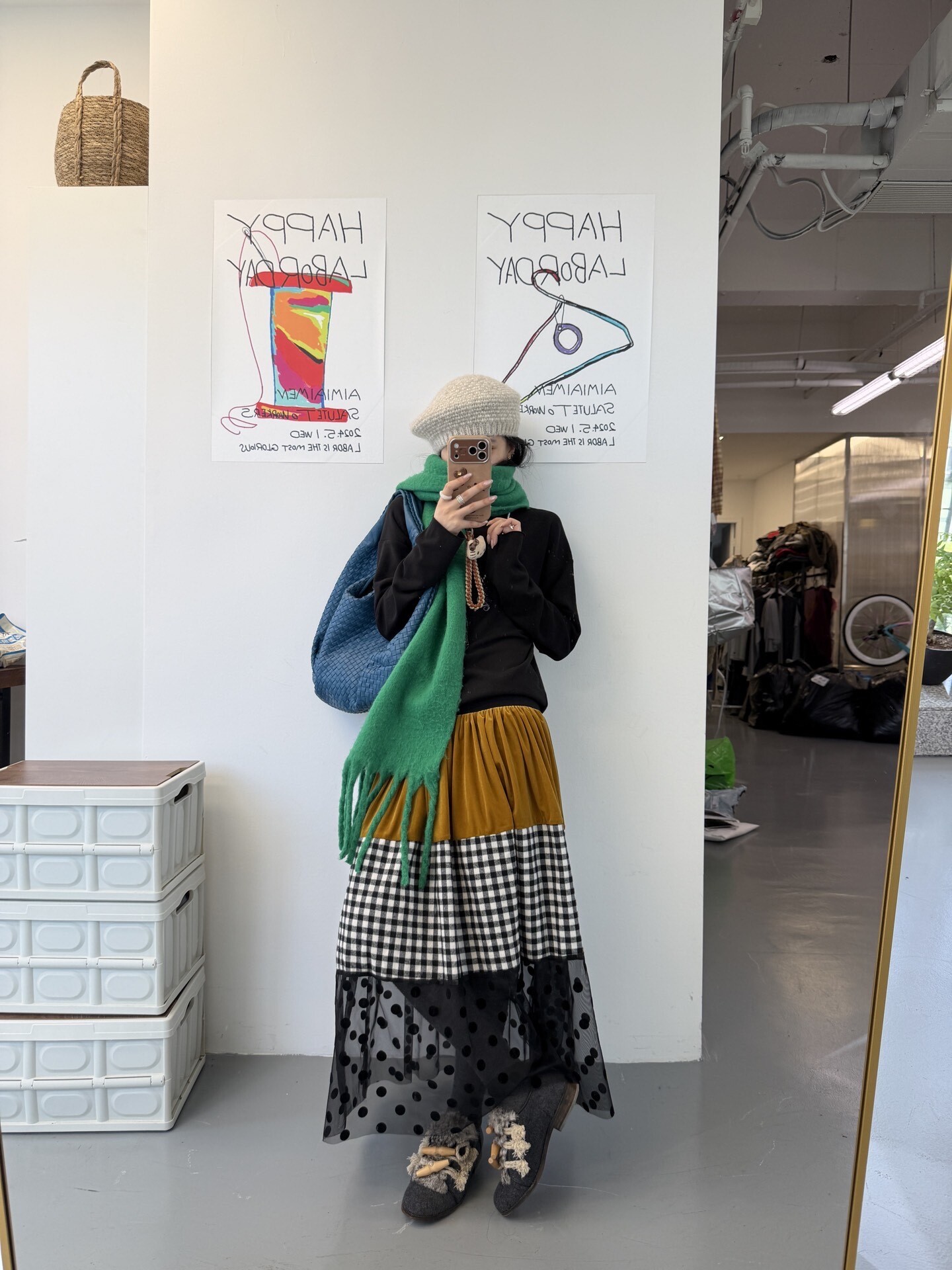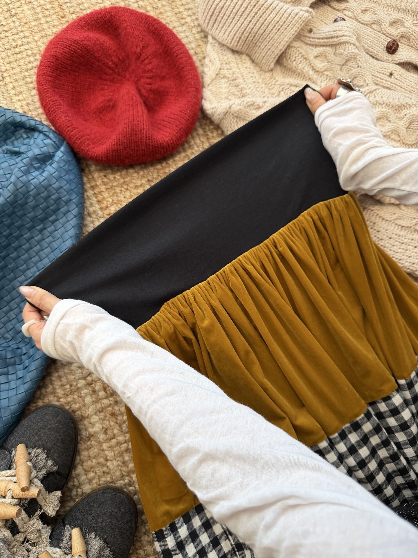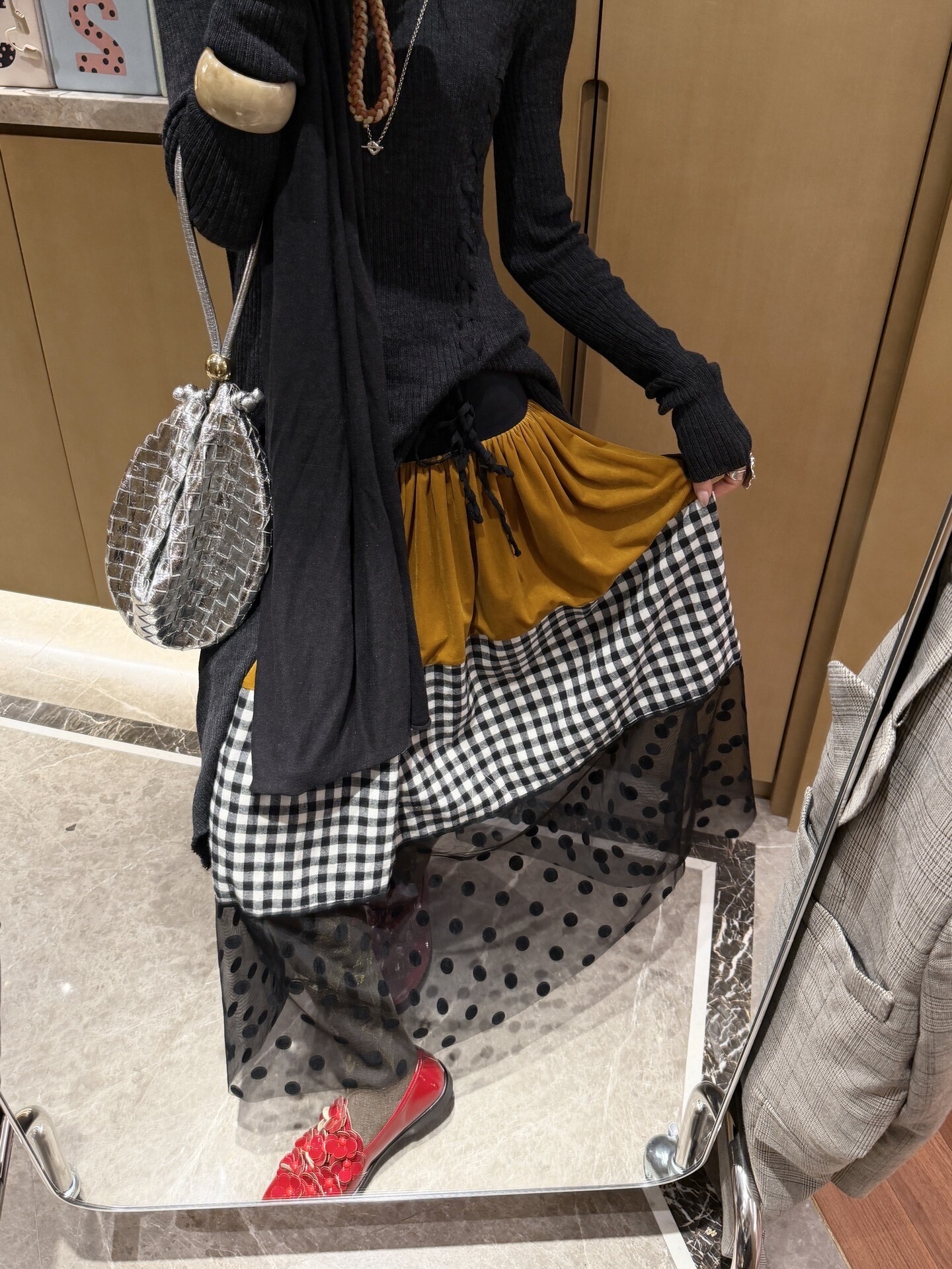 *o-ha-you*【FLCT2831】隱藏限量款~4季小眾拼接半裙! 5種布料拼接重工百搭時髦絲絨波點彈性腰圍半裙~下單後盡力搶~搶不到別怪我