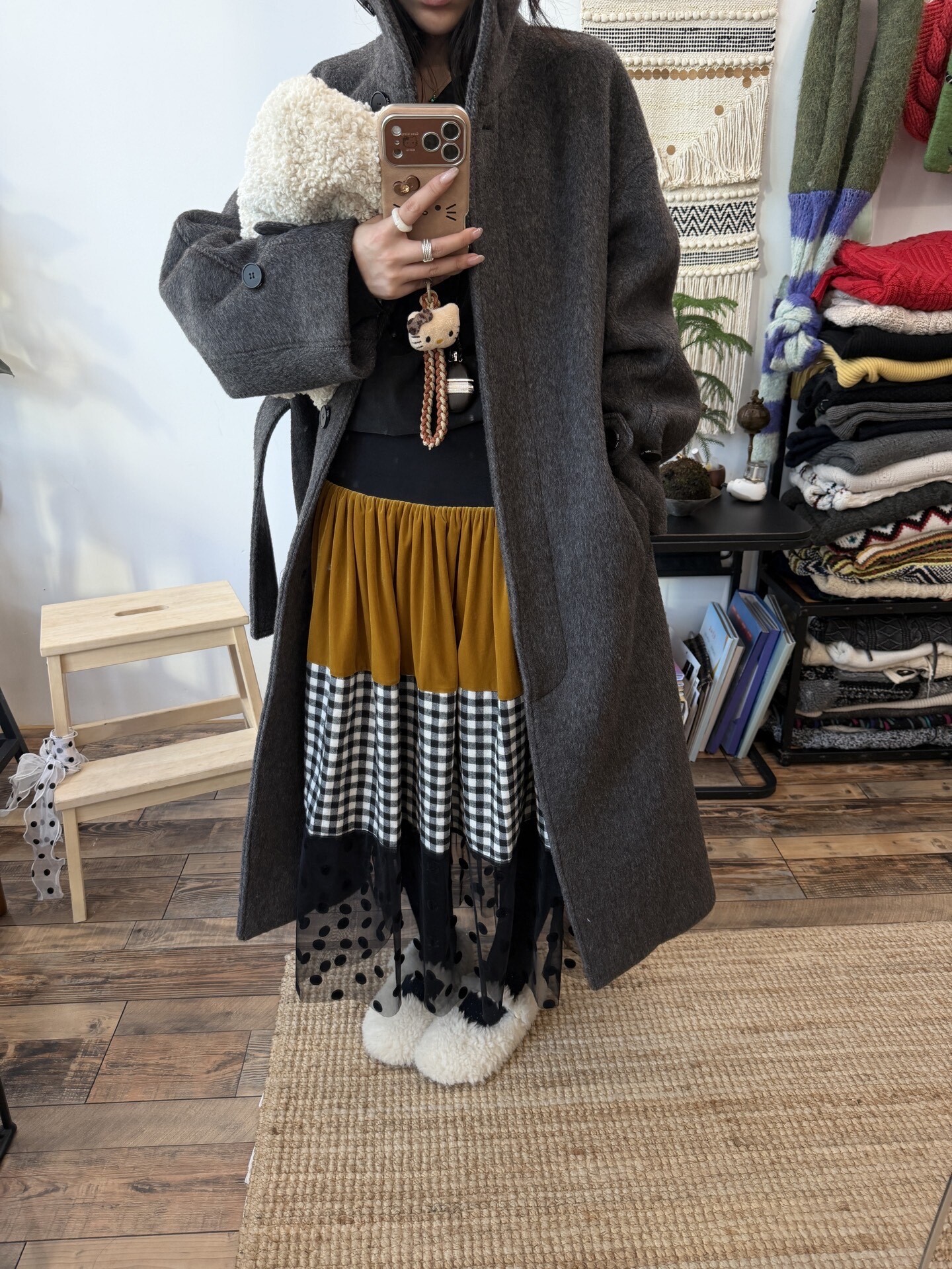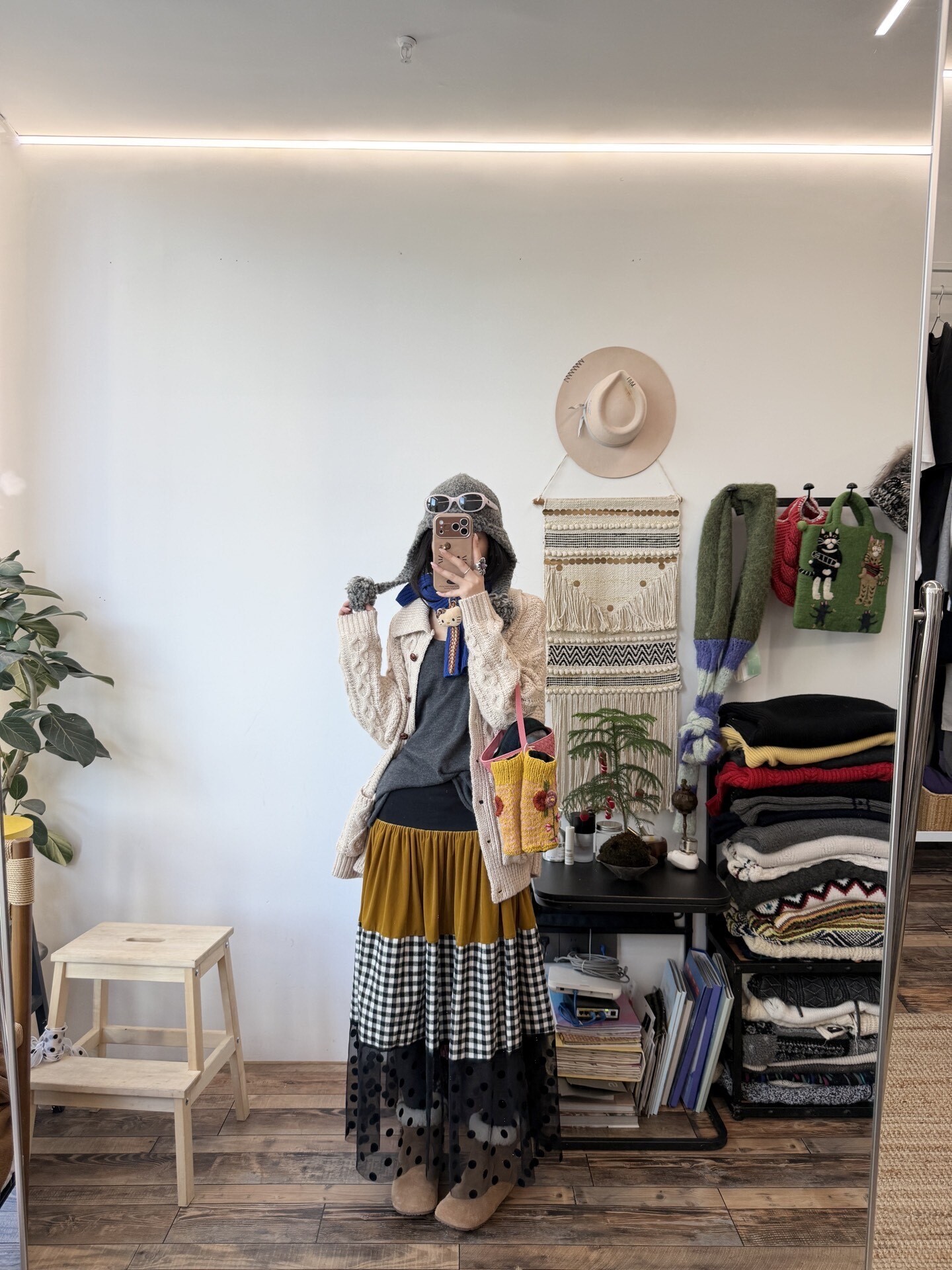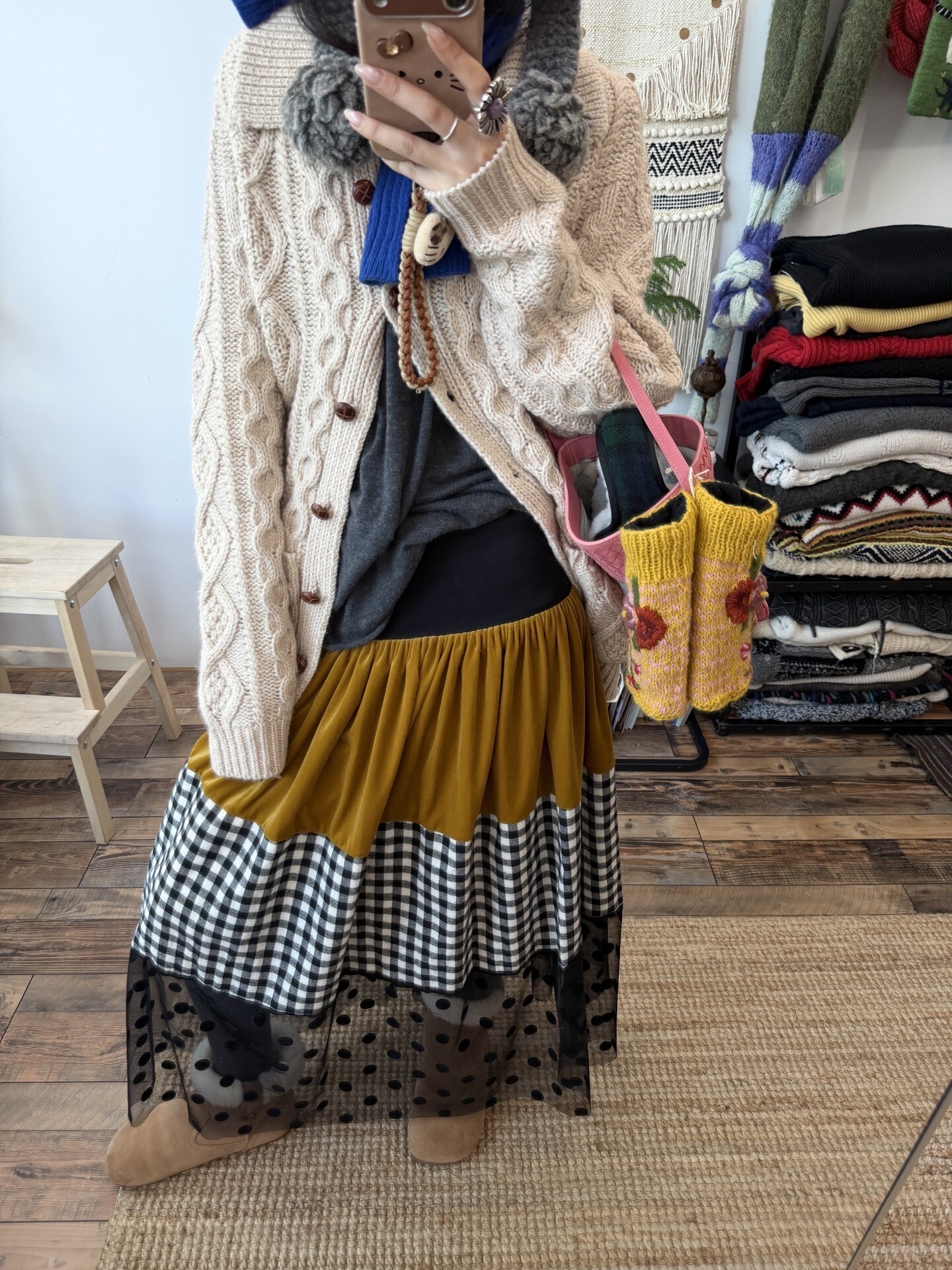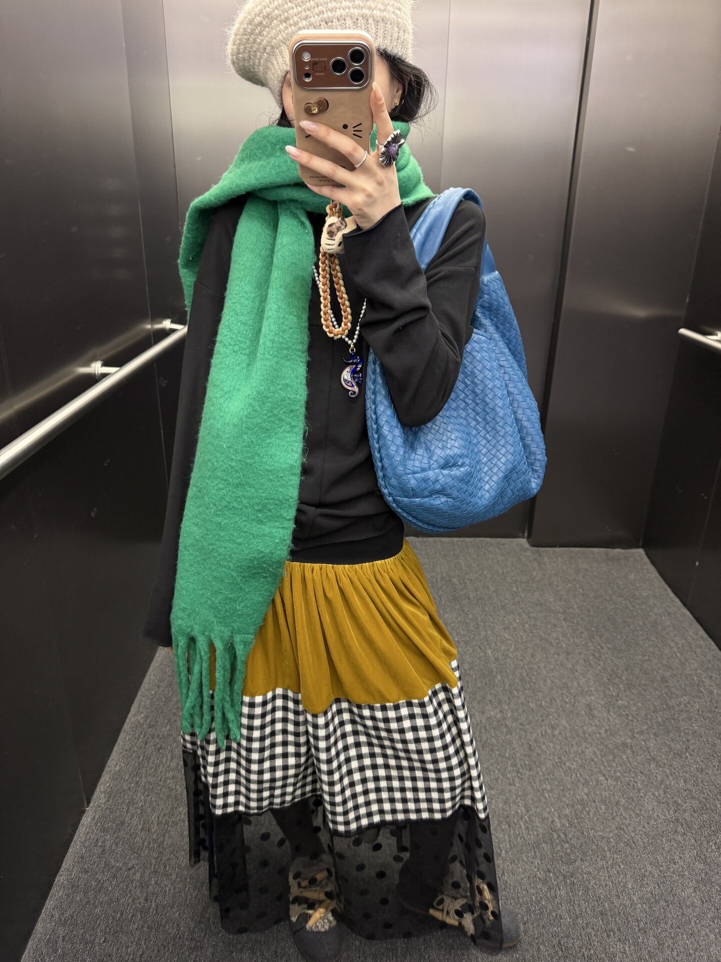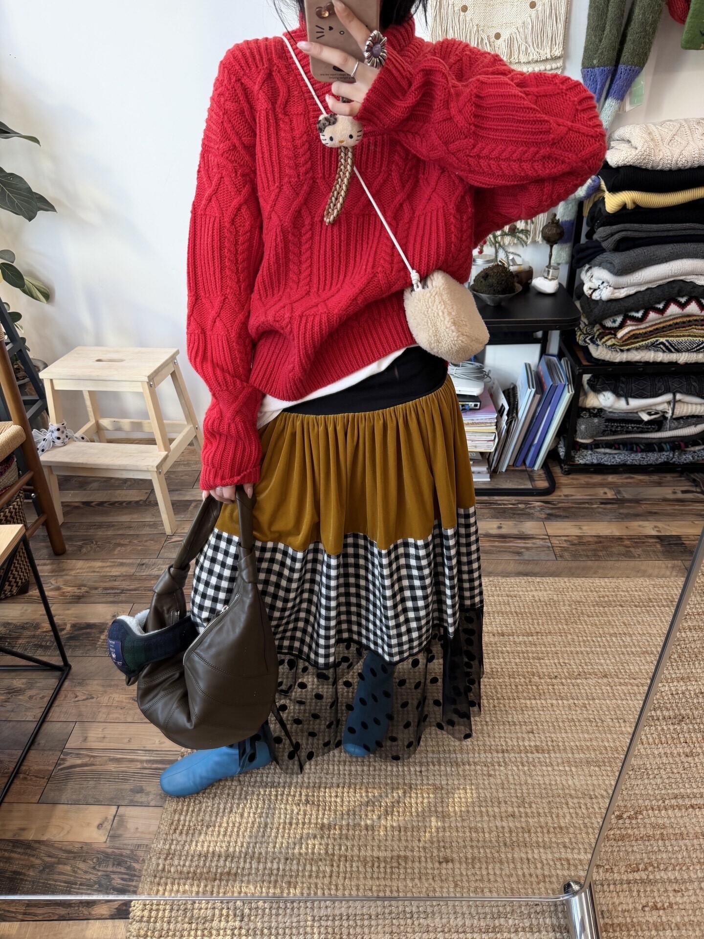 *o-ha-you*【FLCT2831】隱藏限量款~4季小眾拼接半裙! 5種布料拼接重工百搭時髦絲絨波點彈性腰圍半裙~下單後盡力搶~搶不到別怪我