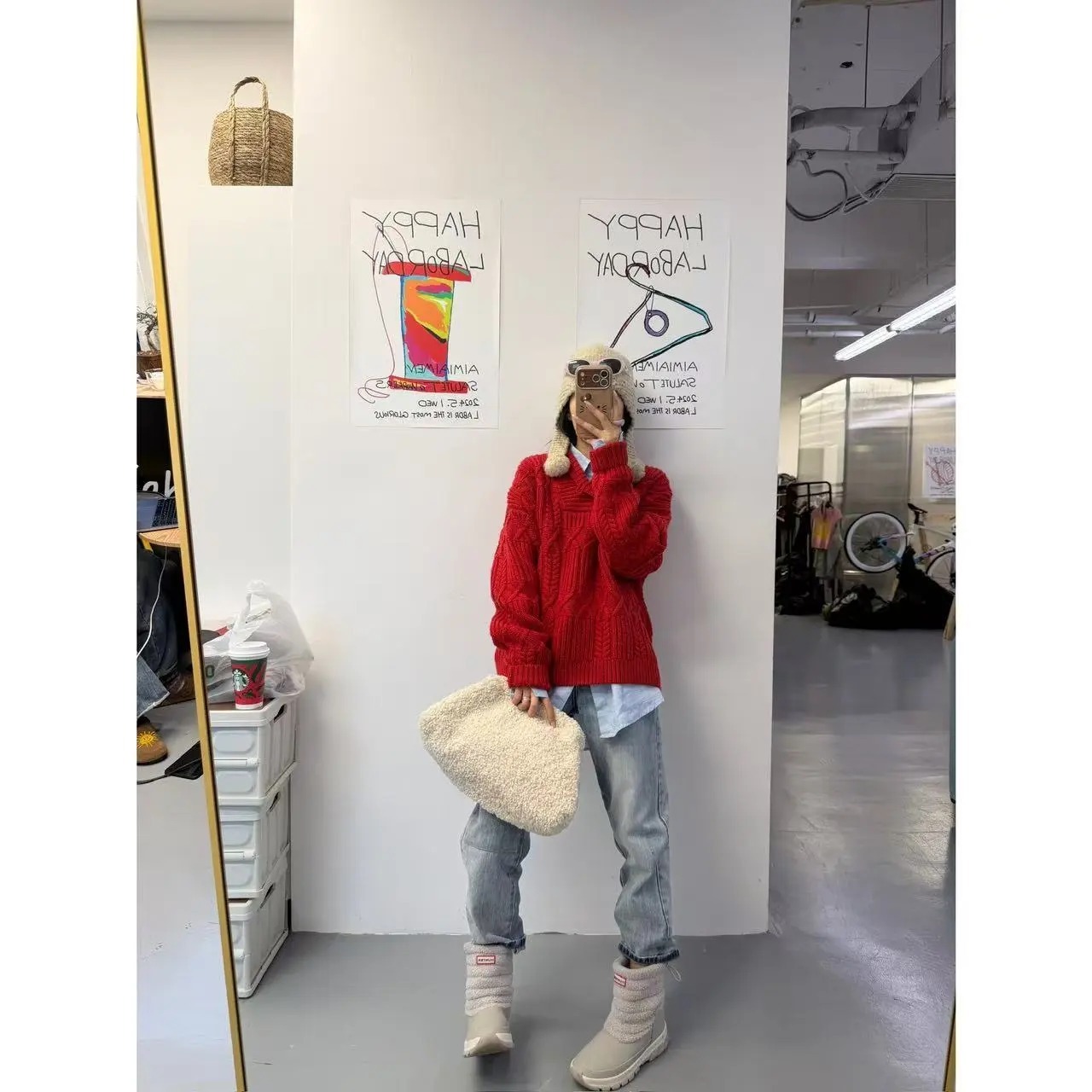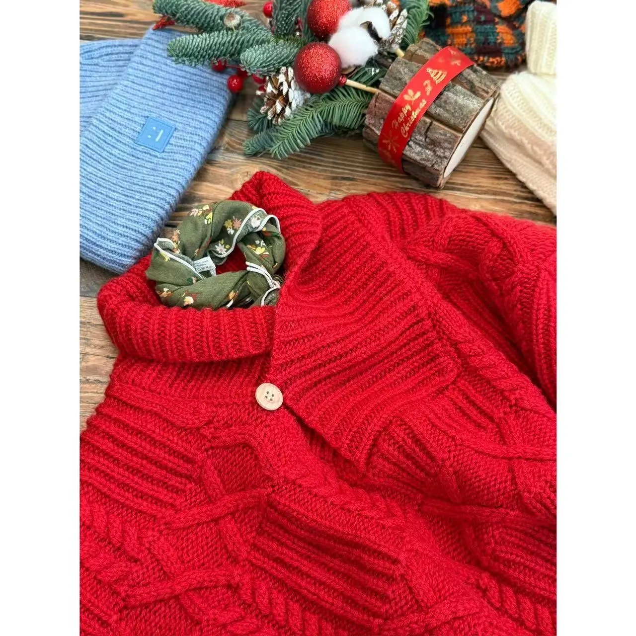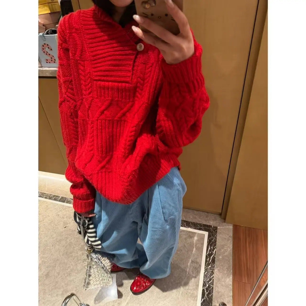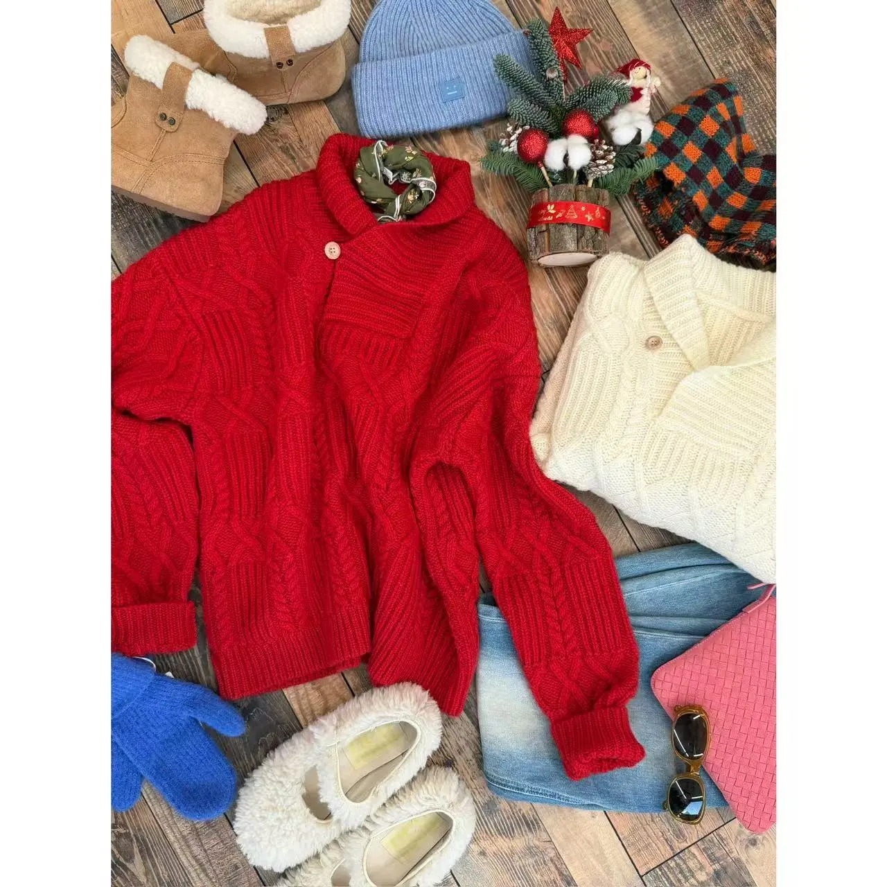 *o-ha-you*【FLCT2838】隱藏限量款~100羊毛絞花青果領毛衣!定染紅色保暖百搭冬氛圍穿搭寬鬆毛衣-2色~下單後盡力搶~搶不到別怪我
