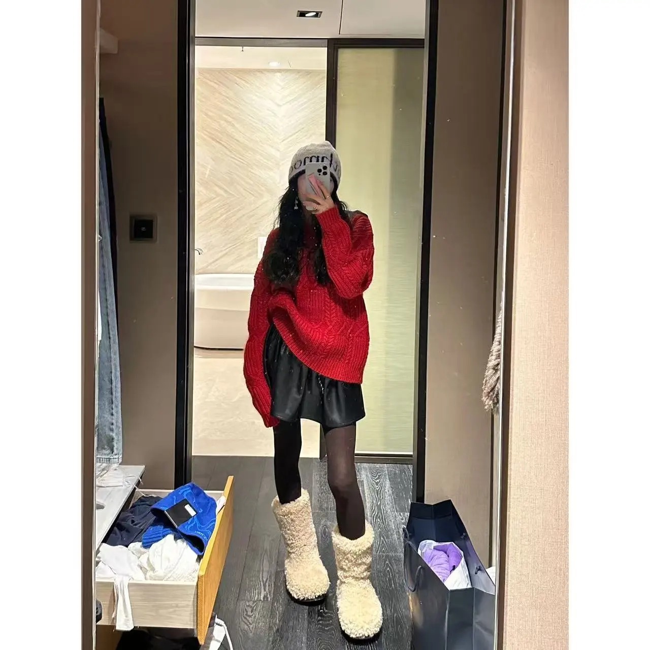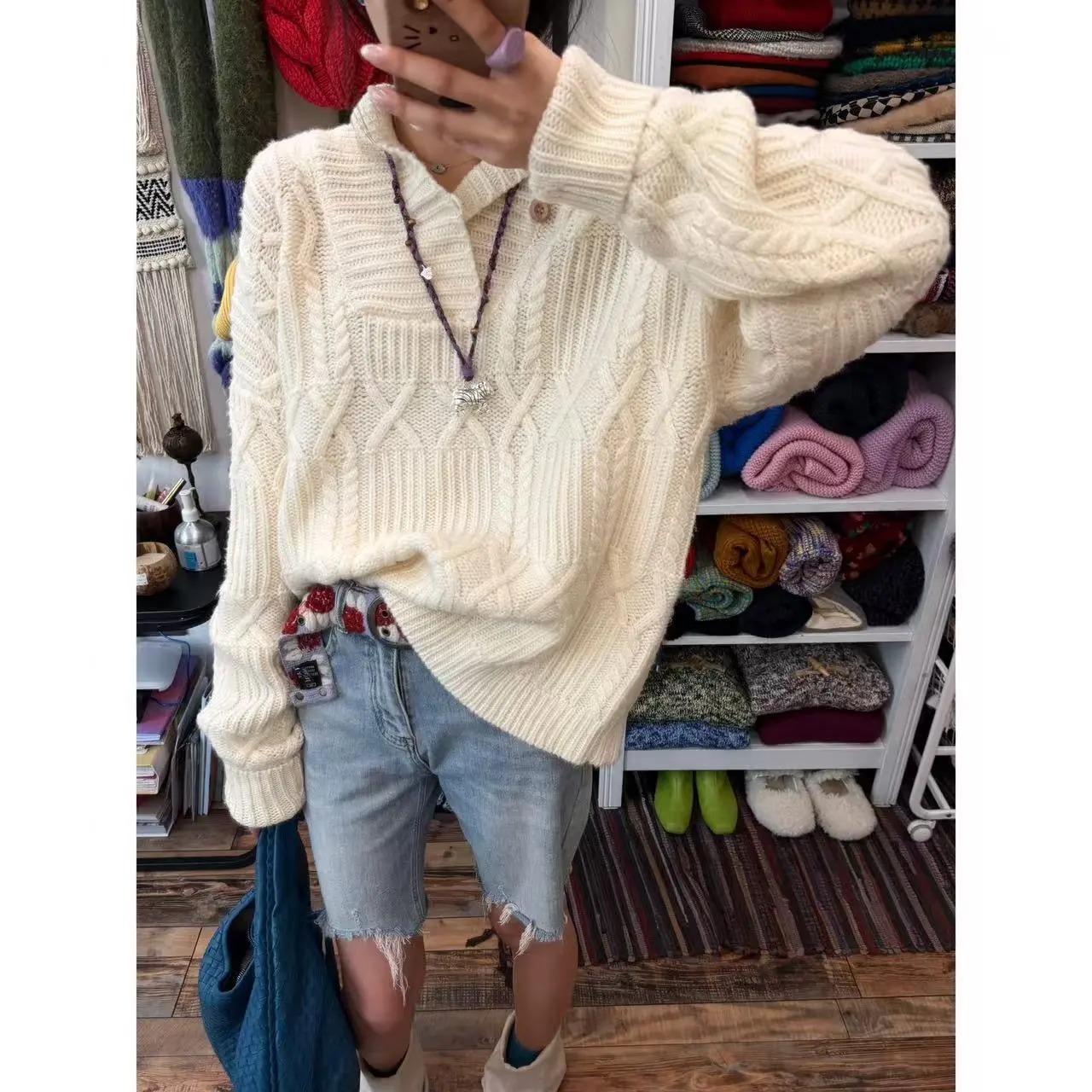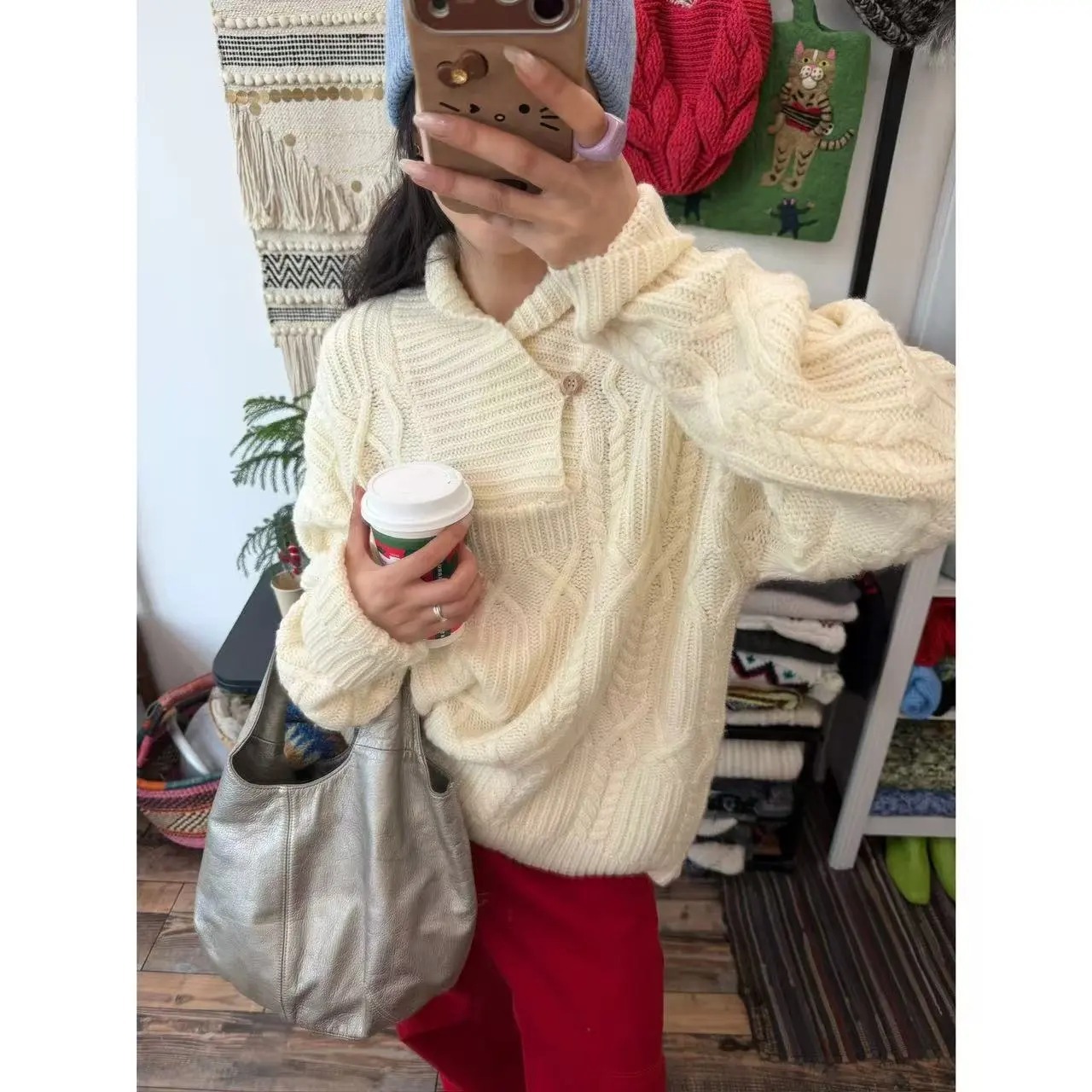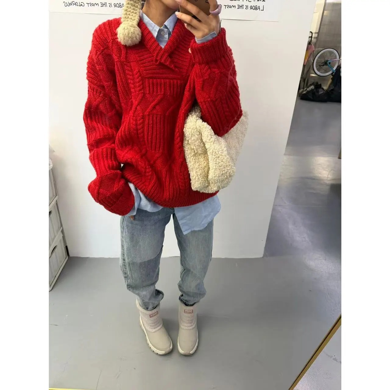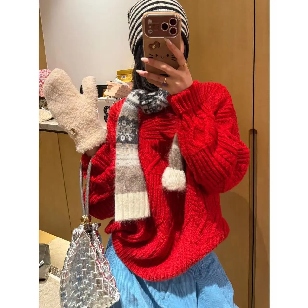 *o-ha-you*【FLCT2838】隱藏限量款~100羊毛絞花青果領毛衣!定染紅色保暖百搭冬氛圍穿搭寬鬆毛衣-2色~下單後盡力搶~搶不到別怪我