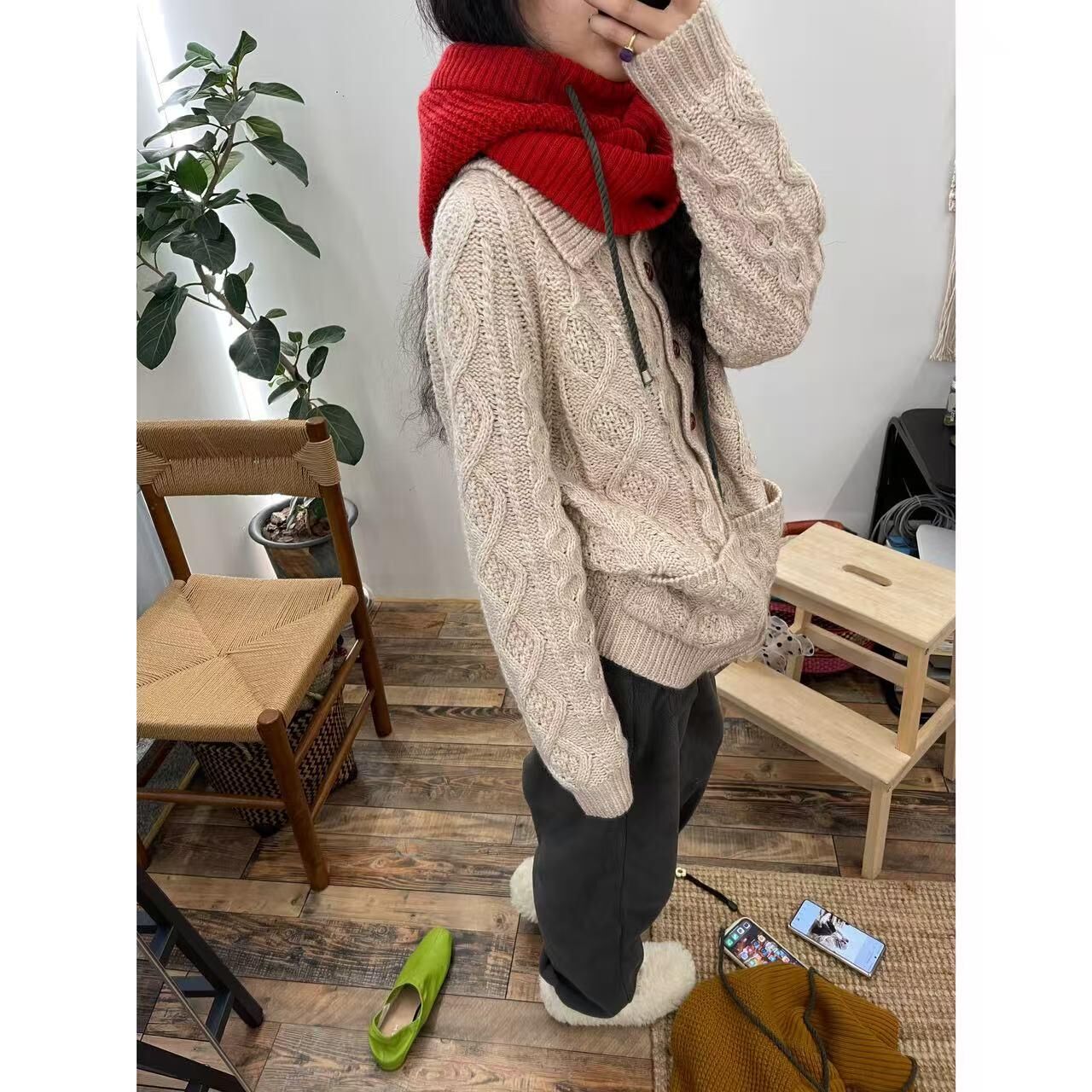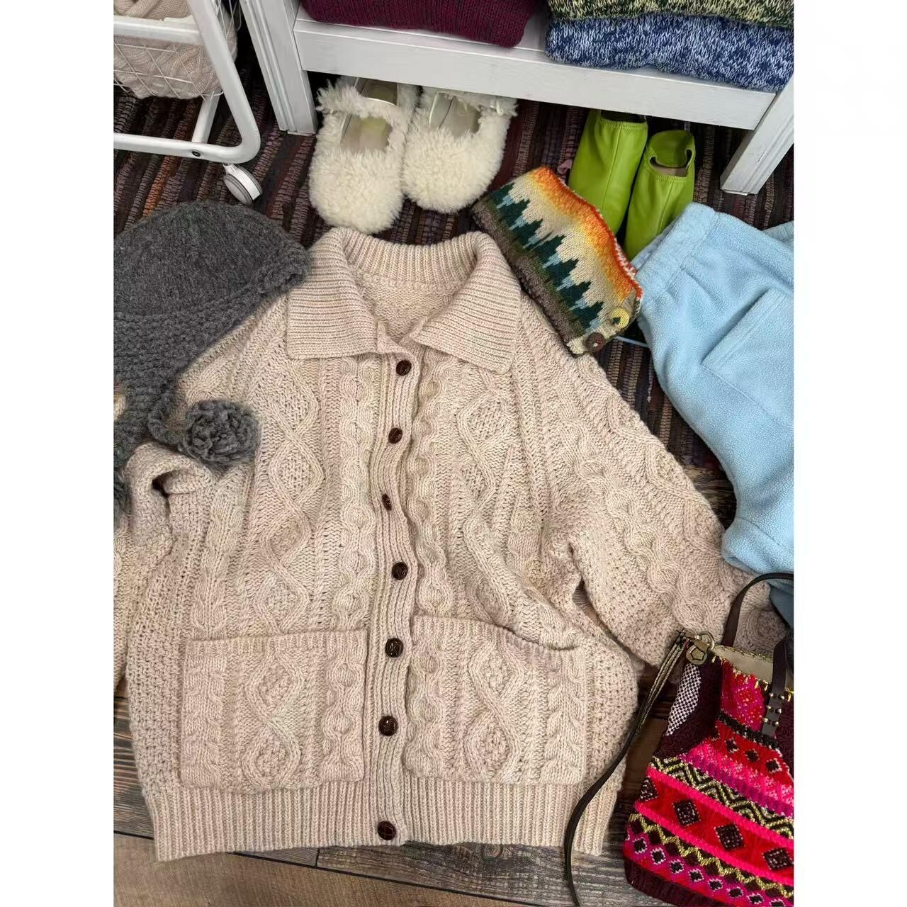 *o-ha-you*【FLCT2840】隱藏限量款~粗針立體麻花翻領口袋毛衣外套!秋冬保暖顯瘦仿手打氛圍毛衣~下單後盡力搶~搶不到別怪我