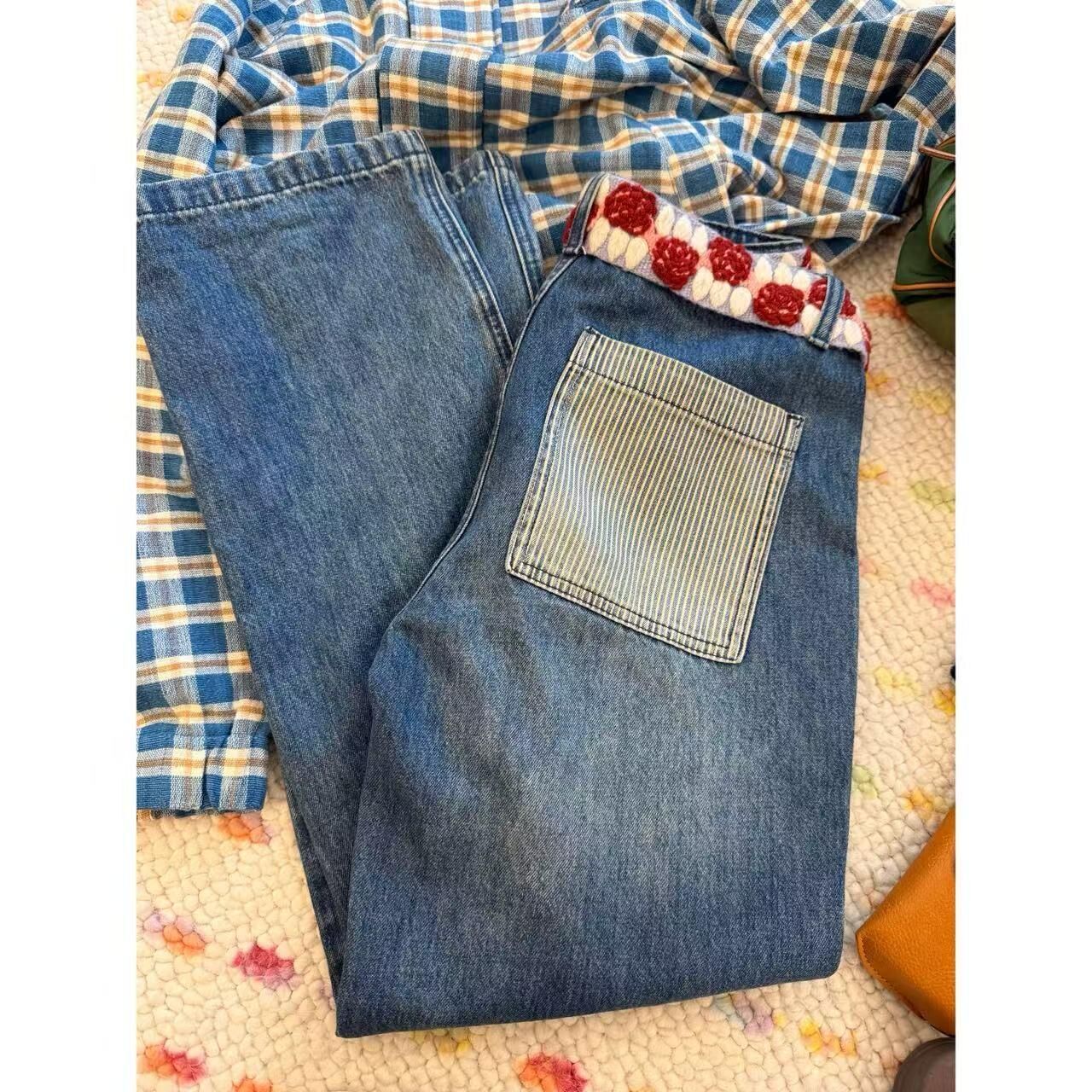 *o-ha-you*【FLCT2841】隱藏限量款~後口袋條紋拼接口袋設計牛仔直筒褲~下單後盡力搶~搶不到別怪我